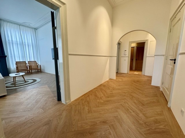 Het appartement bevindt zich op de tweede verdieping en verwelkomt je met een ruime hal met elegante details.