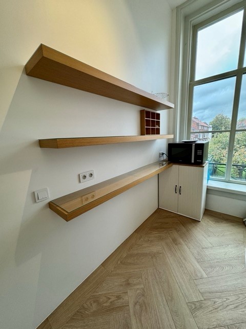• Open keuken volledig uitgerust met o.a. koelkast/vriezer, vaatwasser, oven/magnetron, Quooker-kraan en inductiekookplaat met geïntegreerde afzuiging
