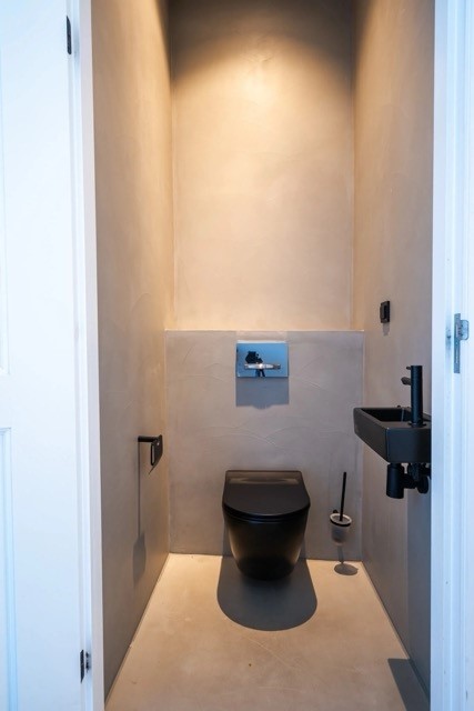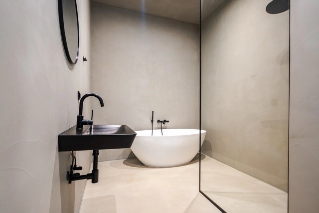 De badkamer is volledig uitgerust met een ligbad, aparte douche en wastafel. Een separaat toilet biedt extra gemak.