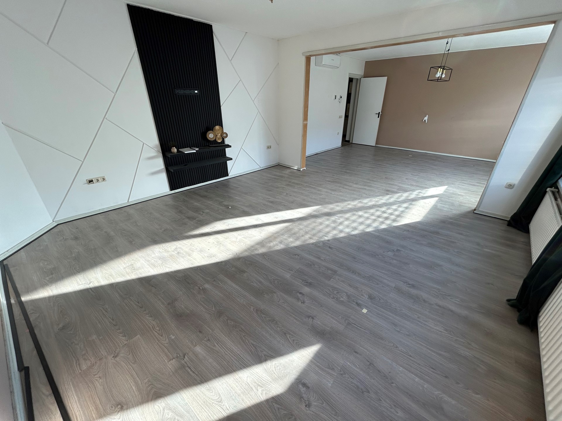Woonkamer 8,90 x 4,70 met laminaatvloer en airco.