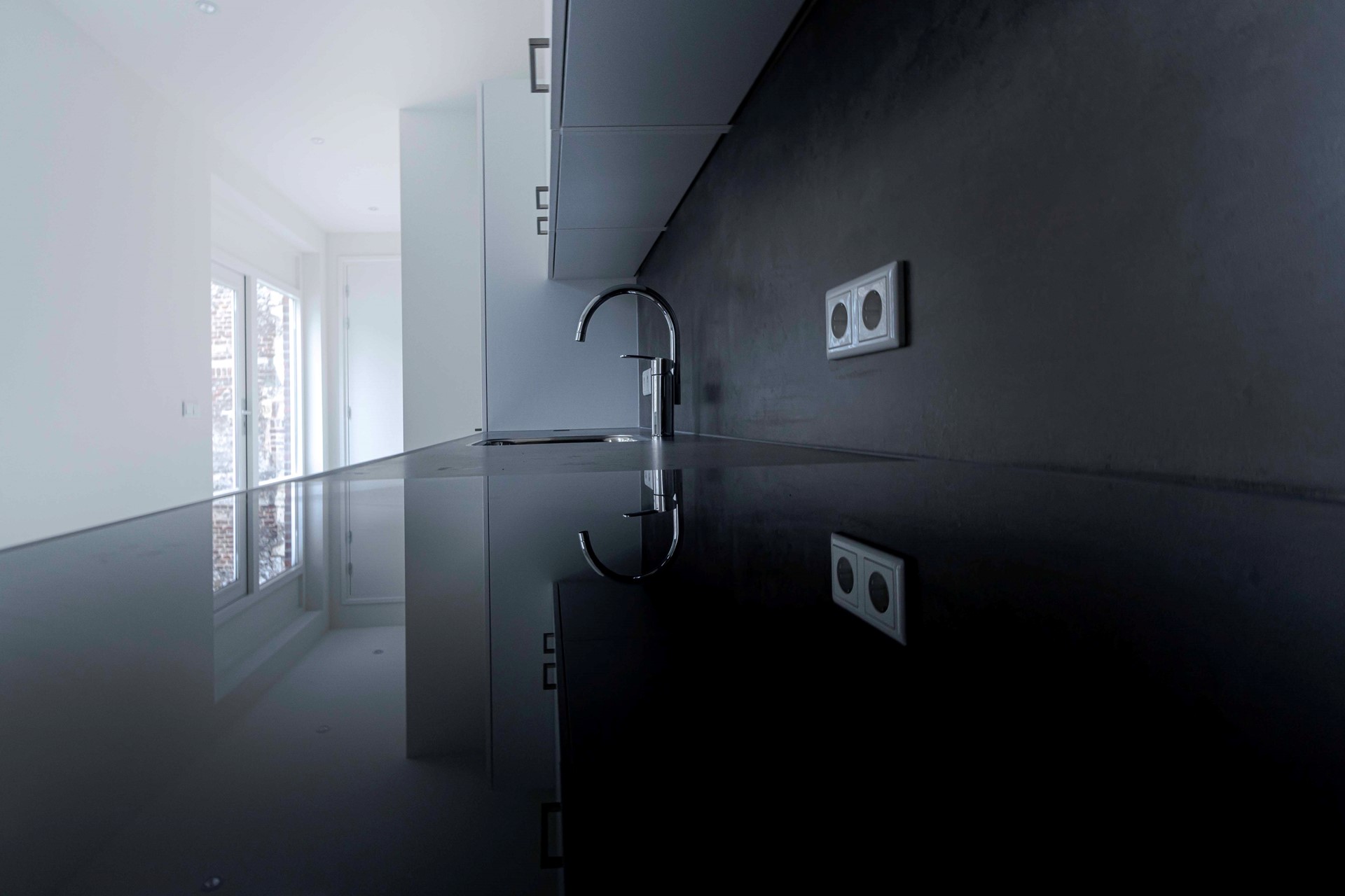 Hier bevindt zich een nieuwe moderne keuken voorzien van de benodigde apparatuur.