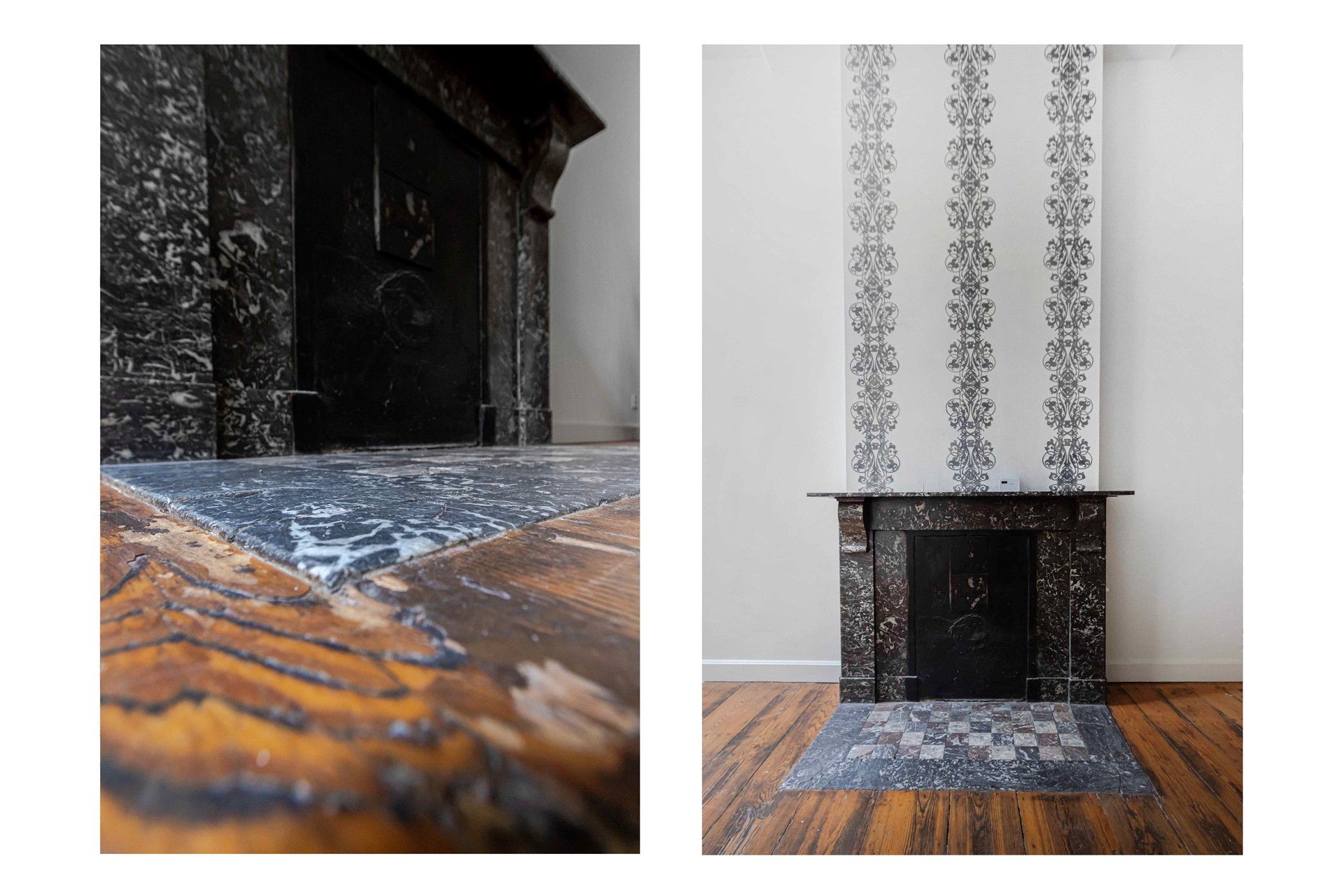 Aan de andere kant van de hal bevindt zich nog een kleine slaapkamer voor gasten of voor een thuiskantoor. Mooie houten vloeren en marmeren schouw maken het plaatje compleet.