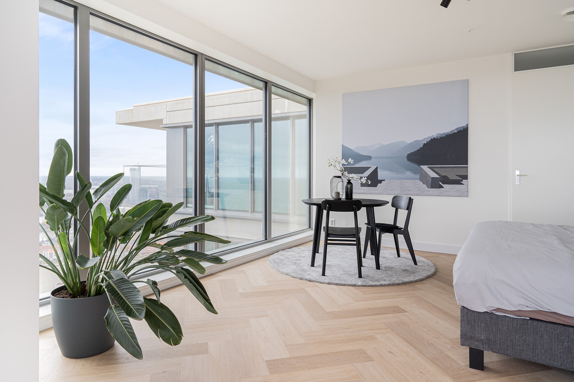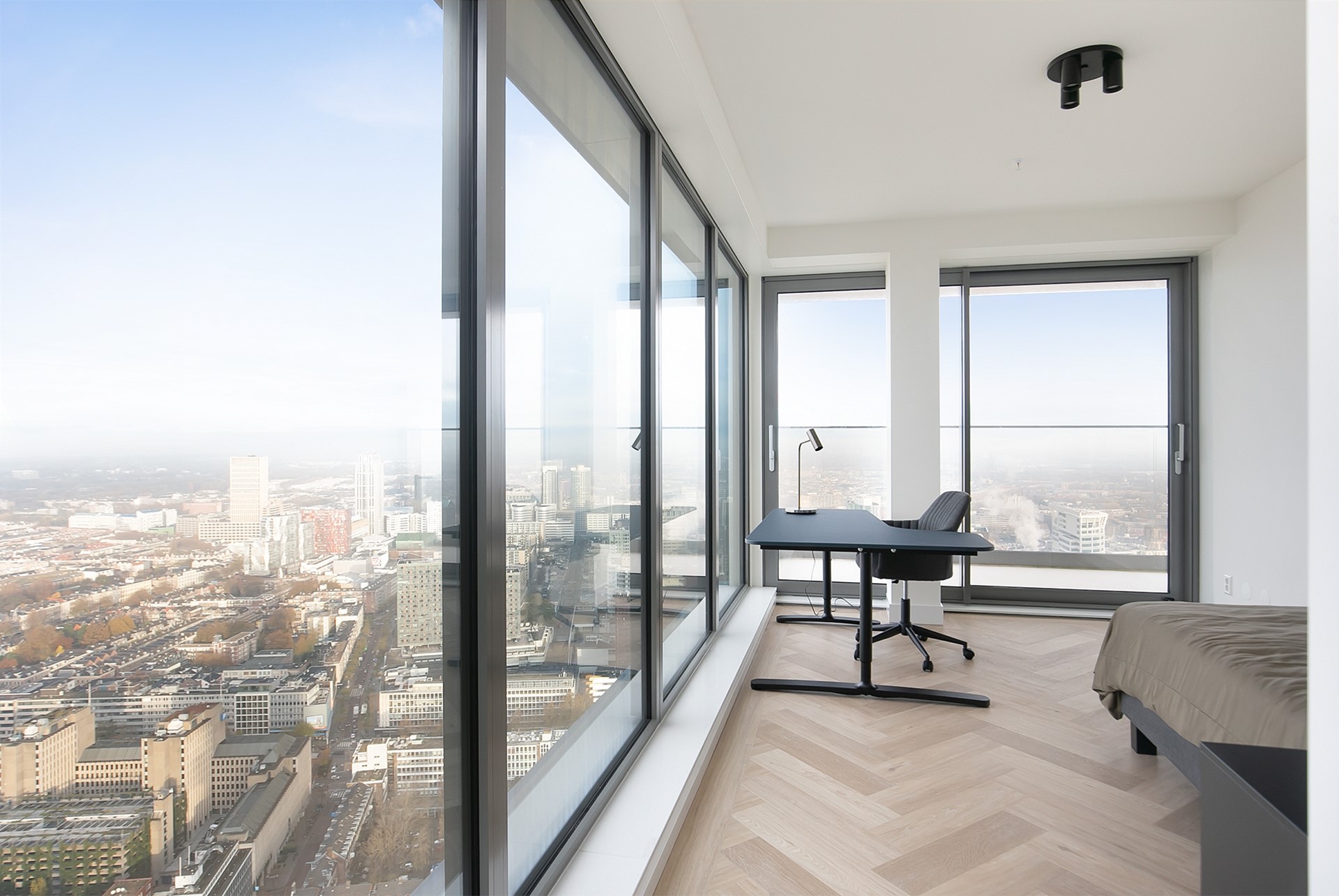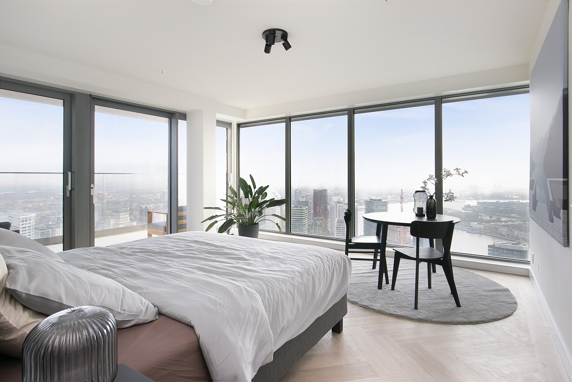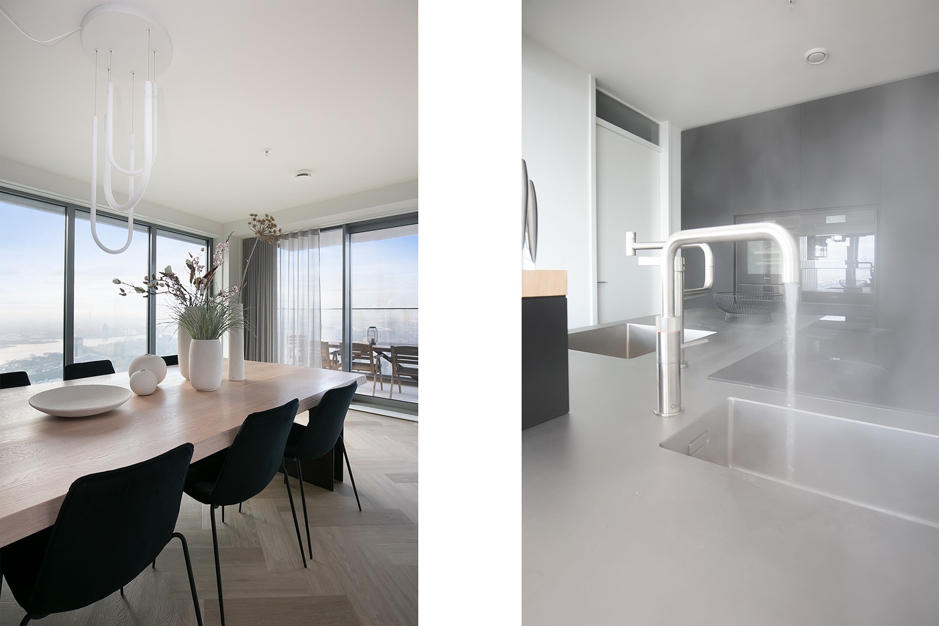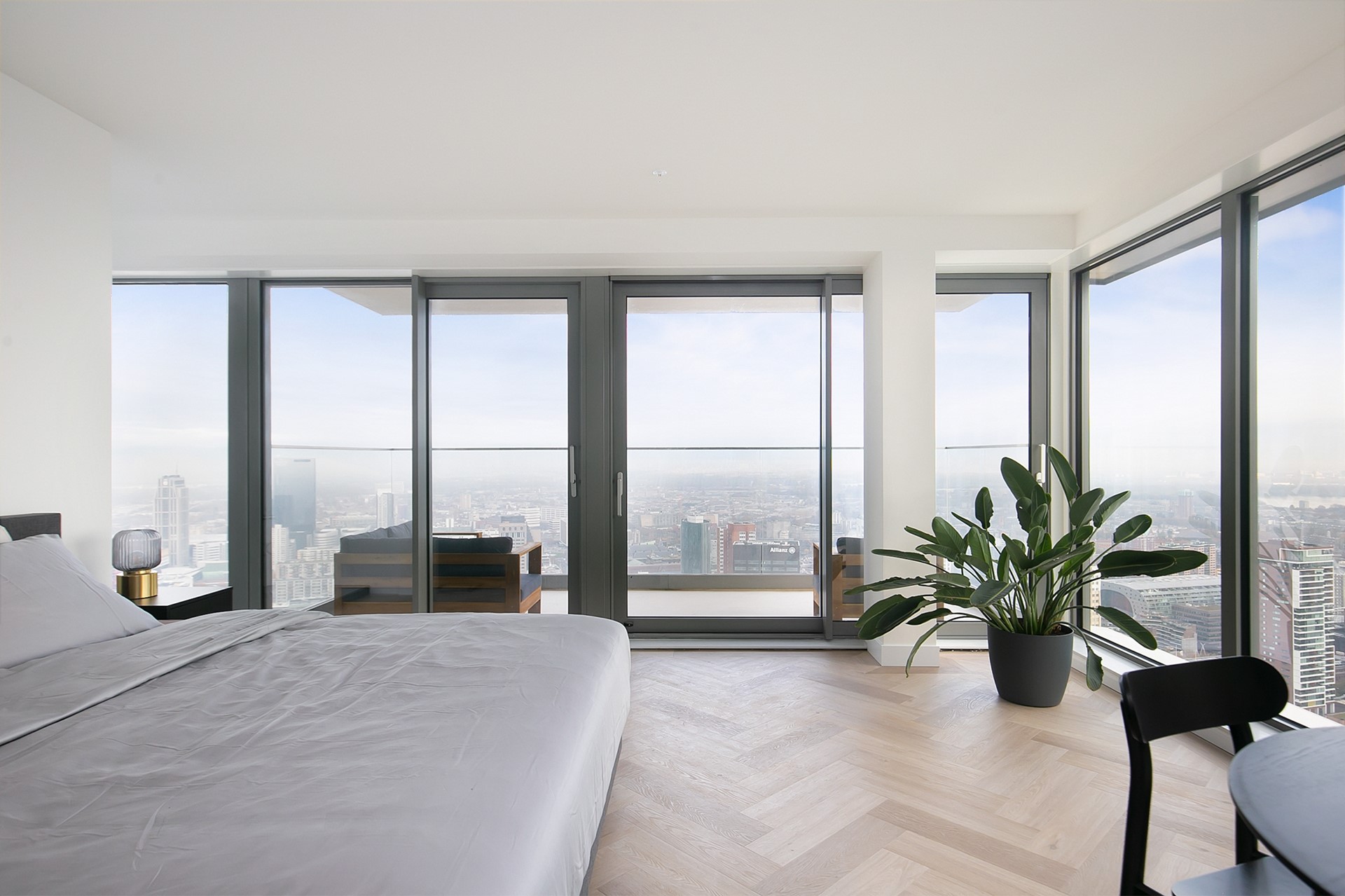 Vanuit de woonkamer heeft u toegang tot twee privébalkons; een unieke plek om de dag te beginnen of juist in alle rust af te sluiten, hoog boven de stad.