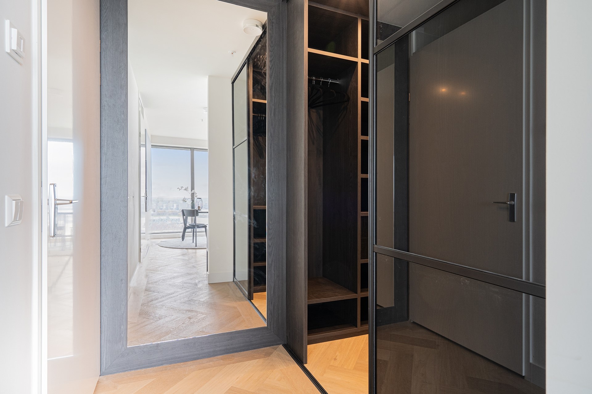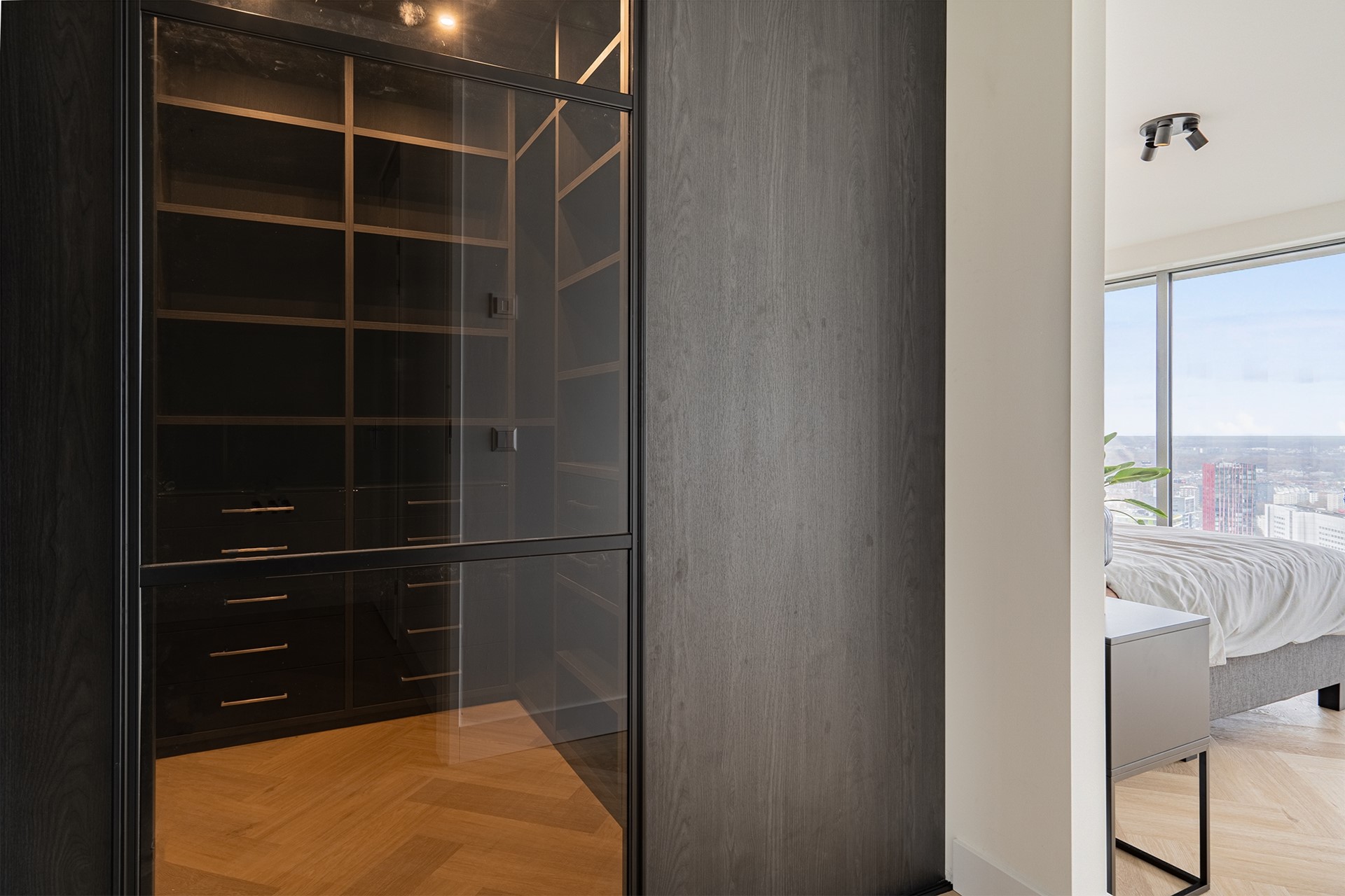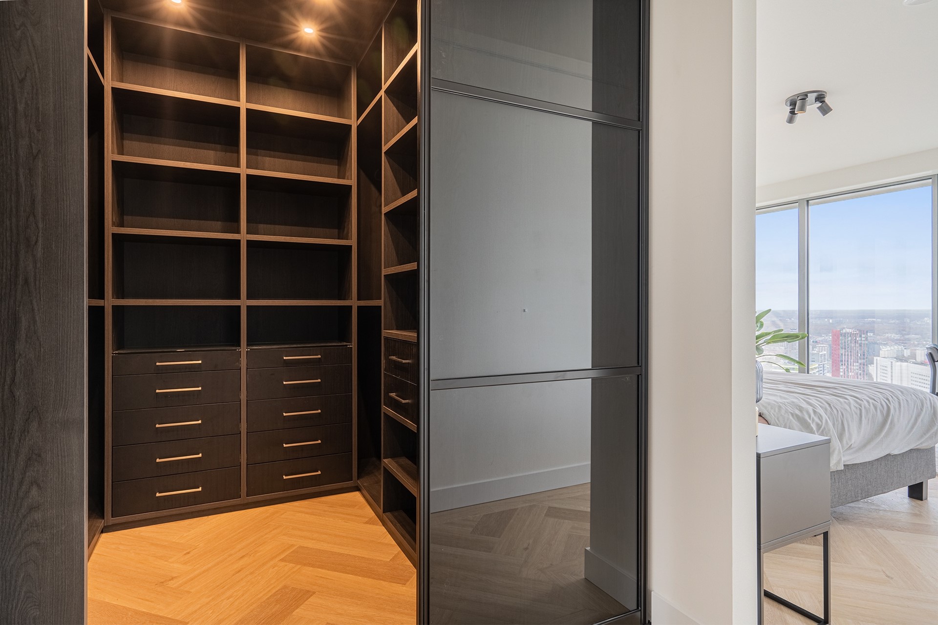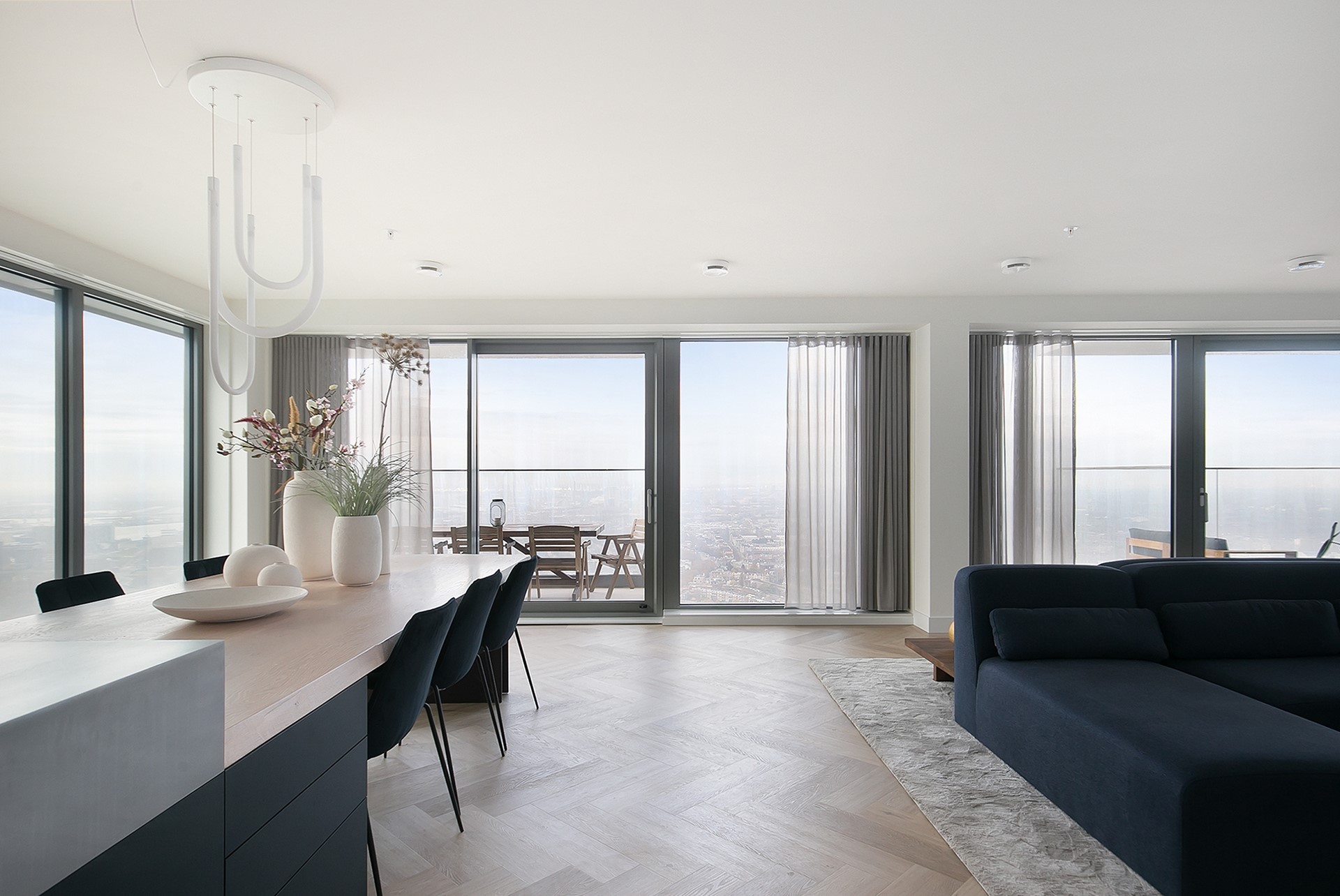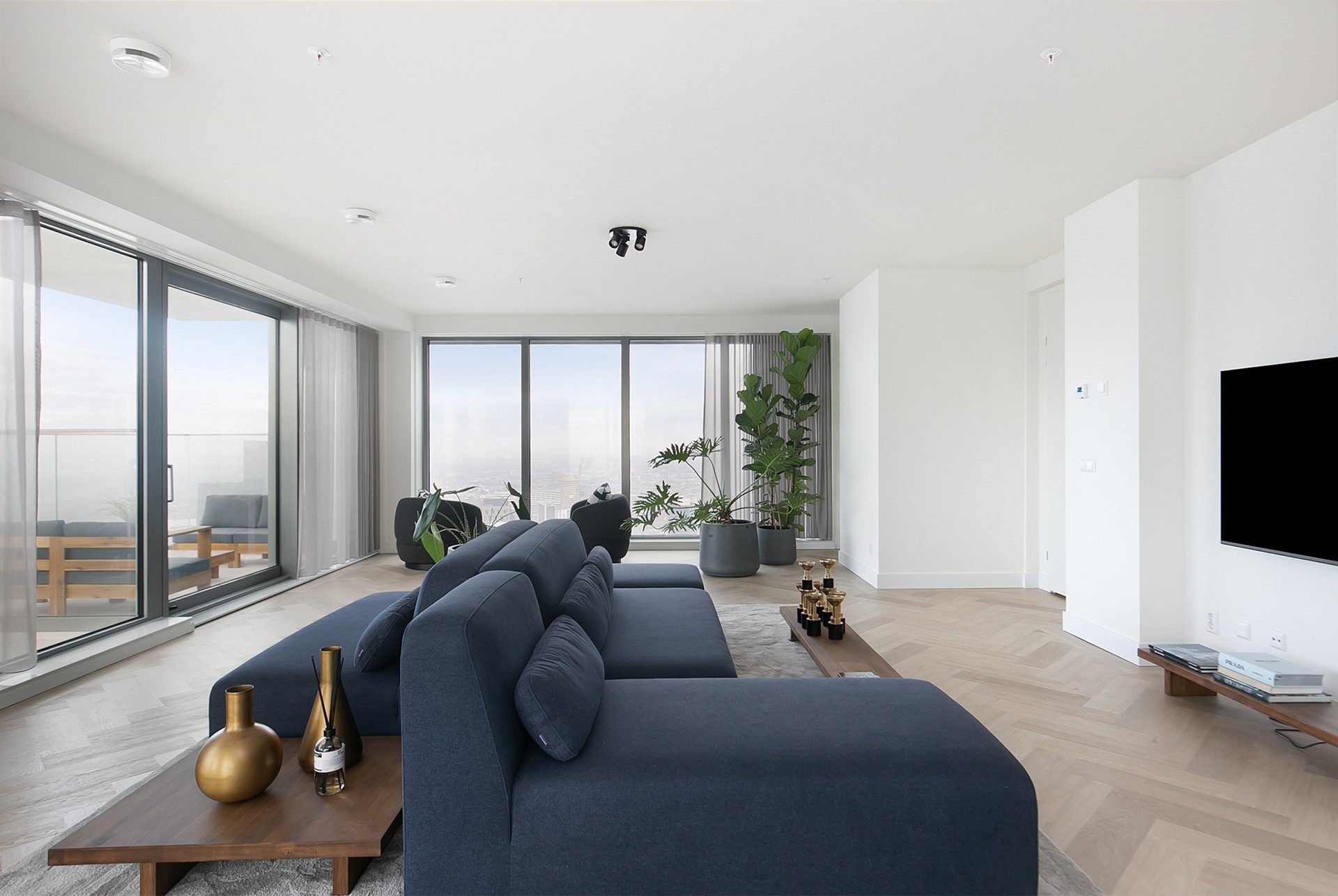Vanuit de woonkamer heeft u toegang tot twee privébalkons; een unieke plek om de dag te beginnen of juist in alle rust af te sluiten, hoog boven de stad.