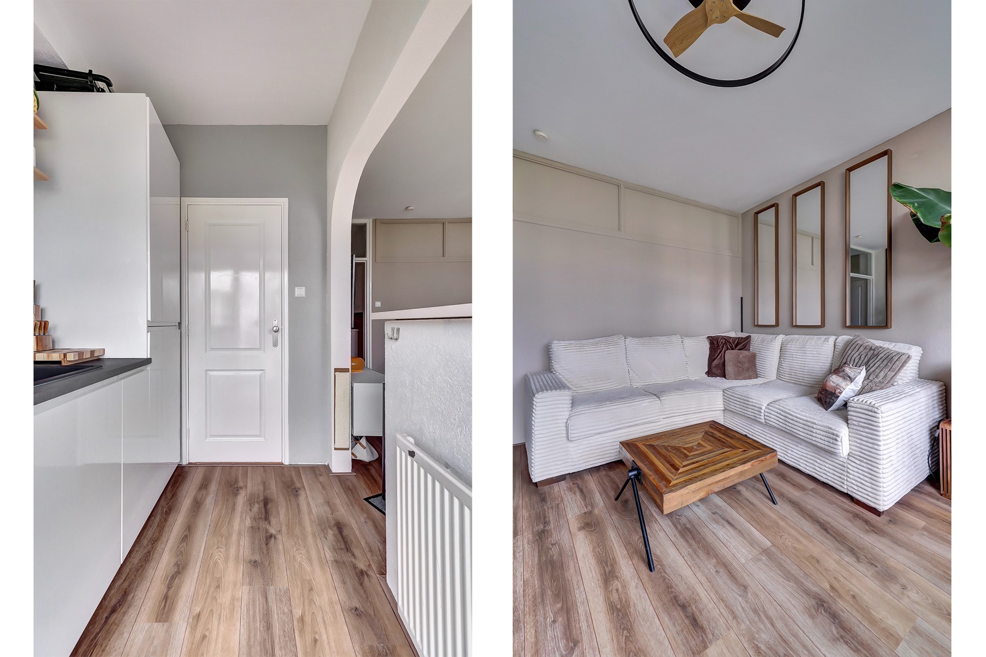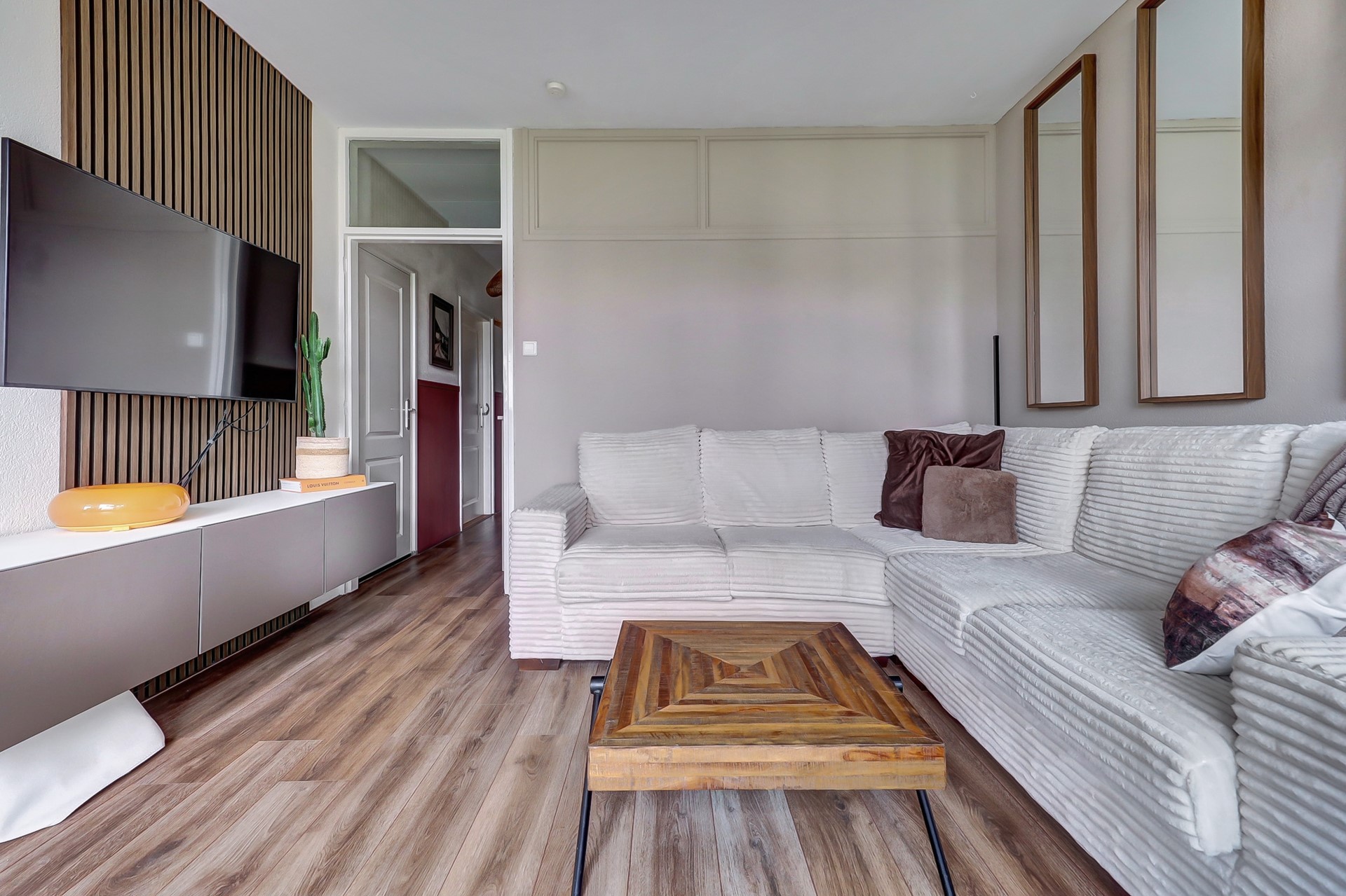De badkamer werd in 2025 prachtig verbouwd, de hal en de woonkamer zijn dit jaar ook opnieuw geverfd en voorzien van een nieuwe laminaatvloer.