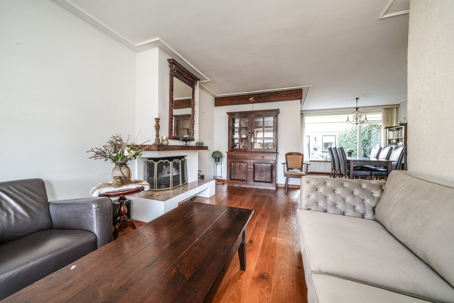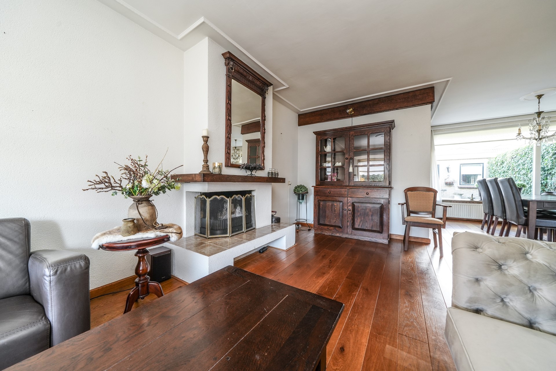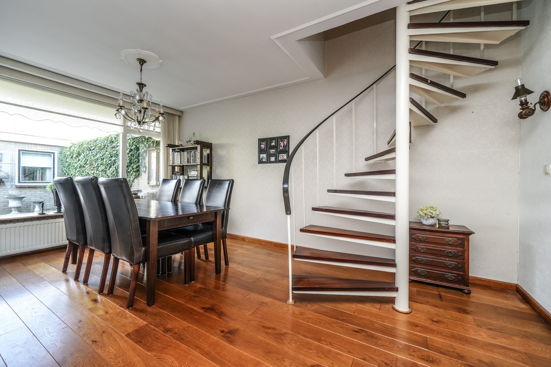 De woonkamer met de open haard en de erker aan de voorzijde zorgen voor een sfeervolle ruimte. Door de open verbinding met de achterkamer is de begane grond een zeer open ruimte. Een elegante spiltrap leidt naar de verdieping.