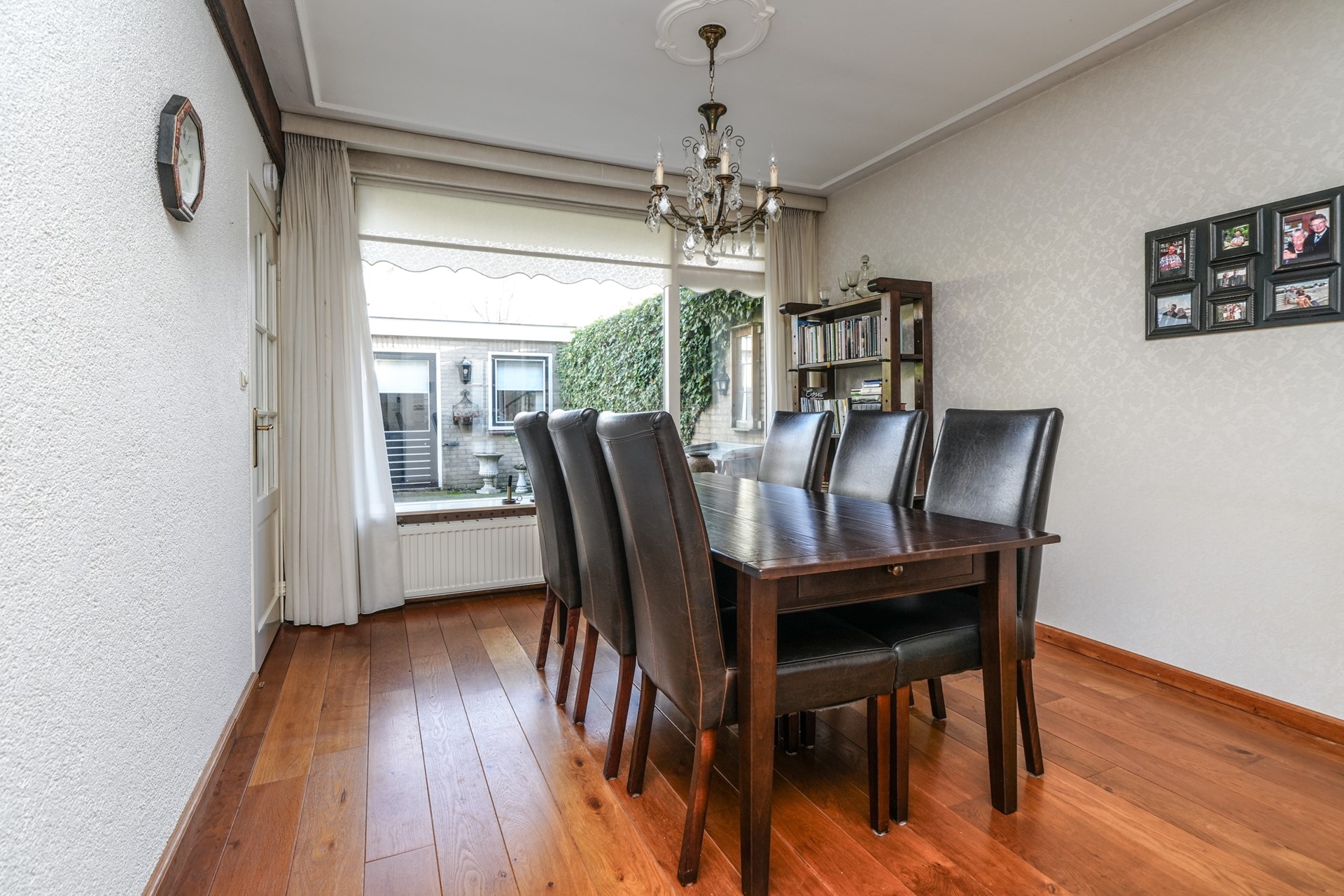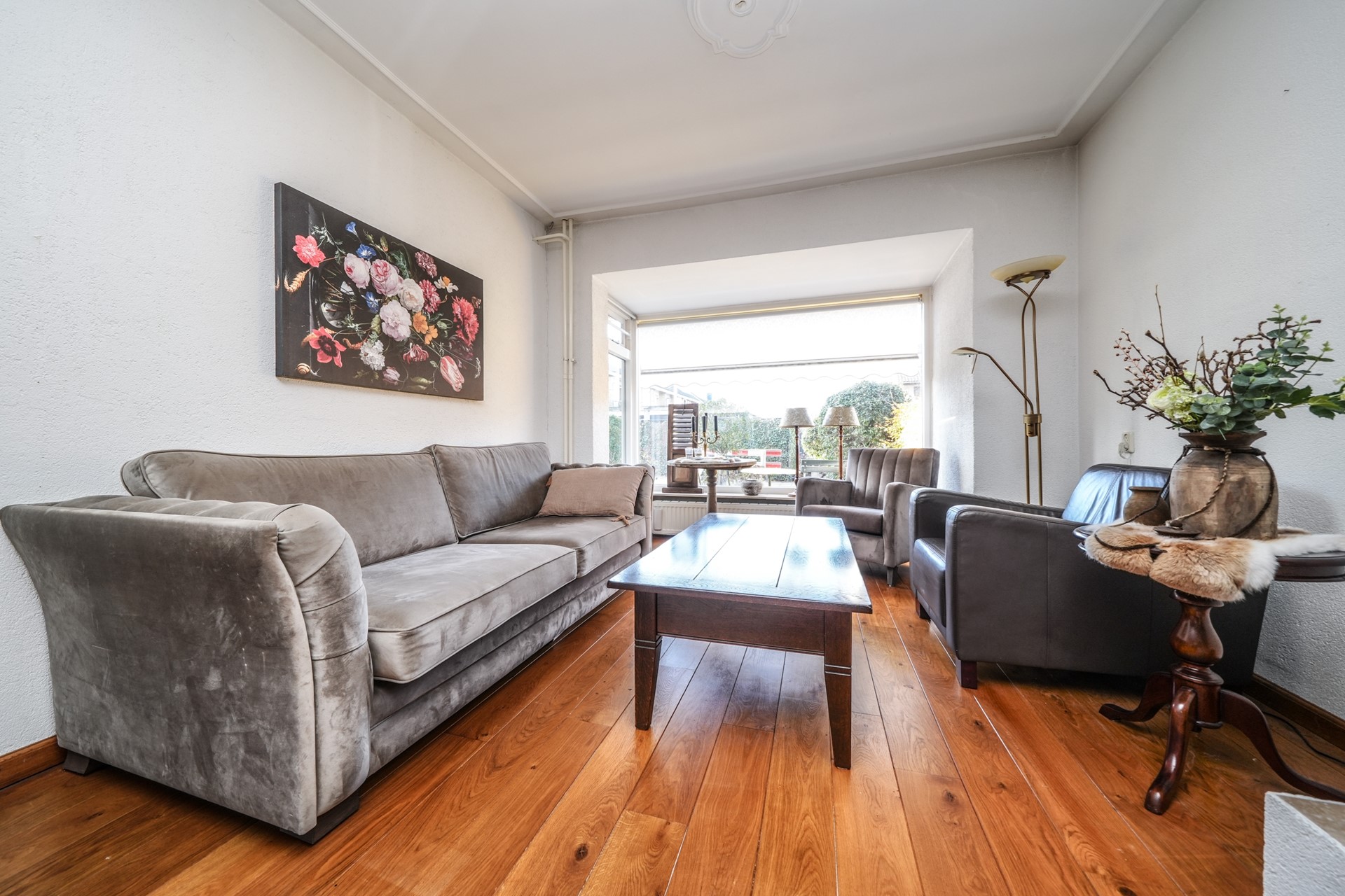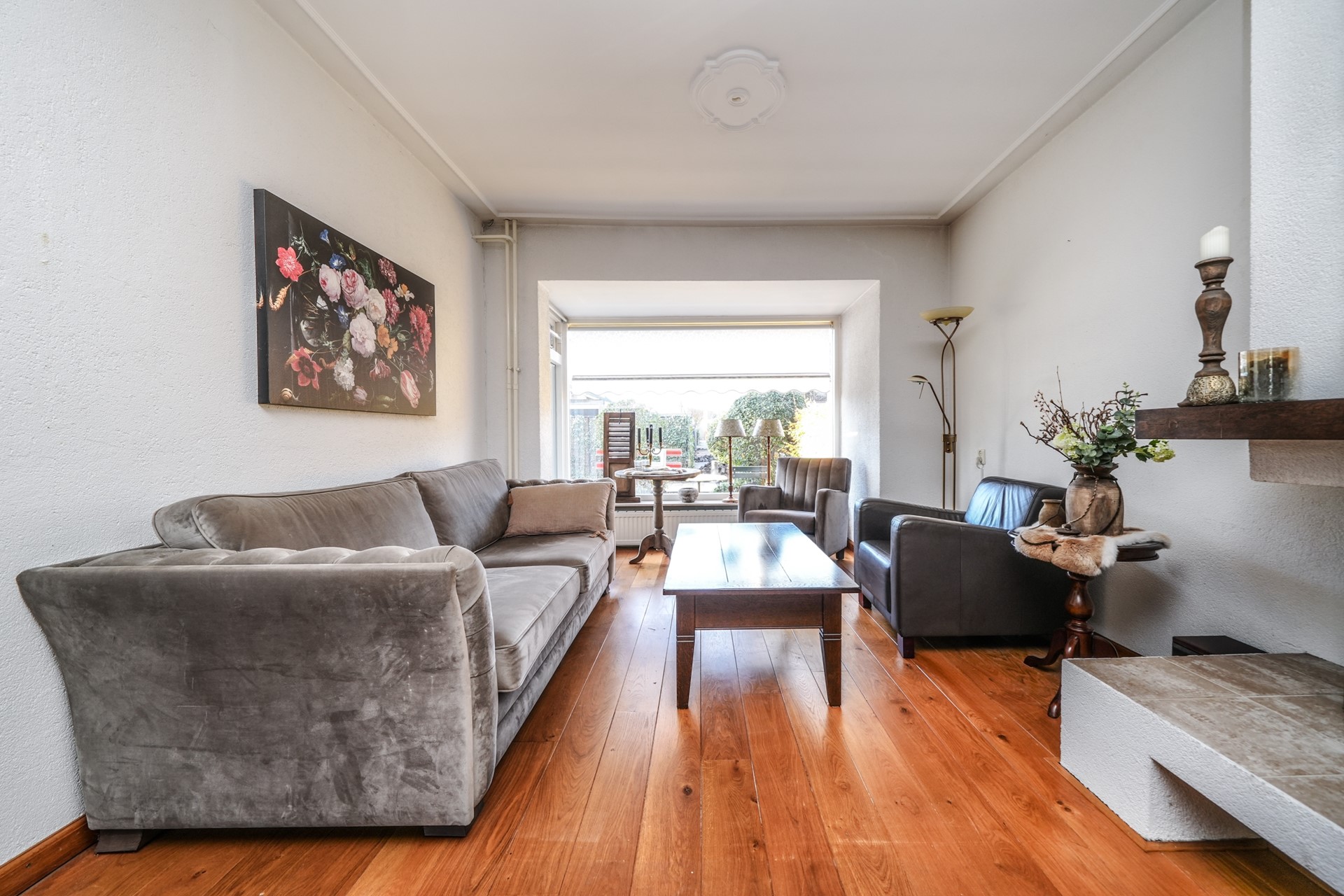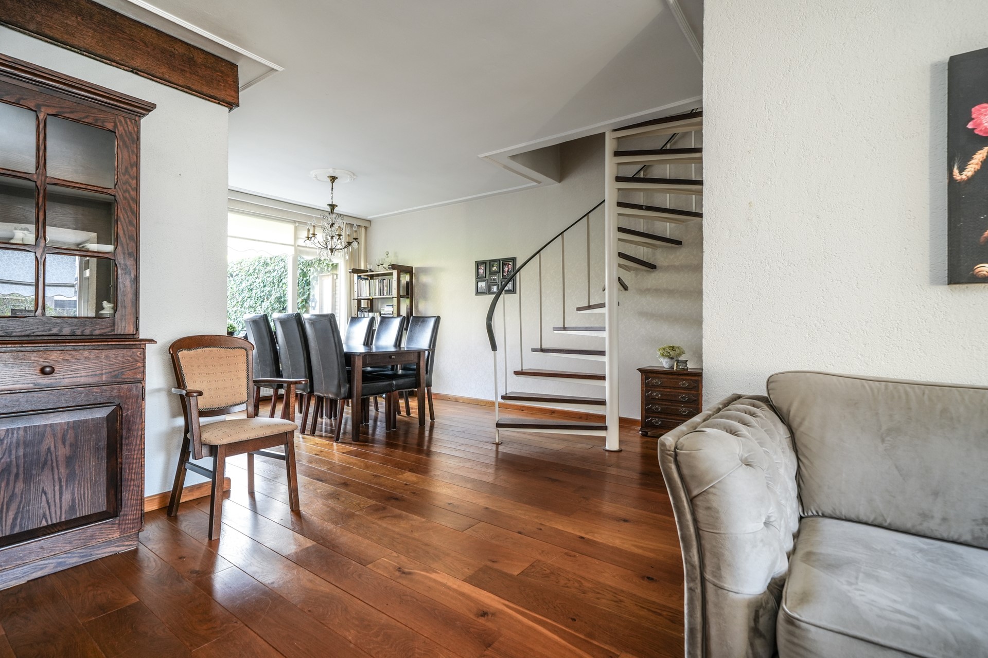De woonkamer met de open haard en de erker aan de voorzijde zorgen voor een sfeervolle ruimte. Door de open verbinding met de achterkamer is de begane grond een zeer open ruimte. Een elegante spiltrap leidt naar de verdieping.