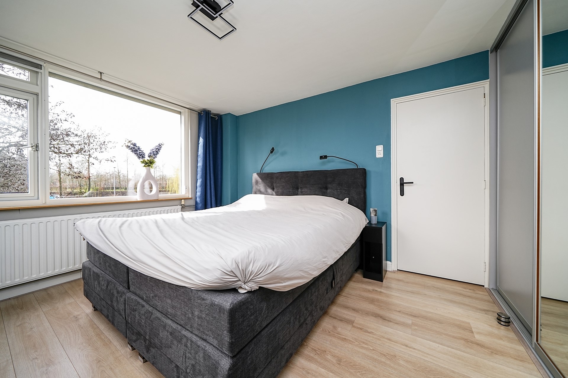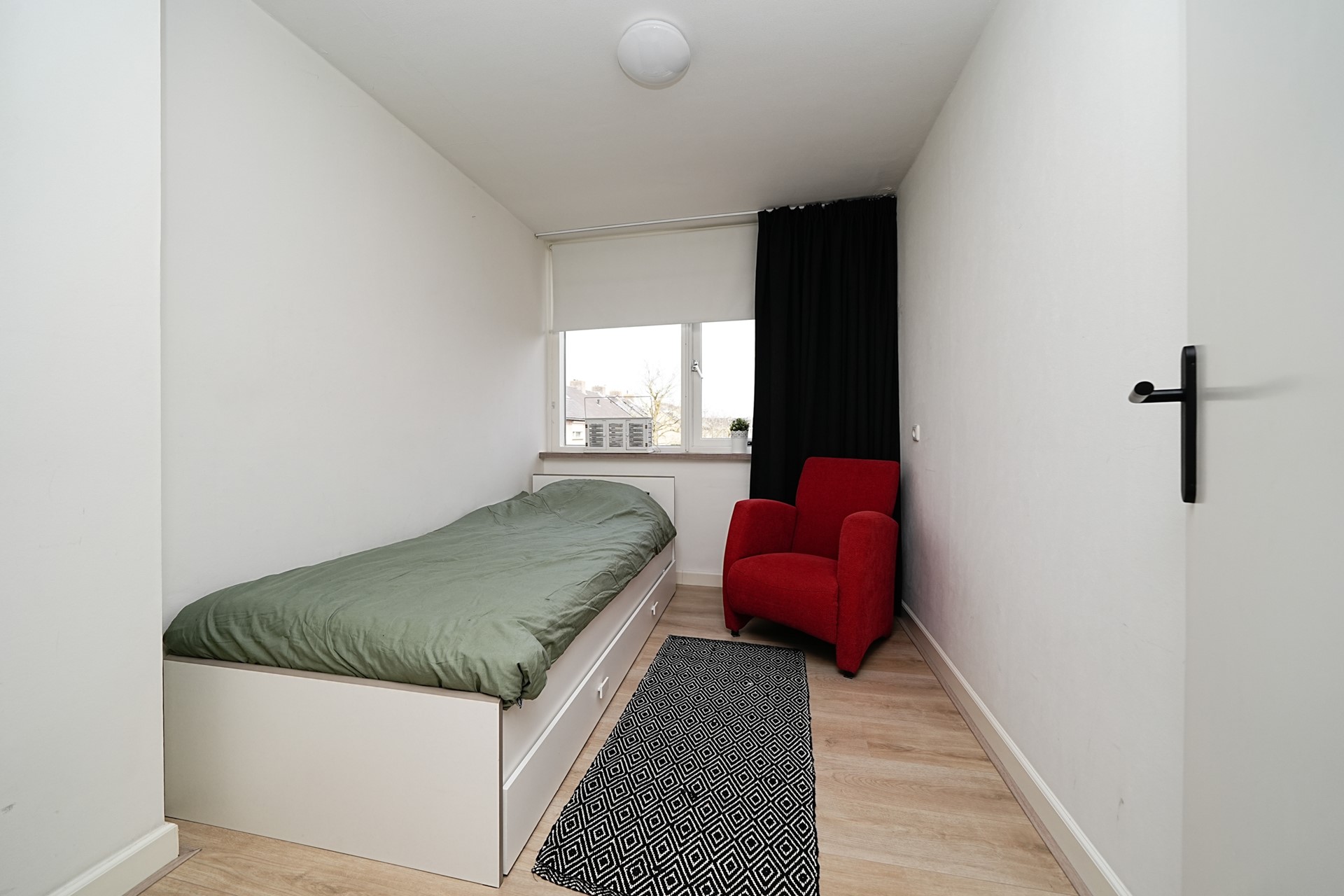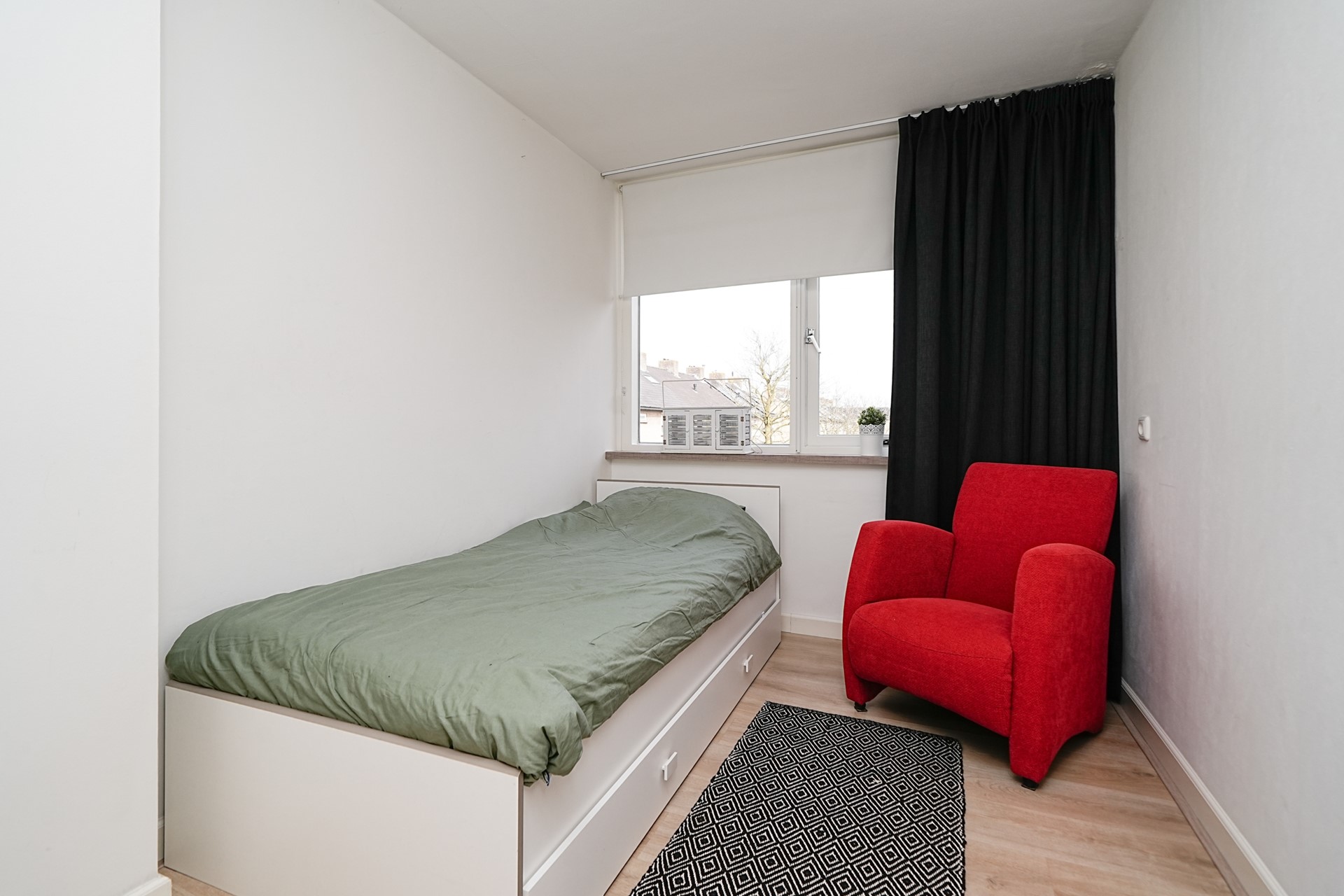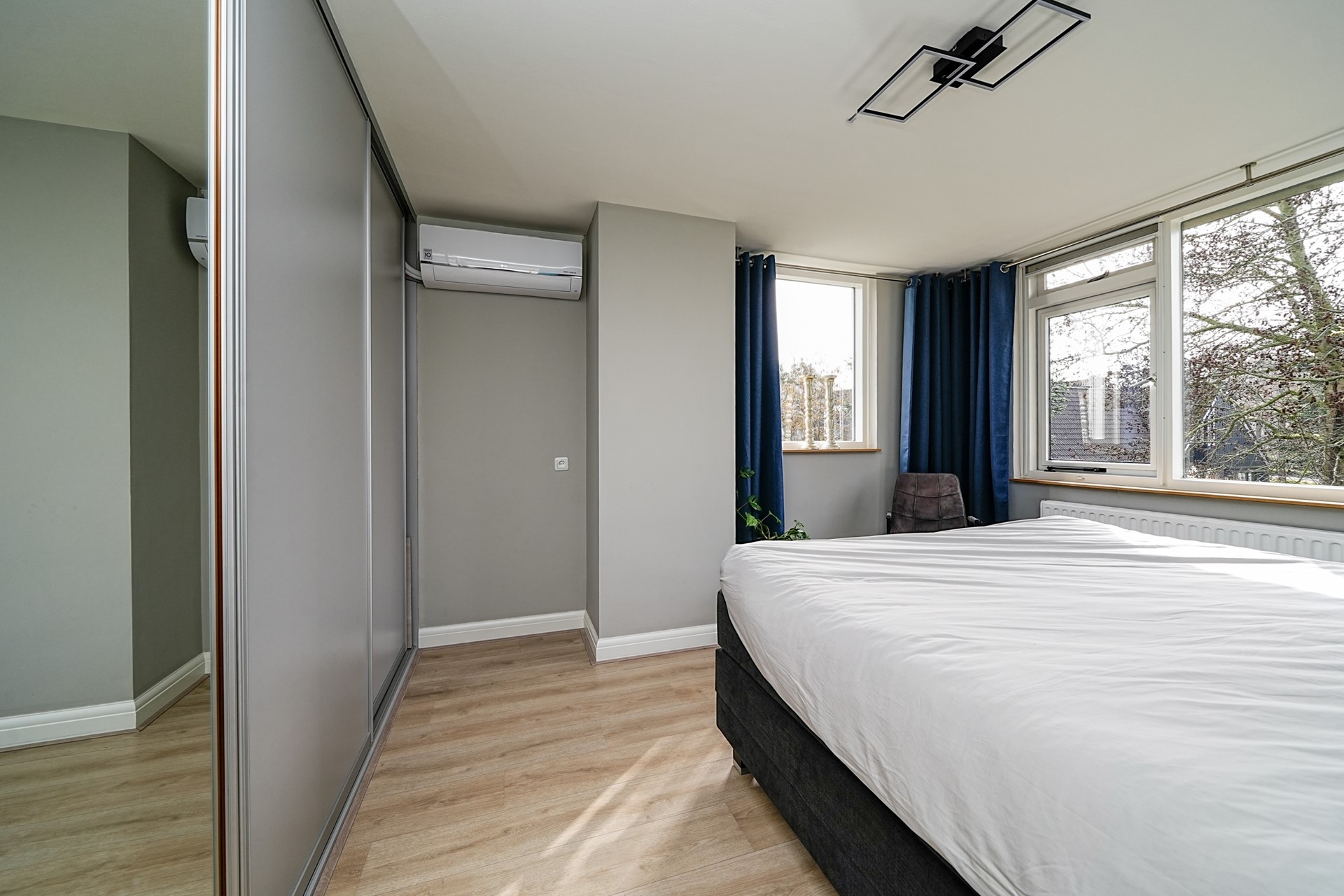 De slaapkamer aan de achterzijde is bijzonder ruim en daarmee uitstekend geschikt als slaapkamer (voorzien van airconditioning en elektrisch rolluik). Dankzij de dakkapel met het grote raam valt hier veel natuurlijk licht naar binnen, wat zorgt voor een aangename en lichte sfeer. Aan de voorzijde ligt de tweede slaapkamer. Deze kamer leent zich perfect als kinder-, logeer- of werkkamer.