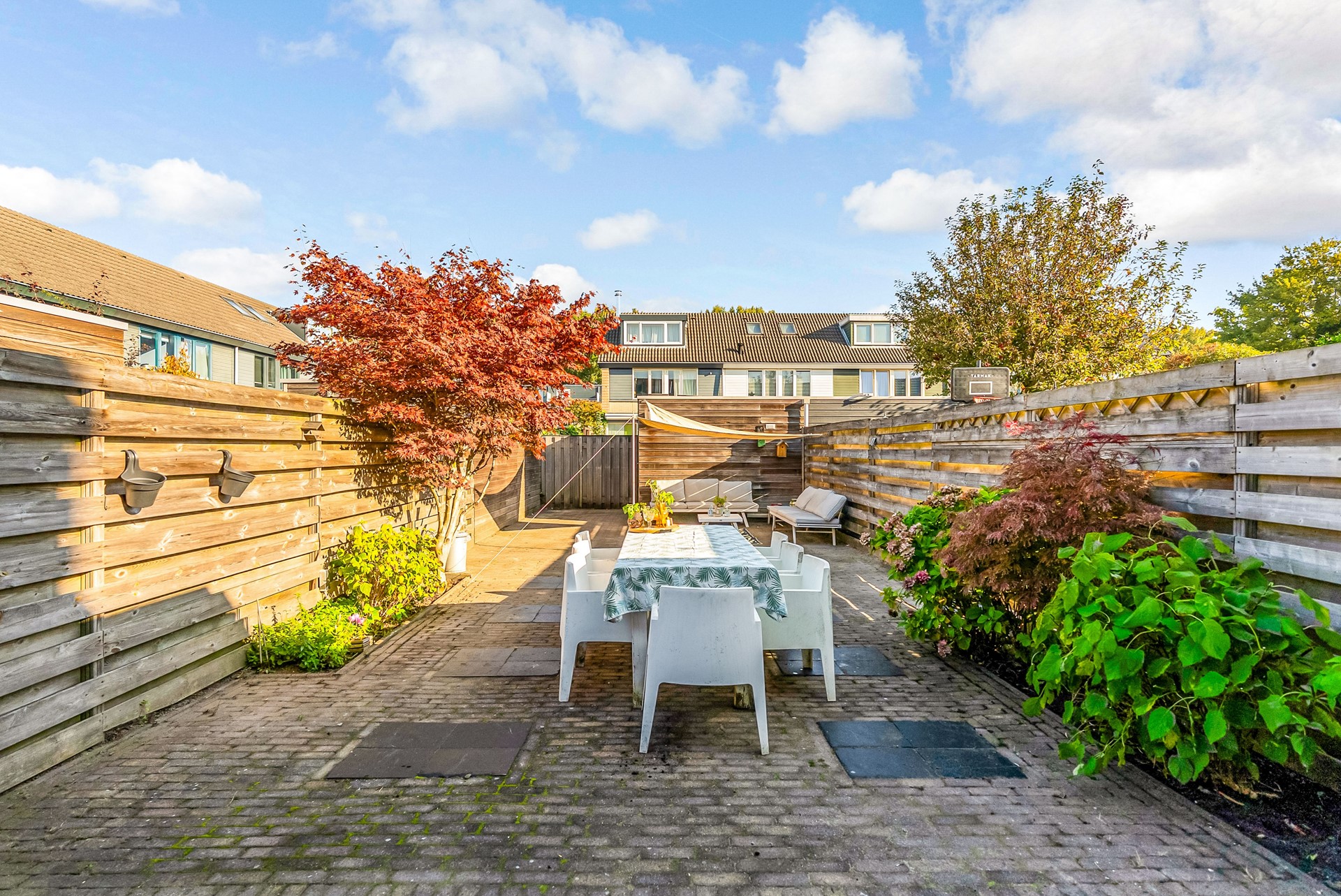 De grote tuin biedt tal van mogelijkheden voor zowel ontspanning als entertainment. Profiteer van de zon op het terras, of maak een heerlijke BBQ-avond met vrienden en familie. De tuin is ook perfect voor kinderen om veilig te spelen. De tuin is voorzien van enkele groene borders en is erg diep. In de tuin staat een vrijstaande houten berging.