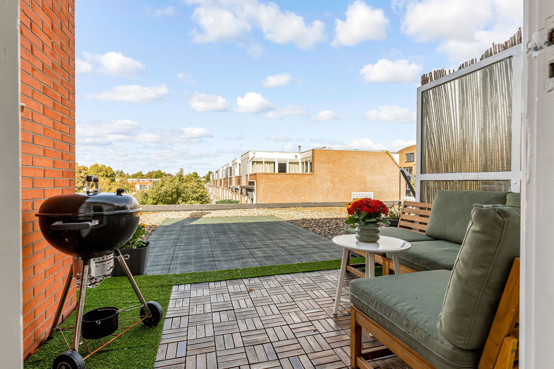Aan de achterkant van het appartement is een 2e buitenruimte aanwezig. Dit terras was voorheen kleiner, maar recent is door de VVE besloten dat dit terras uitgebreid mag worden waardoor een zee van ruimte is ontstaan. Je kan hier praktisch de gehele dag, tot aan zonsondergang, van de zon genieten.