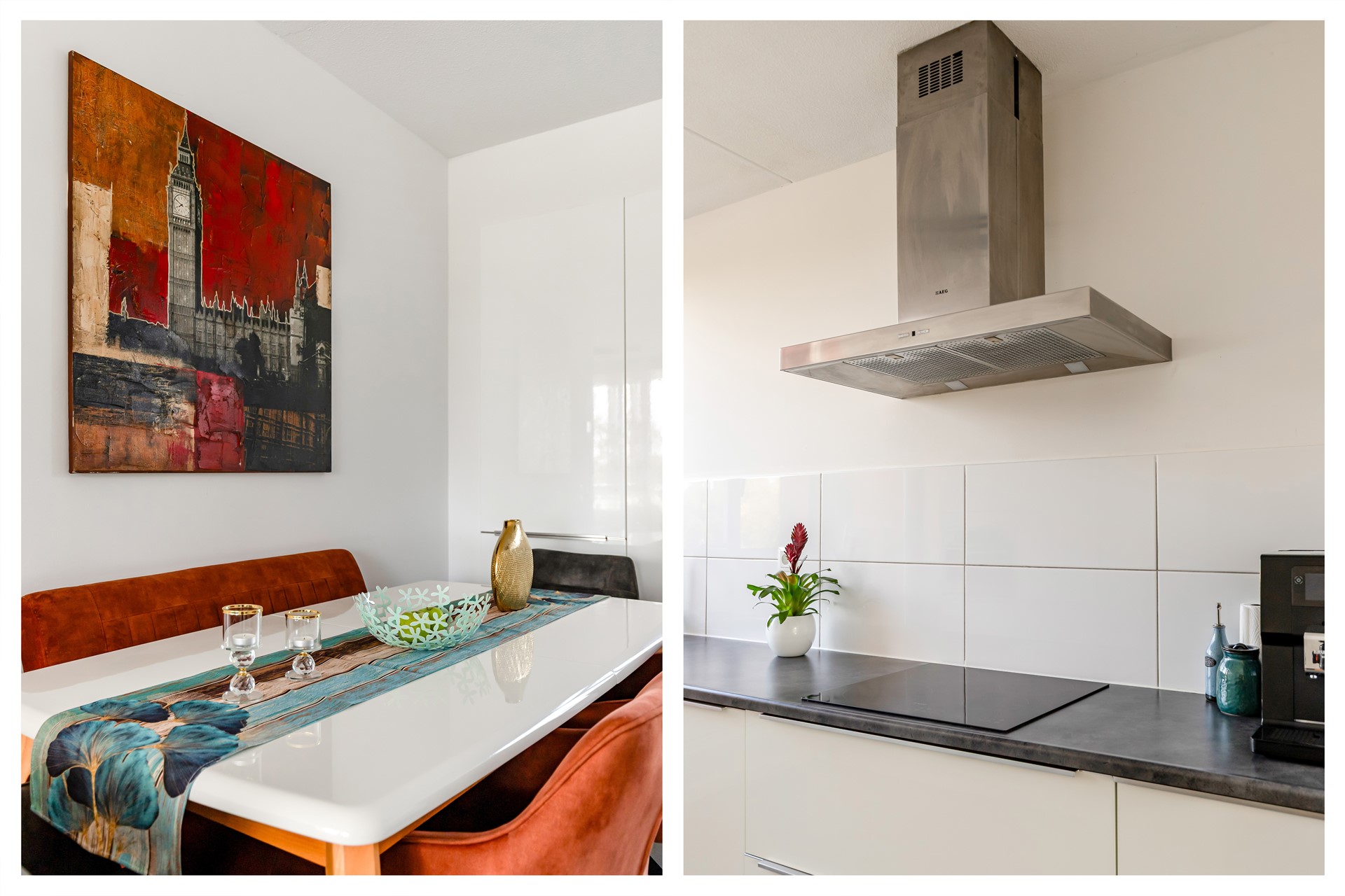 Bij binnenkomst in de hal heb je toegang tot het toilet, de trapopgang naar boven en de woonkamer. De woonkamer is heerlijk ruim en licht. Dit komt mede door de grote raampartijen aan de voor- en achterkant van de woonkamer. De woonkamer is voorzien van een keurige PVC vloer met daaronder vloerverwarming. De keuken is geheel van deze tijd en voorzien van diverse inbouwapparatuur, te weten: koel-/vriescombinatie, vaatwasser, combimagnetron, inductiekookplaat, afzuigkap en een extra losse vriezer.