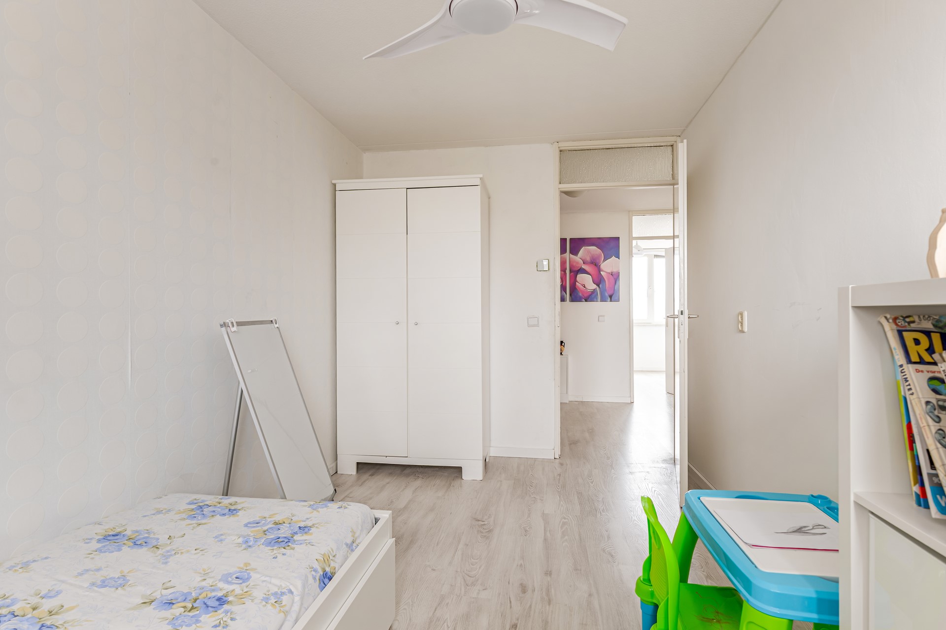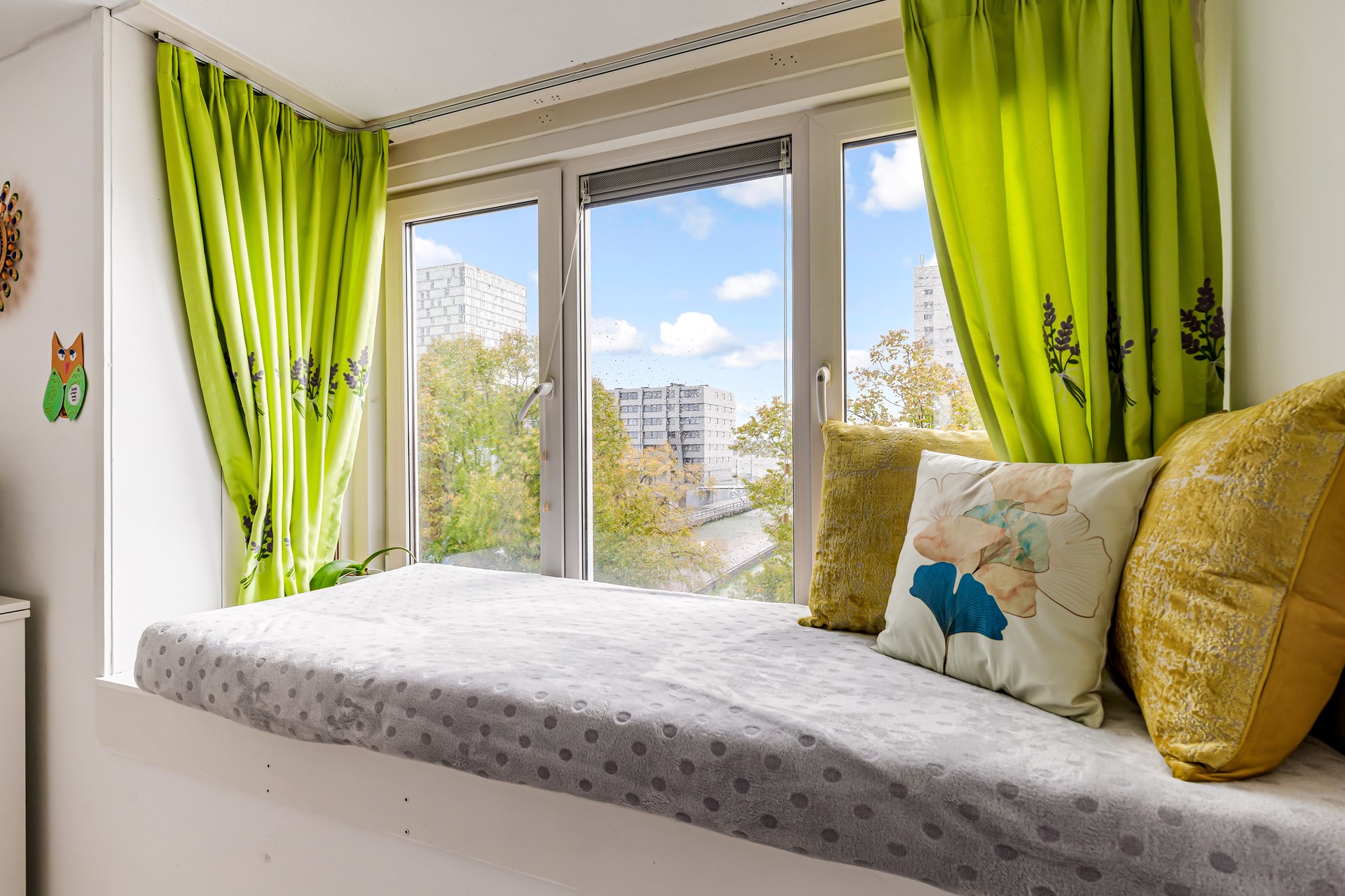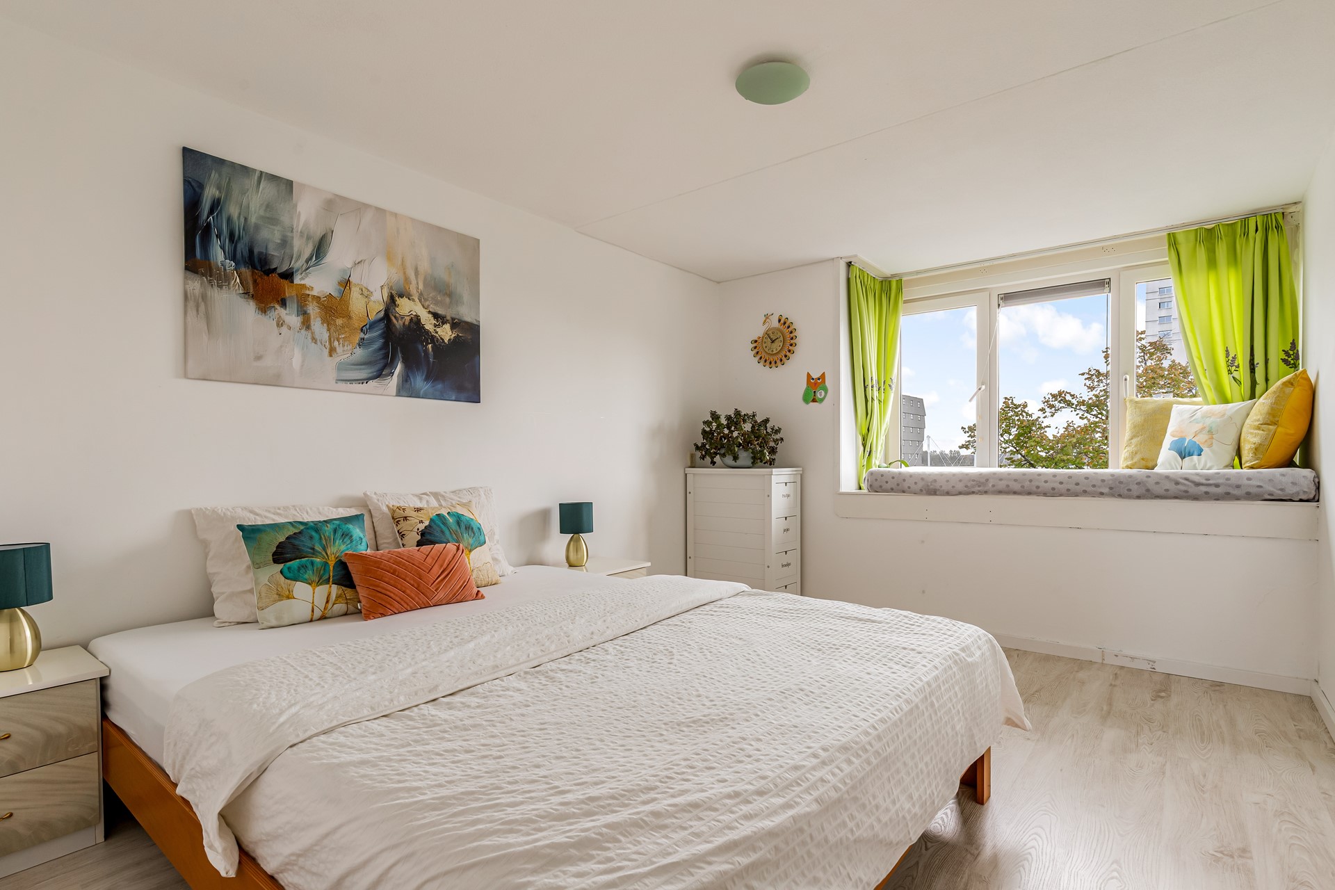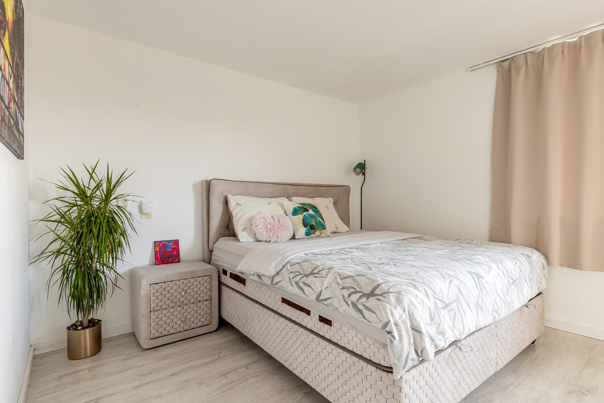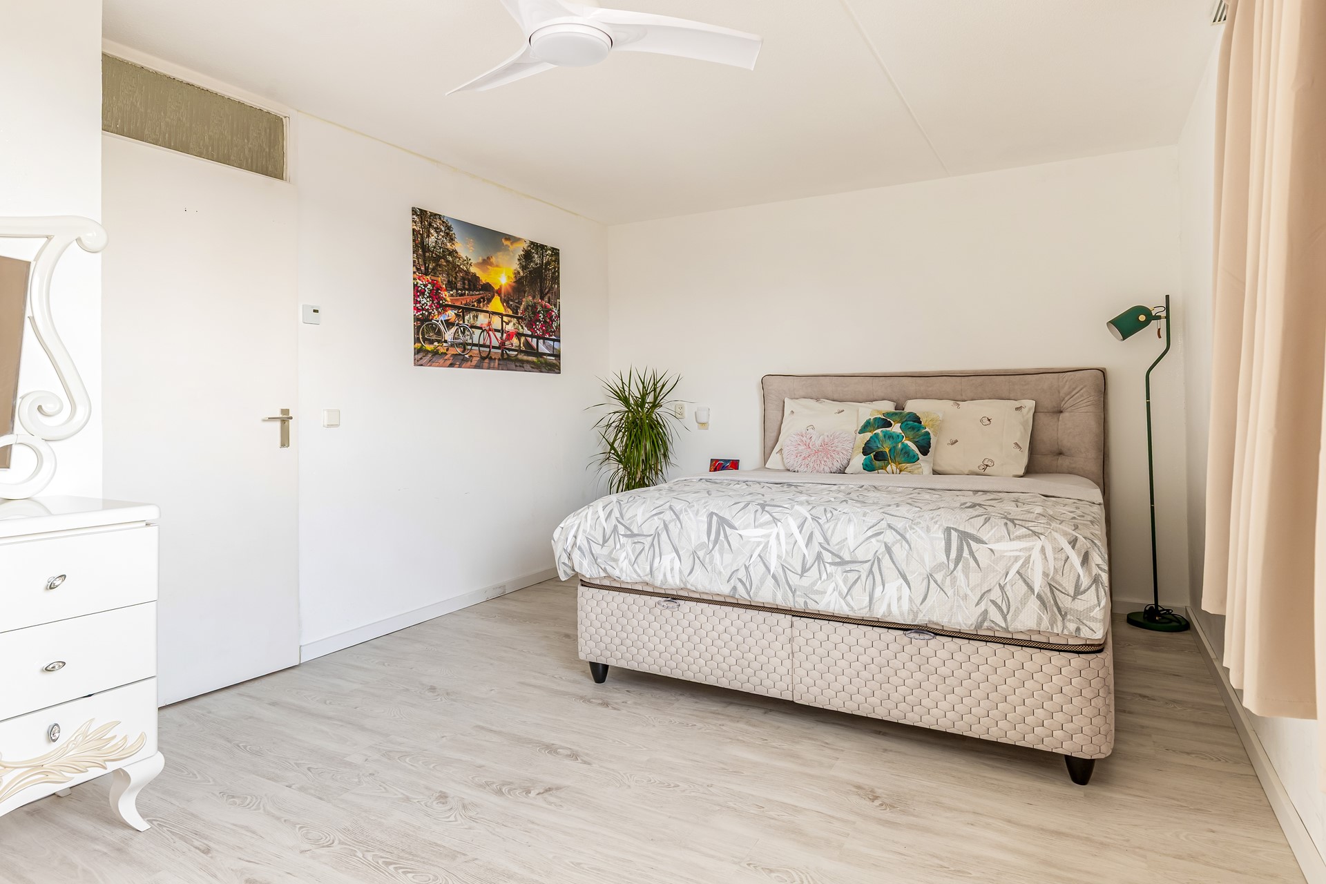 De royale overloop geef toegang tot 3 slaapkamers en de badkamer. De grootste slaapkamer is gelegen aan de achterkant van het appartement. Deze kamer is dermate ruim dat hier gemakkelijk een walk in closet is te realiseren. Maar het is ook mogelijk om de kamer deels op te splitsen voor een werkplek. De andere twee slaapkamers zijn aan de voorkant van het complex gelegen. Deze kamers hebben heerlijk uitzicht, en de verdiepte vensterbanken zorgen dat er in de kamers leuke zitjes mét leuk uitzicht zijn ontstaan.