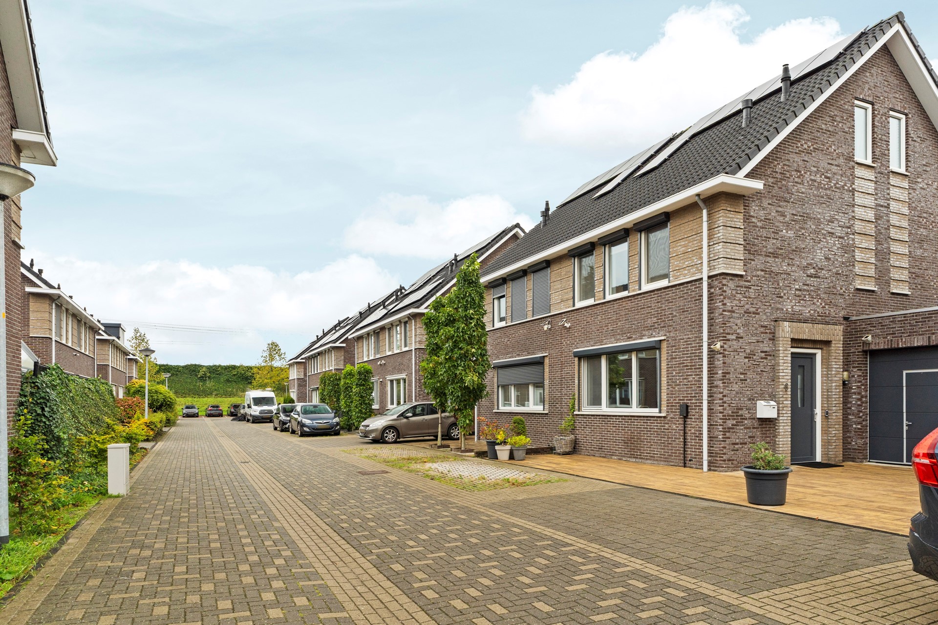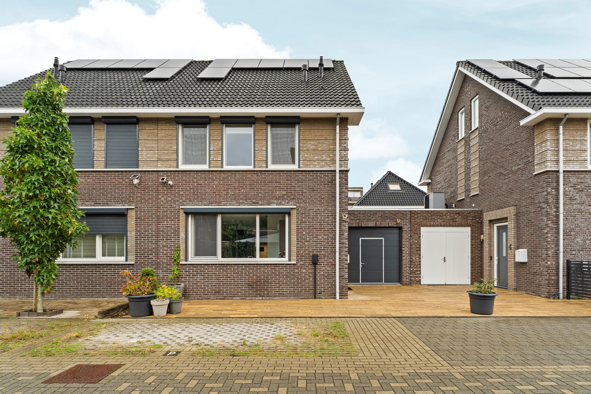 De woning beschikt over een praktische garage, bereikbaar vanuit zowel de voor- als achtertuin. De garage biedt ruimte voor één auto of kan dienen als extra bergruimte. Dankzij de oprit is parkeren op eigen terrein mogelijk, en aan de voorzijde van de woning bevindt zich een oplaadpunt voor een elektrische auto.