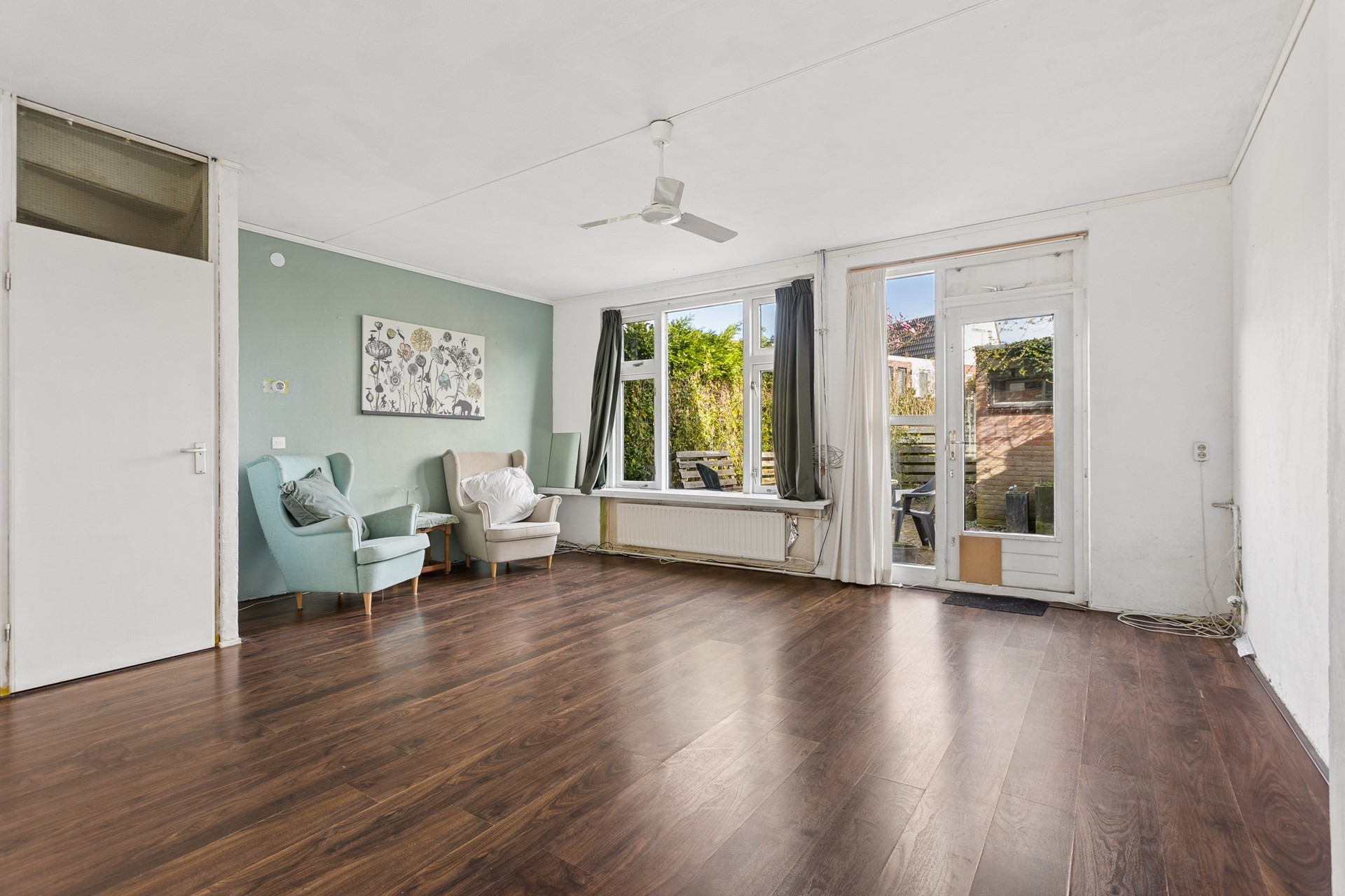● Tuingerichte woonkamer met trapkast