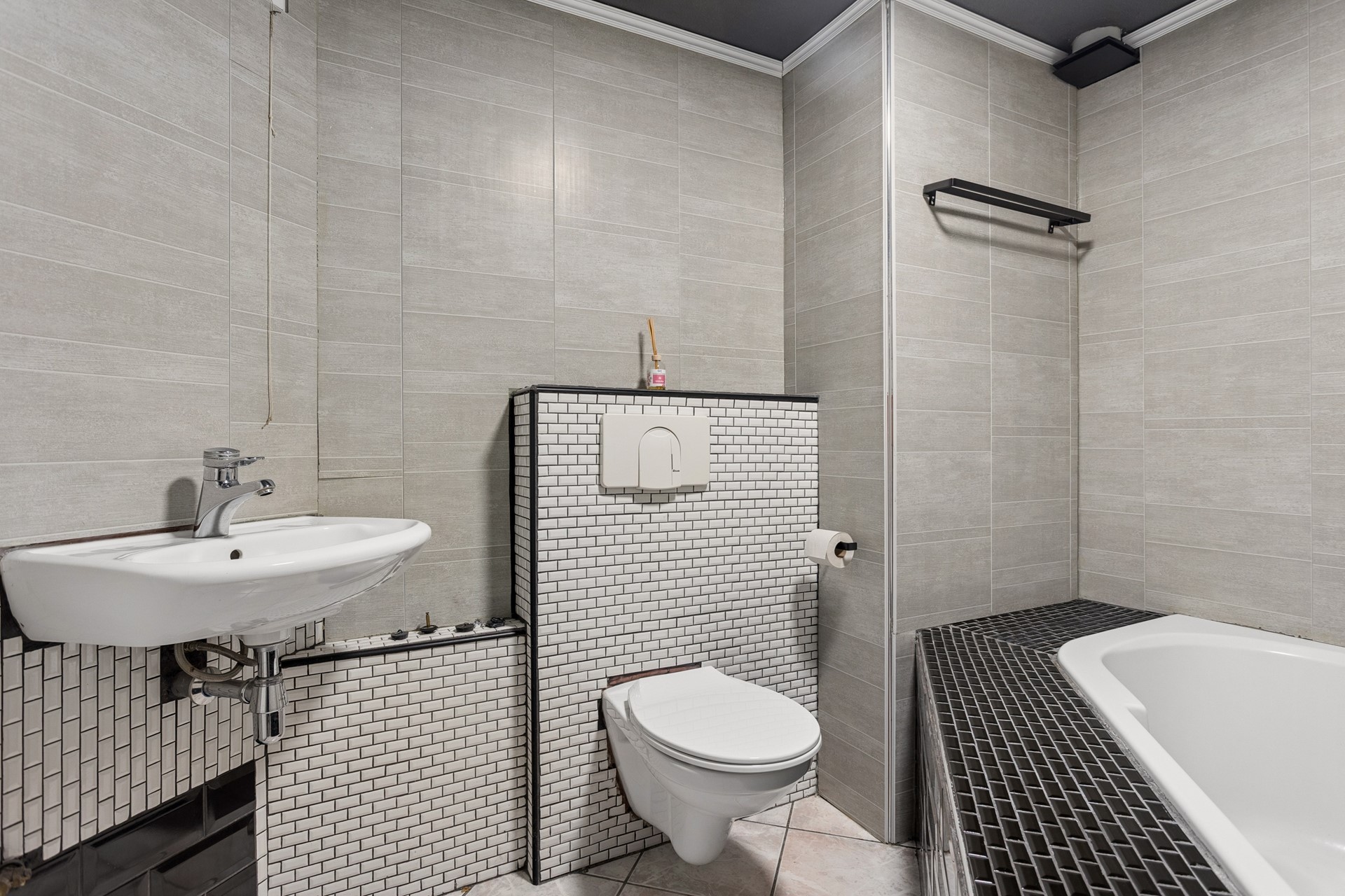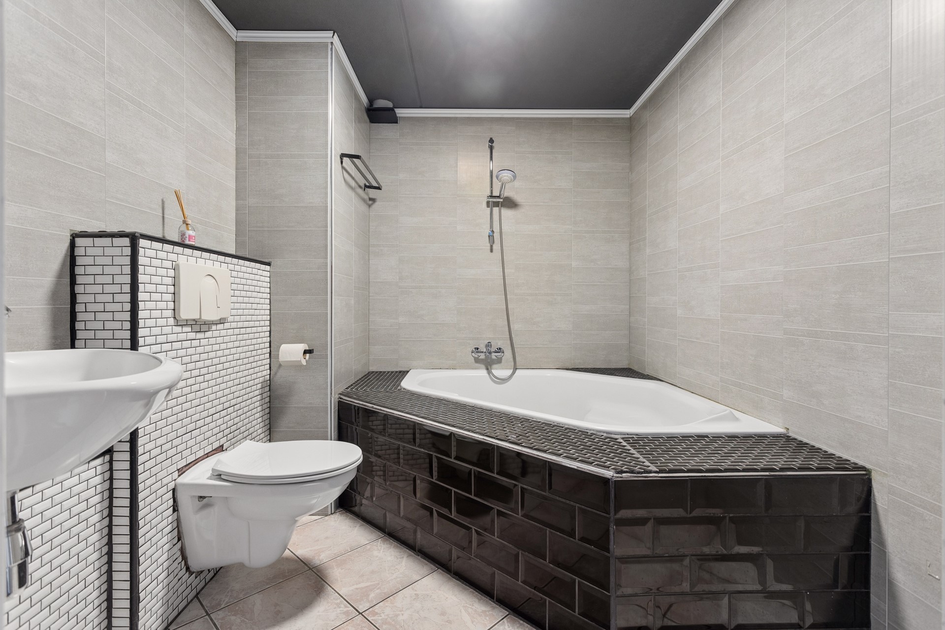 ● Badkamer met ligbad, douchefunctie, toilet en wastafel