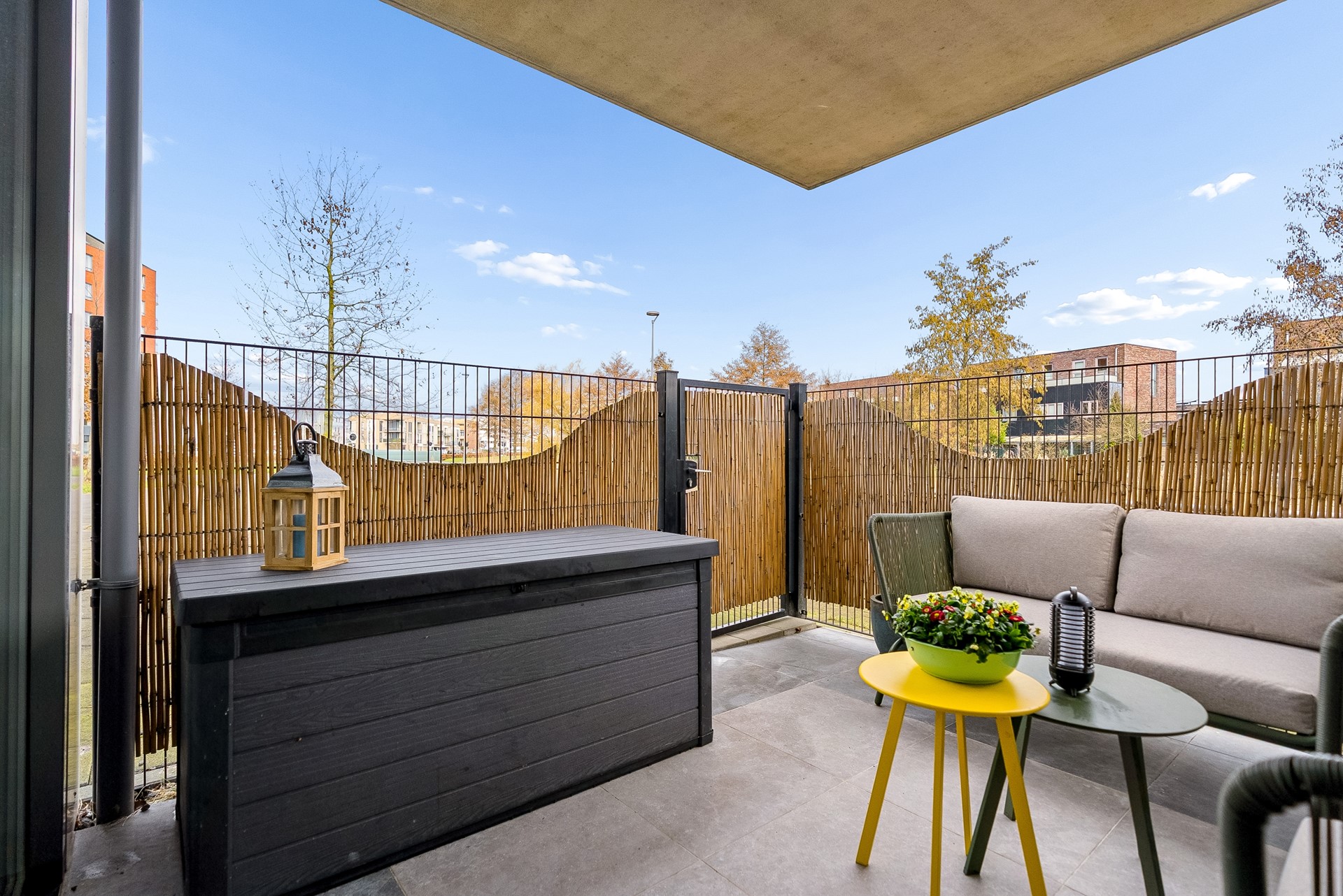Dit appartement biedt naast binnenruimte ook enkele aantrekkelijke buitenvoorzieningen. Zo beschikt het appartement over een eigen terras van ruim 10m2. Dit terras is ruim genoeg voor een leuk zitje. Er is ook een eigen parkeerplek op een afgesloten terrein en een separate berging aanwezig. Ideaal voor het opbergen van bijvoorbeeld fietsen of overige spullen. De berging is vanuit de bouw voorzien van een extra brede deur, perfect voor het naar binnen rijden van een motor of scooter.