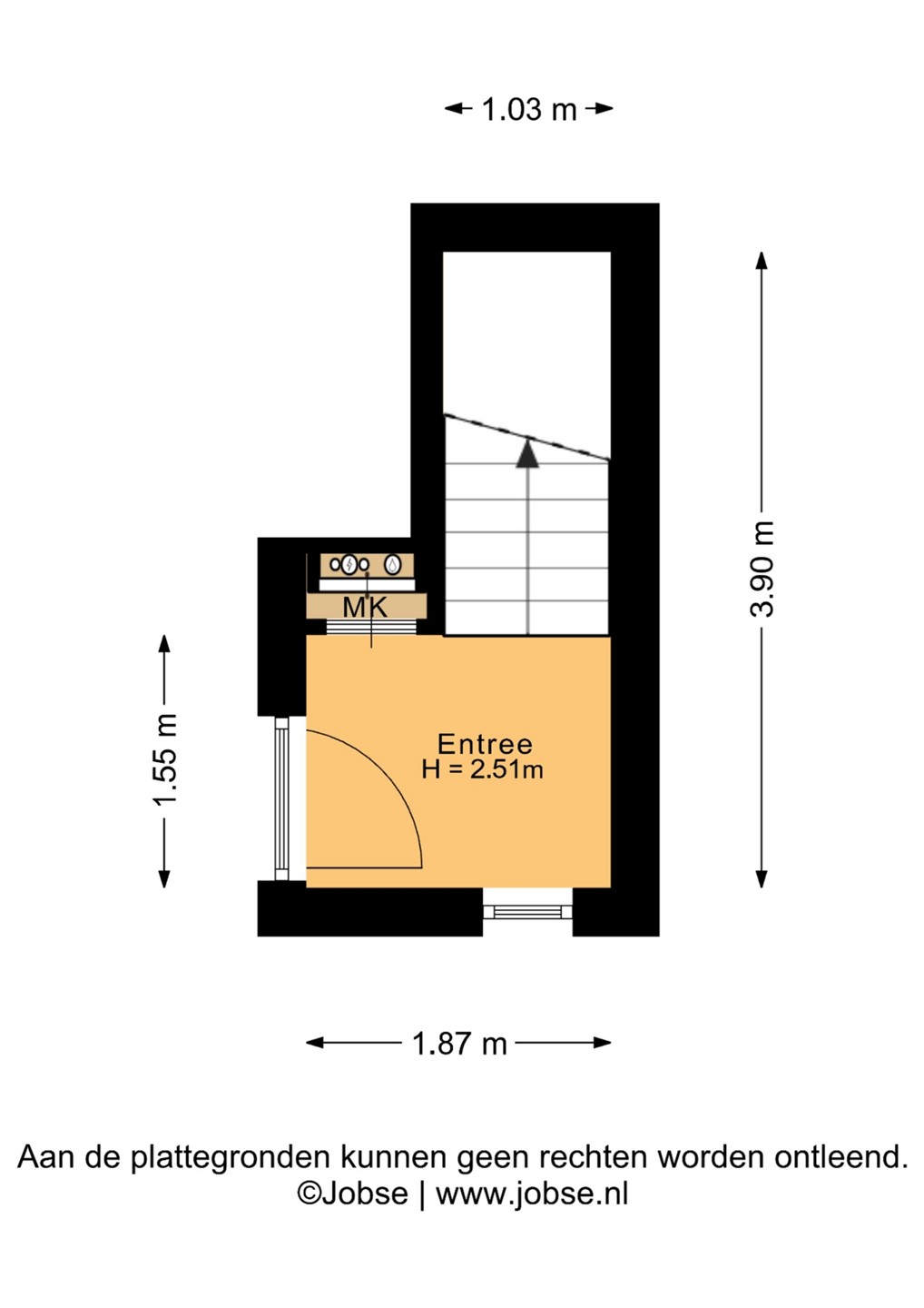 Via de voordeur betreed je de ruime entreehal (plafondhoogte ca. 2.51 m), die fungeert als verzorgde ontvangstruimte van de woning. Direct bij binnenkomst bevindt zich aan de linkerzijde de meterkast (MK), netjes weggewerkt in een compacte nis.