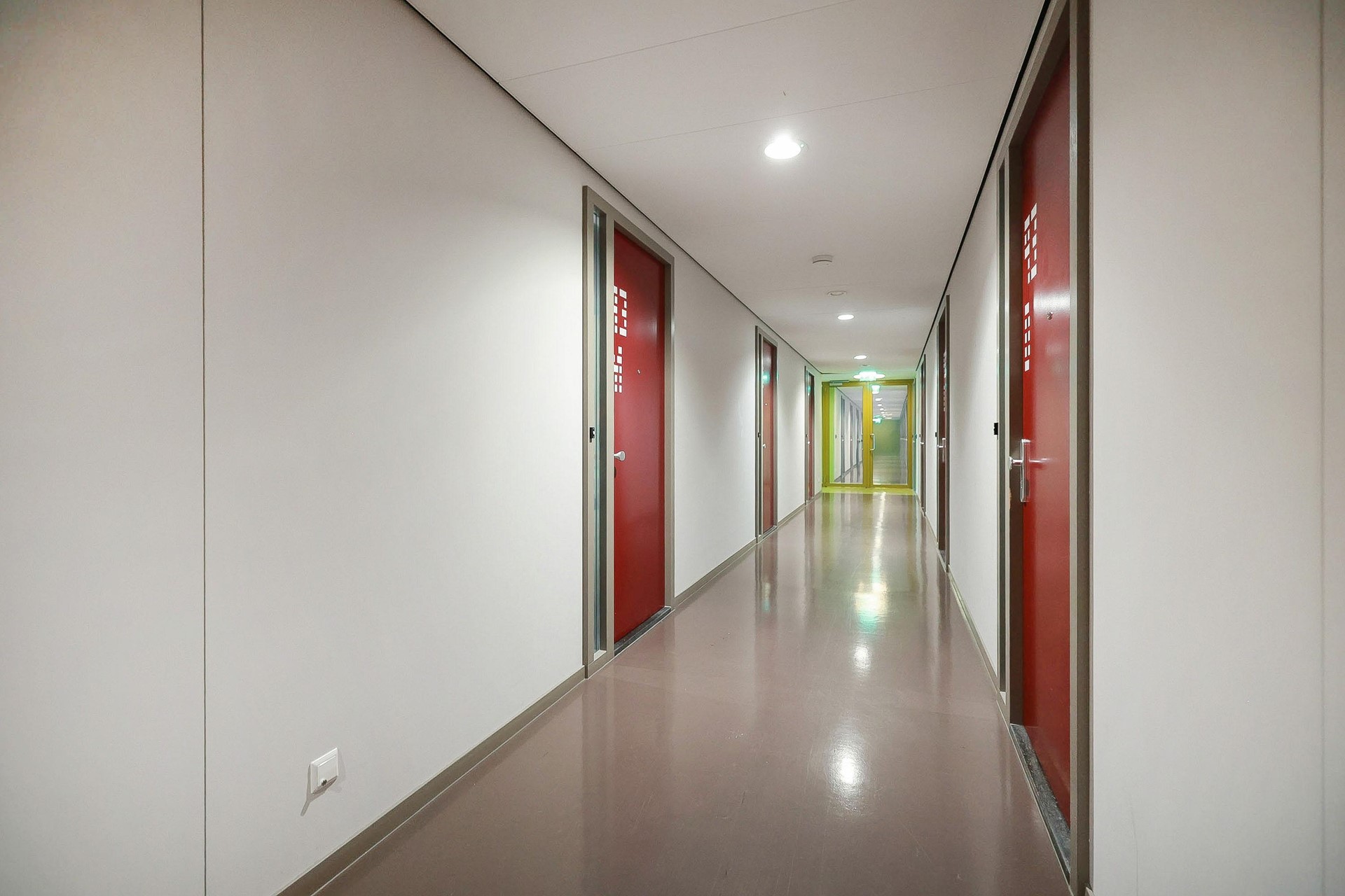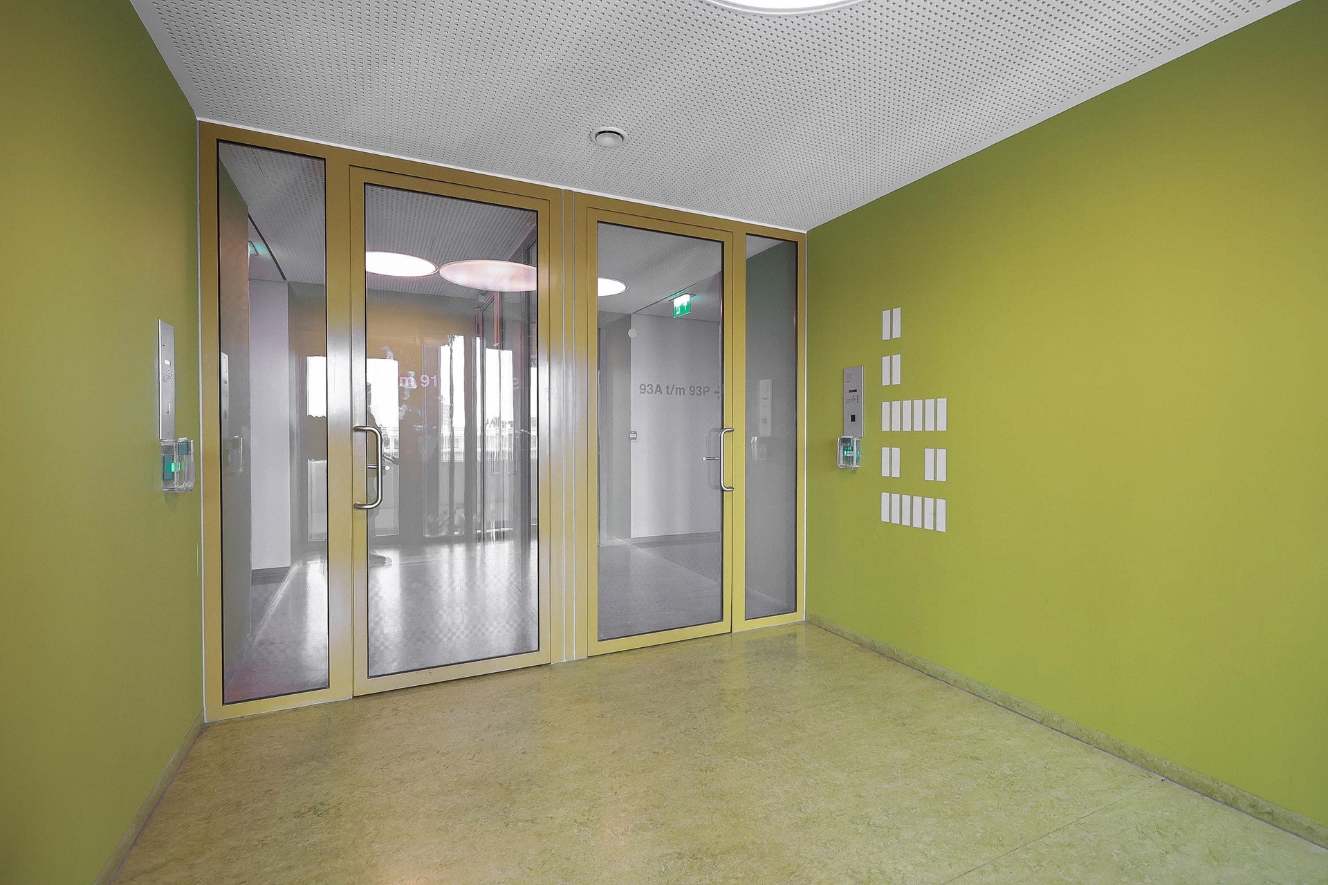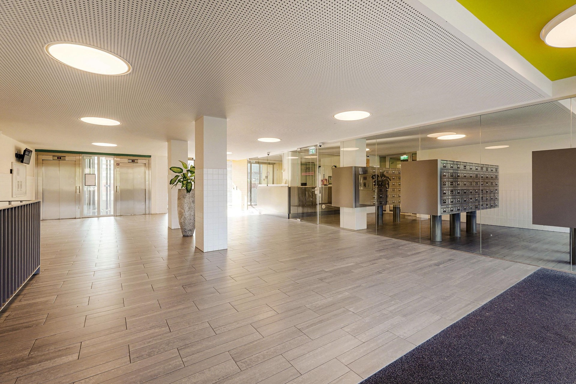 Through the central entrance on the ground floor, you’ll find the mailboxes, stairwell, elevator, and access to the professional Miele laundrette. The studio is located on the eighth floor of the building.