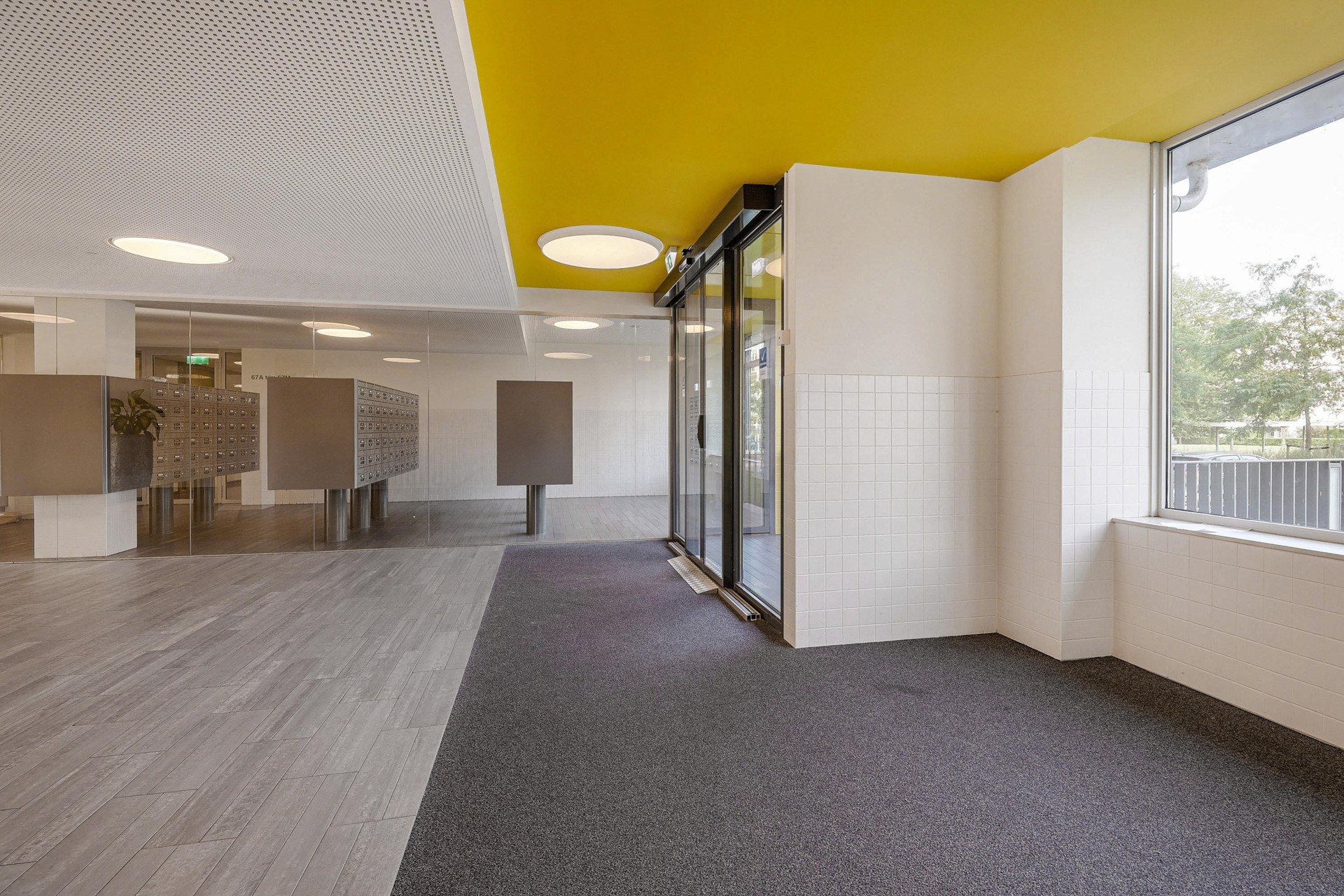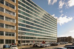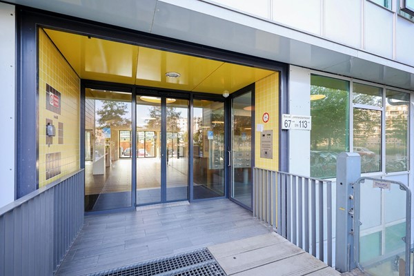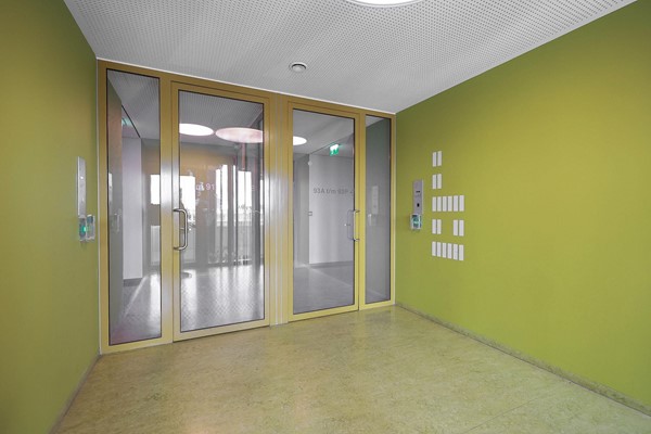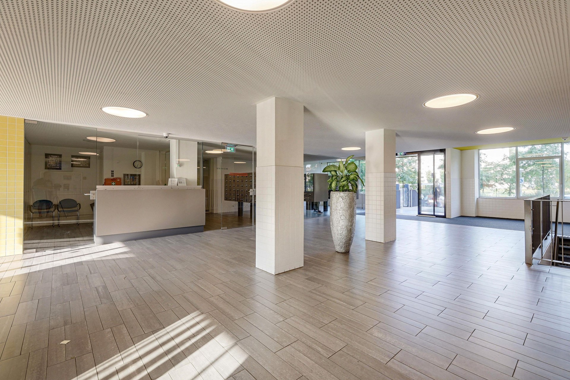 Via de centrale entree op de begane grond heb je toegang tot de brievenbussen, het trappenhuis, de lift en de professionele Miele Launderette. De studio bevindt zich op de achtste verdieping van het gebouw.