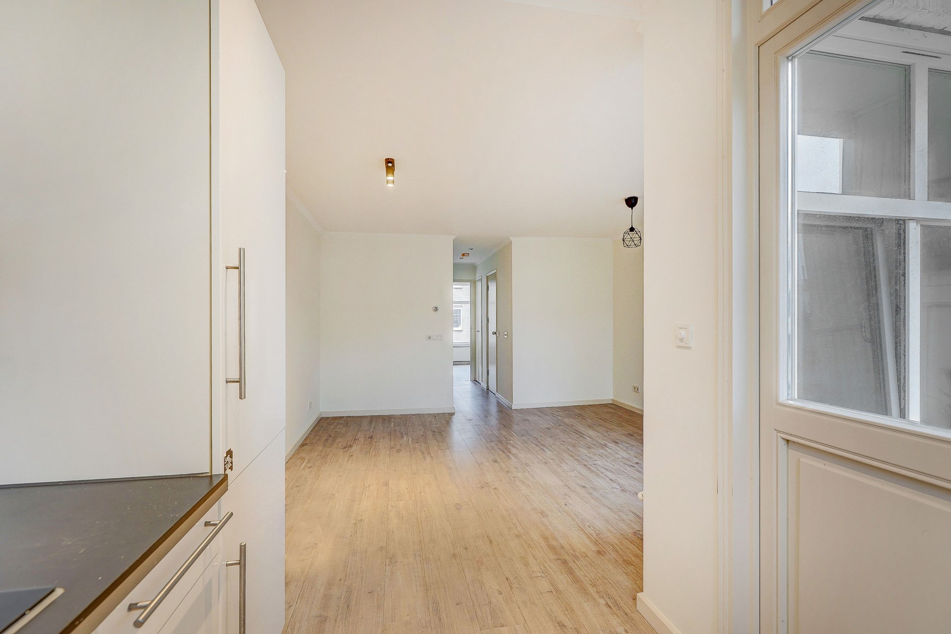 Via het gemeenschappelijke trappenhuis bereik je de entree van het appartement op de tweede verdieping. De hal biedt toegang tot alle vertrekken.