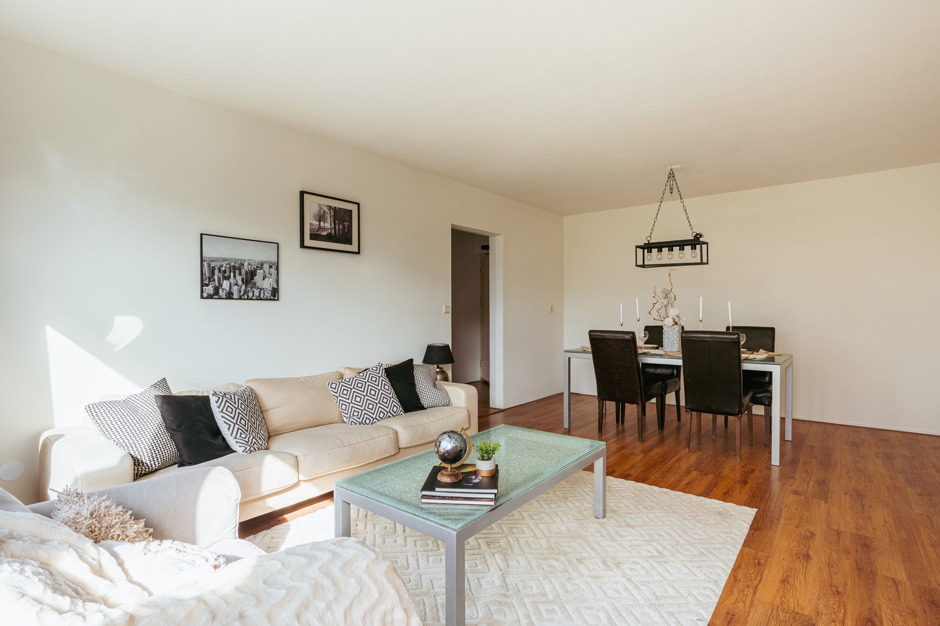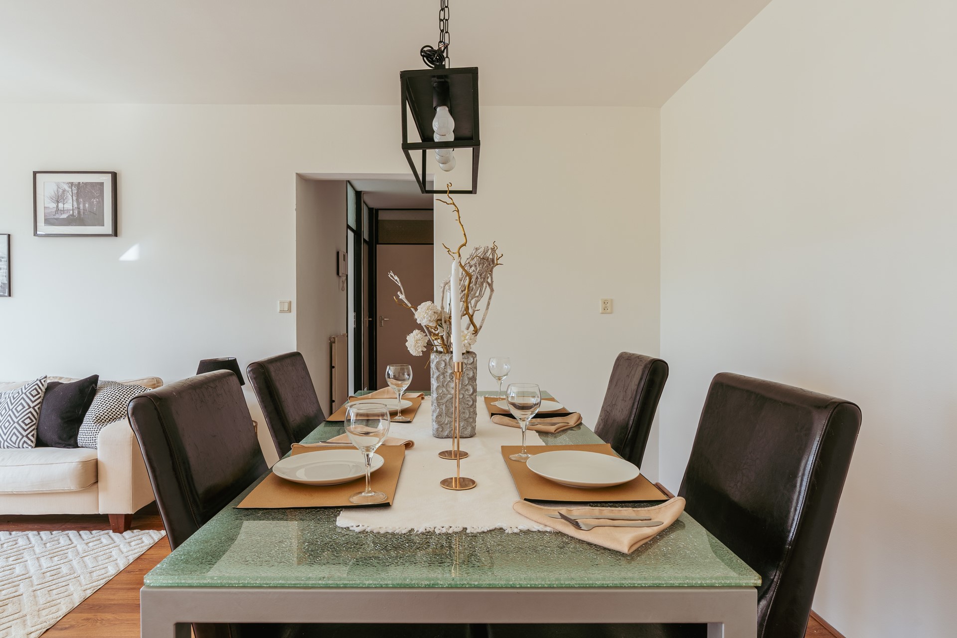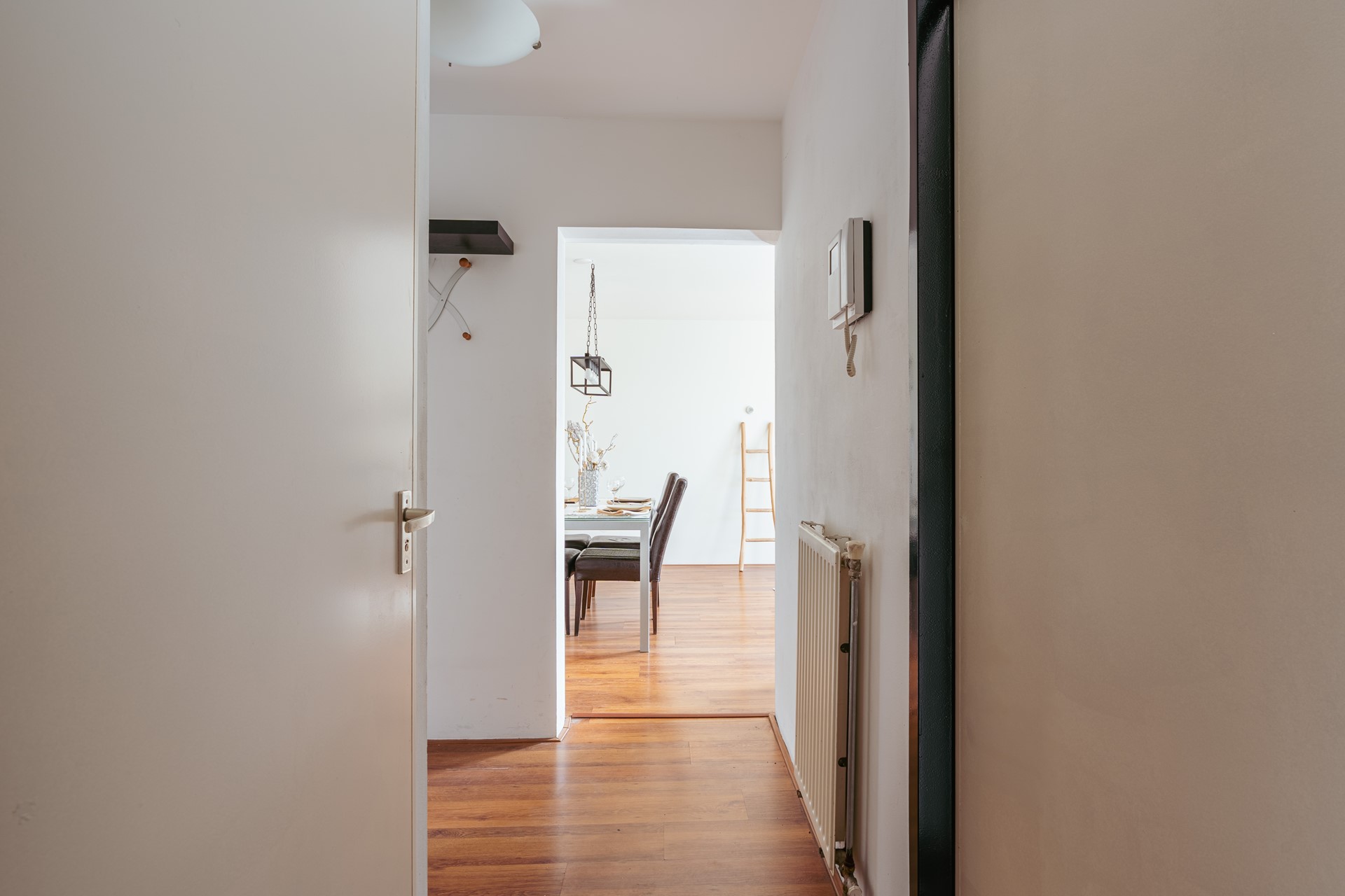 The apartment, situated on the third (top) floor, welcomes you via a central hallway that provides access to all rooms. The bright and airy living room is located on the west side, featuring large windows that flood the space with afternoon and evening sun. Step out directly onto the sunny balcony—the perfect spot to unwind and enjoy the open view.