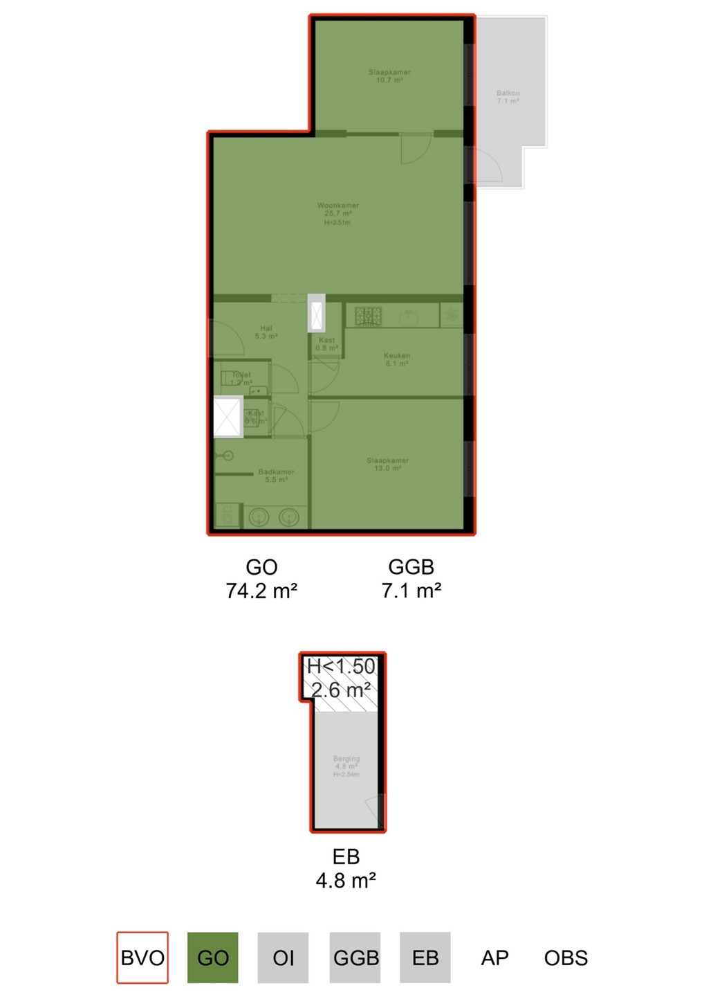 This information has been compiled with due care. However, no rights can be derived from any inaccuracies, omissions, or otherwise, nor from the consequences thereof. All stated measurements and surface areas are indicative only, and VBO terms and conditions apply.