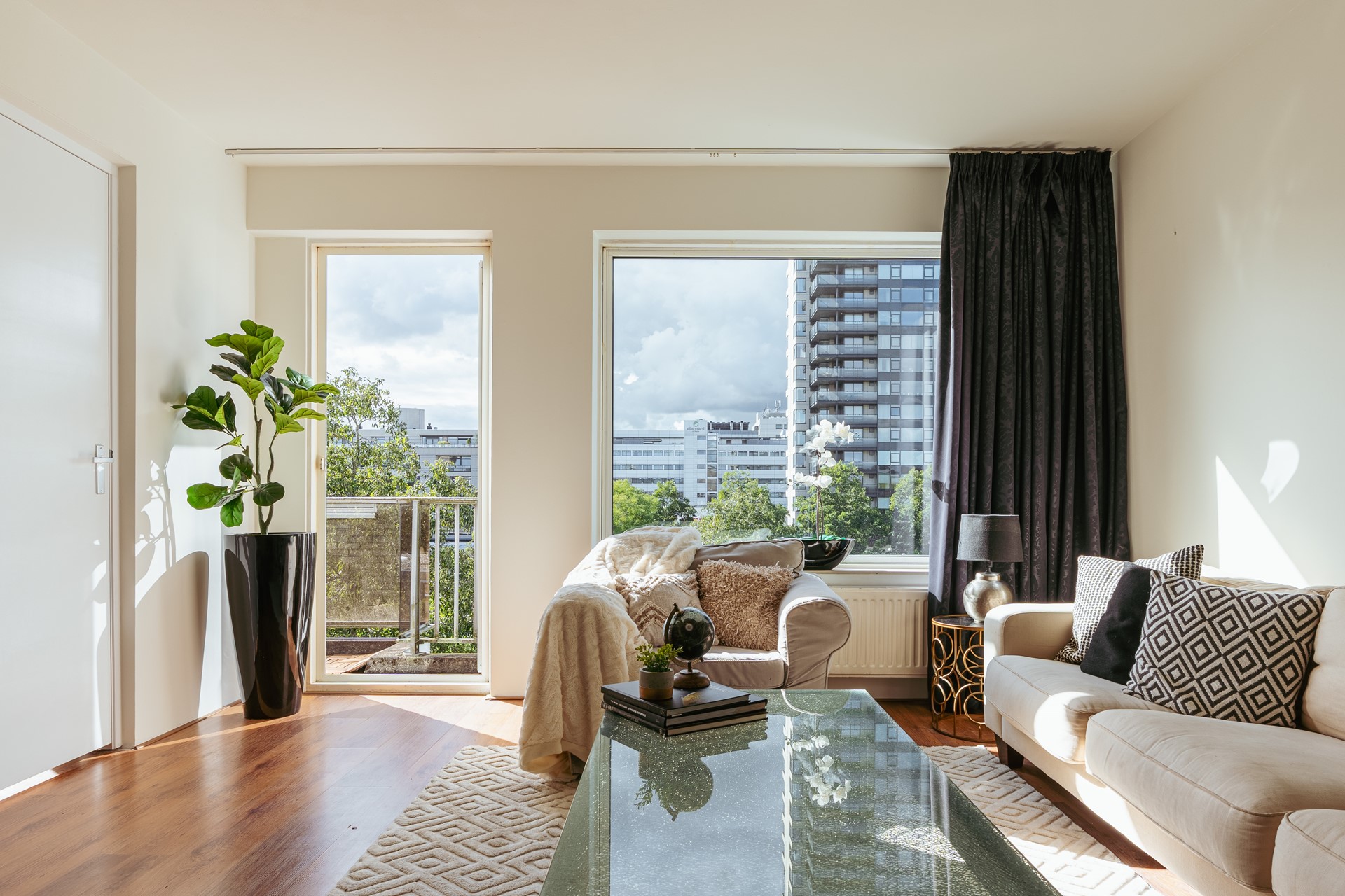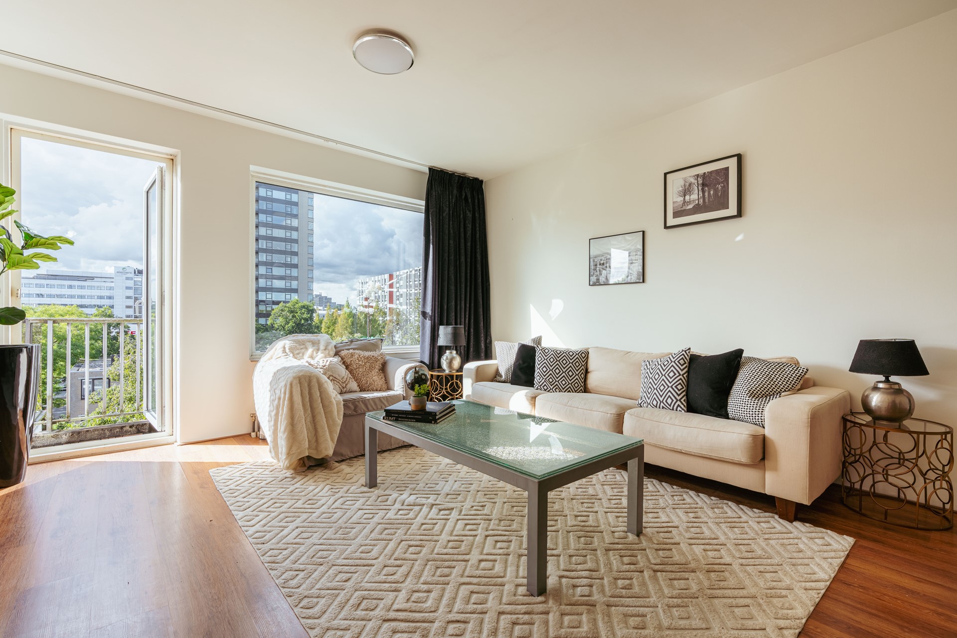 Zeer licht en ruim 3-kamerappartement met zonnig balkon op het westen, op toplocatie in Buitenveldert nabij Zuidas en Gelderlandplein