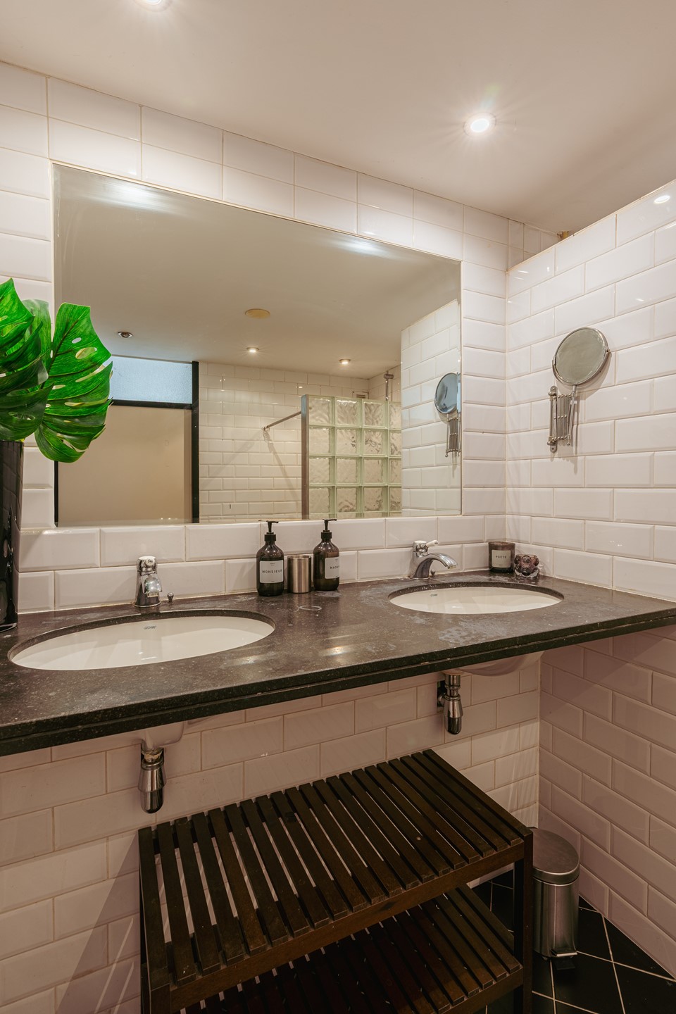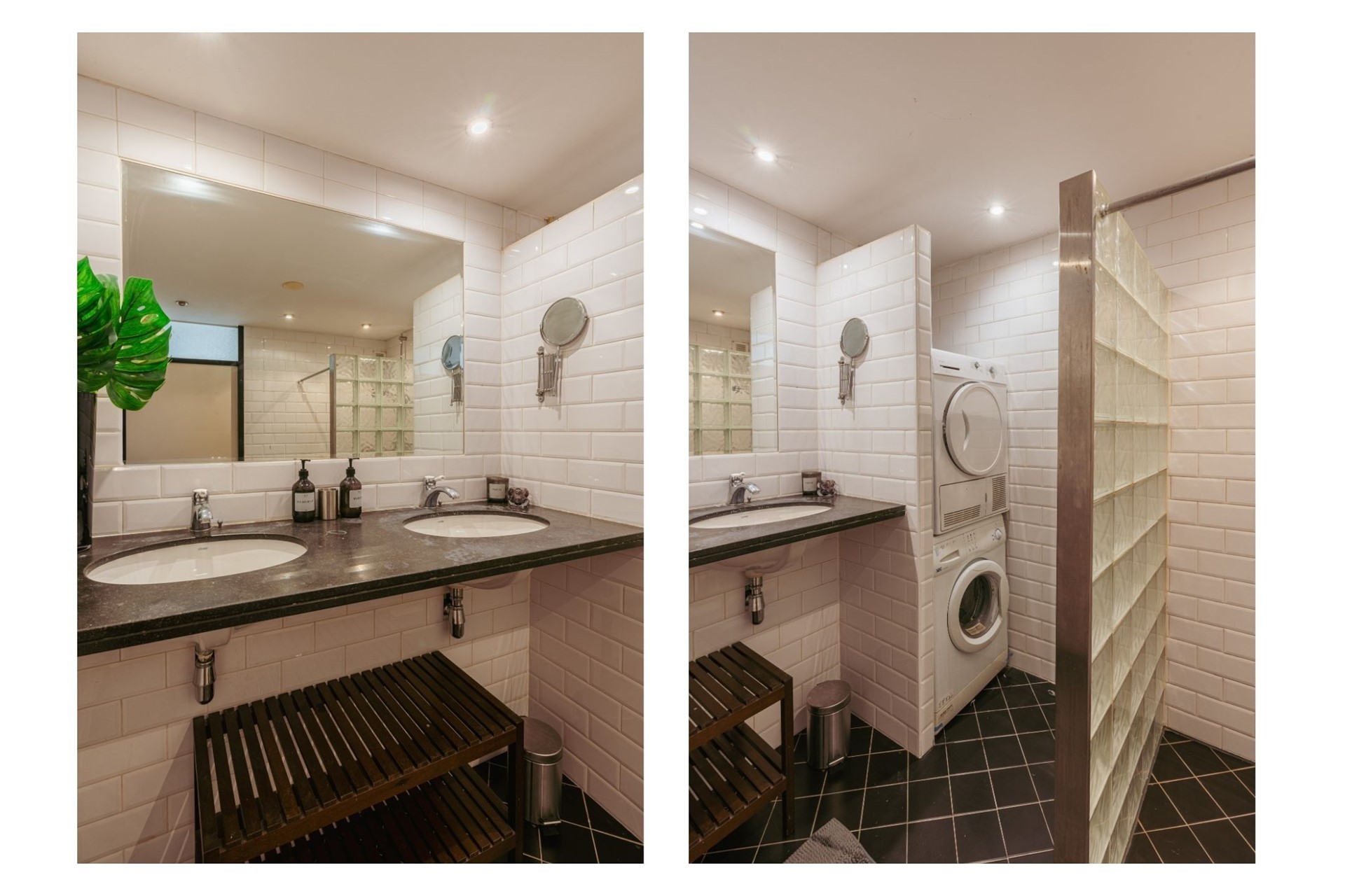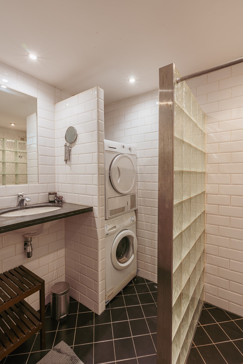 De ruime badkamer beschikt over een inloopdouche, dubbele wastafel en aansluitingen voor wasmachine en droger. Daarnaast is er een separate wc, een meterkast met bergruimte en een royale master bedroom.