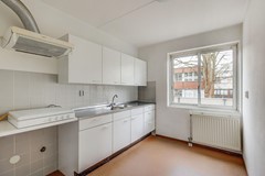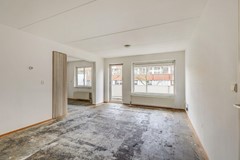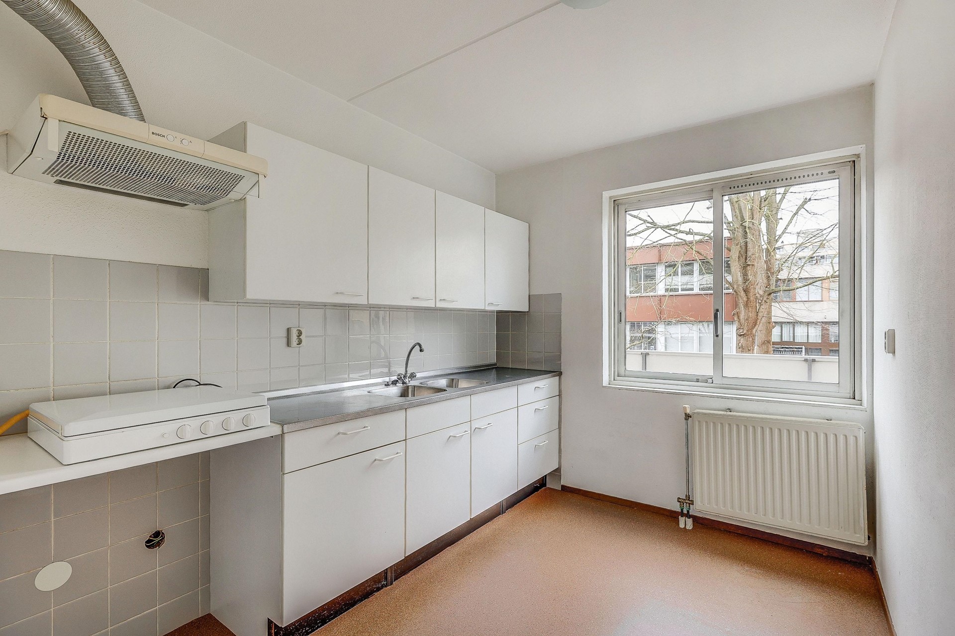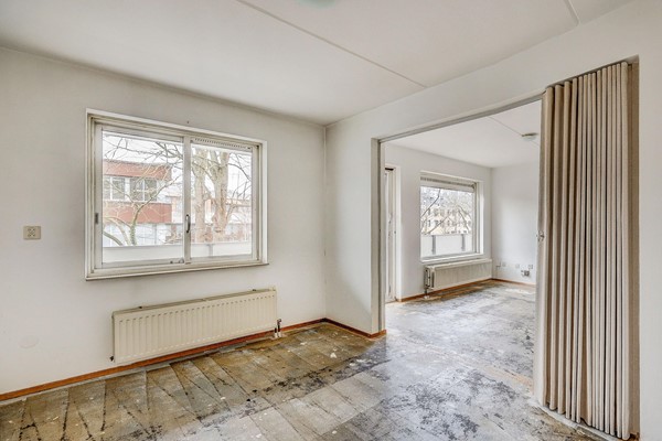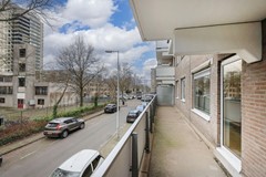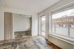 De woonkamer is licht en ruim, met grote ramen die zorgen voor een prettige hoeveelheid daglicht en een vrij uitzicht over de straat. Vanuit de woonkamer bereikt u direct het balkon.