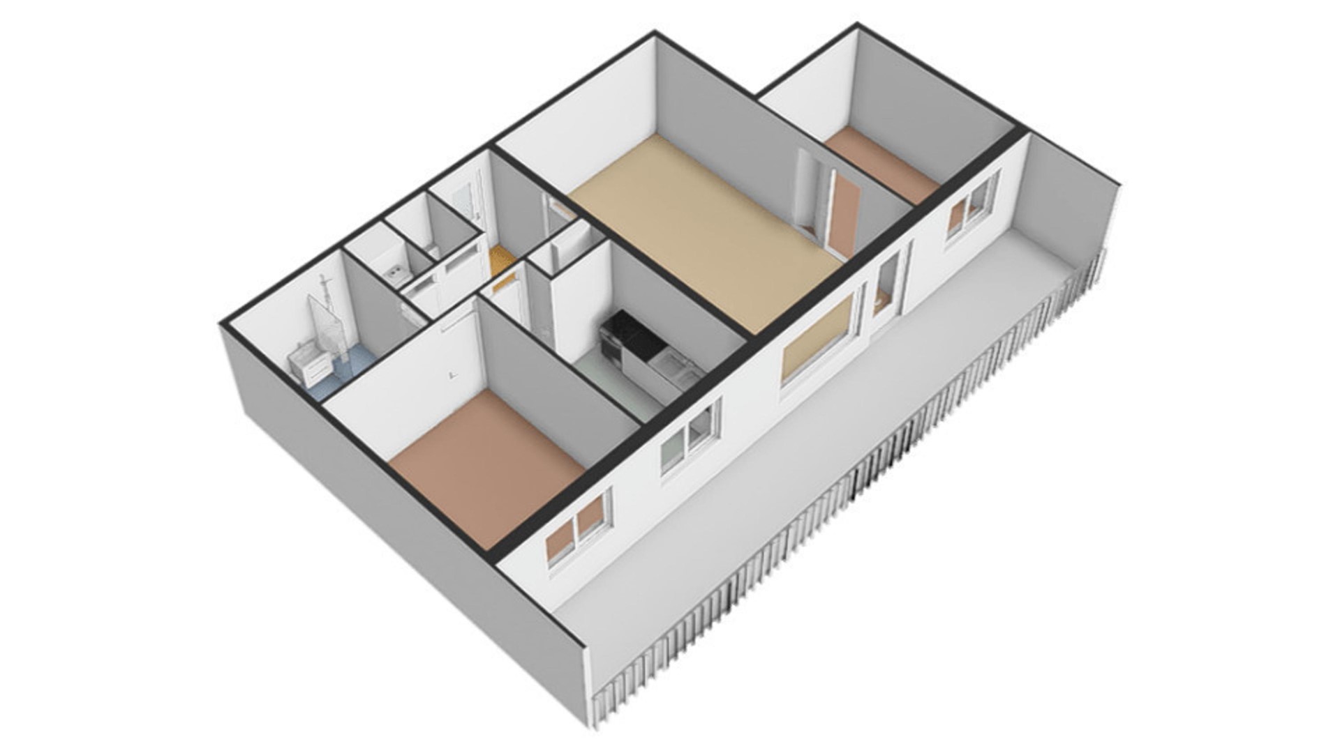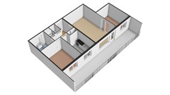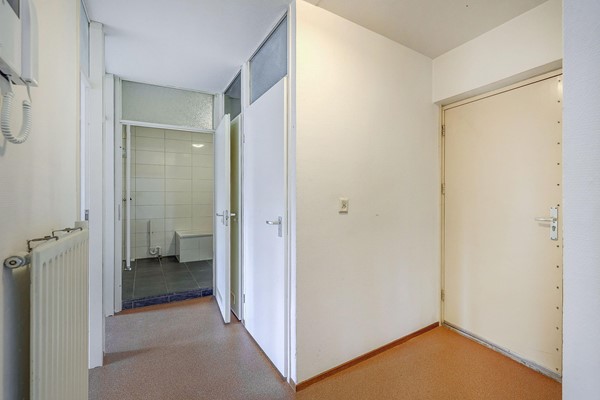 Het appartement beschikt over twee ruime slaapkamers. De eerste slaapkamer grenst aan de woonkamer en is te bereiken via een schuifdeur. De tweede slaapkamer ligt aan het einde van de hal, wat zorgt voor extra privacy.