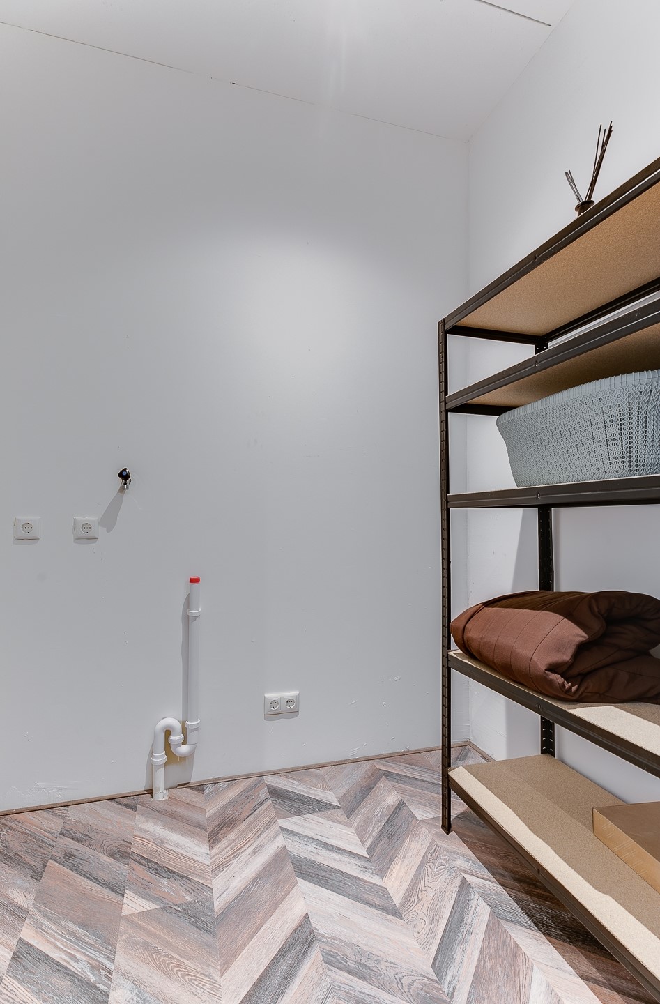 12e verdieping: eigen entree. Ruime hal met meterkast en kast met stadsverwarmingsunit. Royale inpandige berging met opstelling voor wasmachine en droger. Vanuit de gang toegang tot de luxe en moderne badkamer met ligbad, dubbele wastafel, inloopdouche met regendouche, tweede toilet, elektrische handdoek radiator en vloerverwarming. Separaat gastentoilet met fontein en ventilatie.