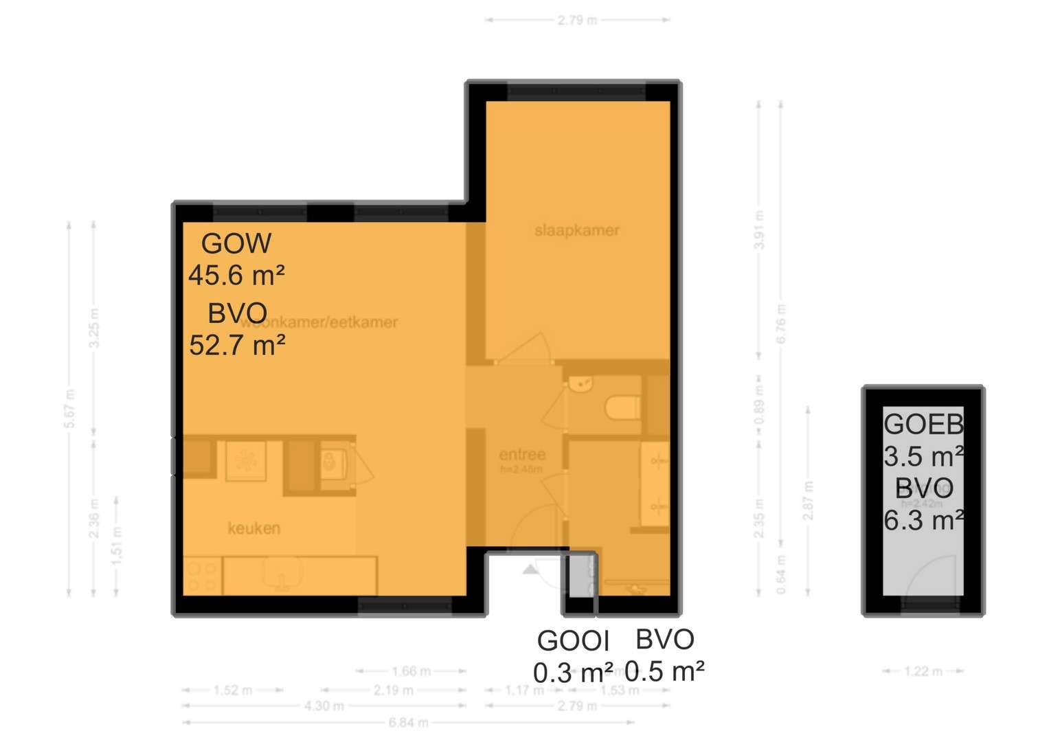Woonoppervlakte 45,6 m²