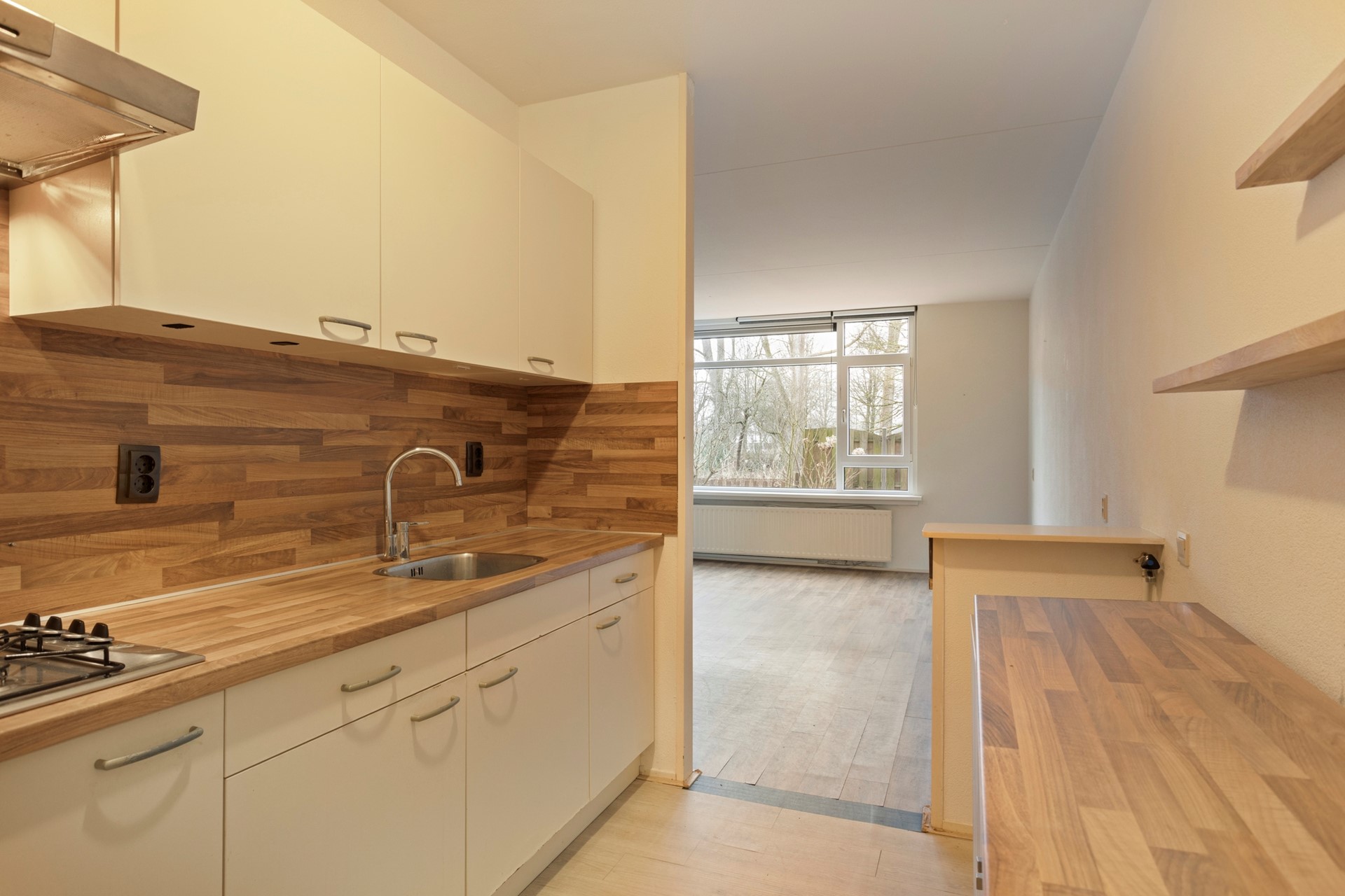 Lichte woonkamer met half open keuken