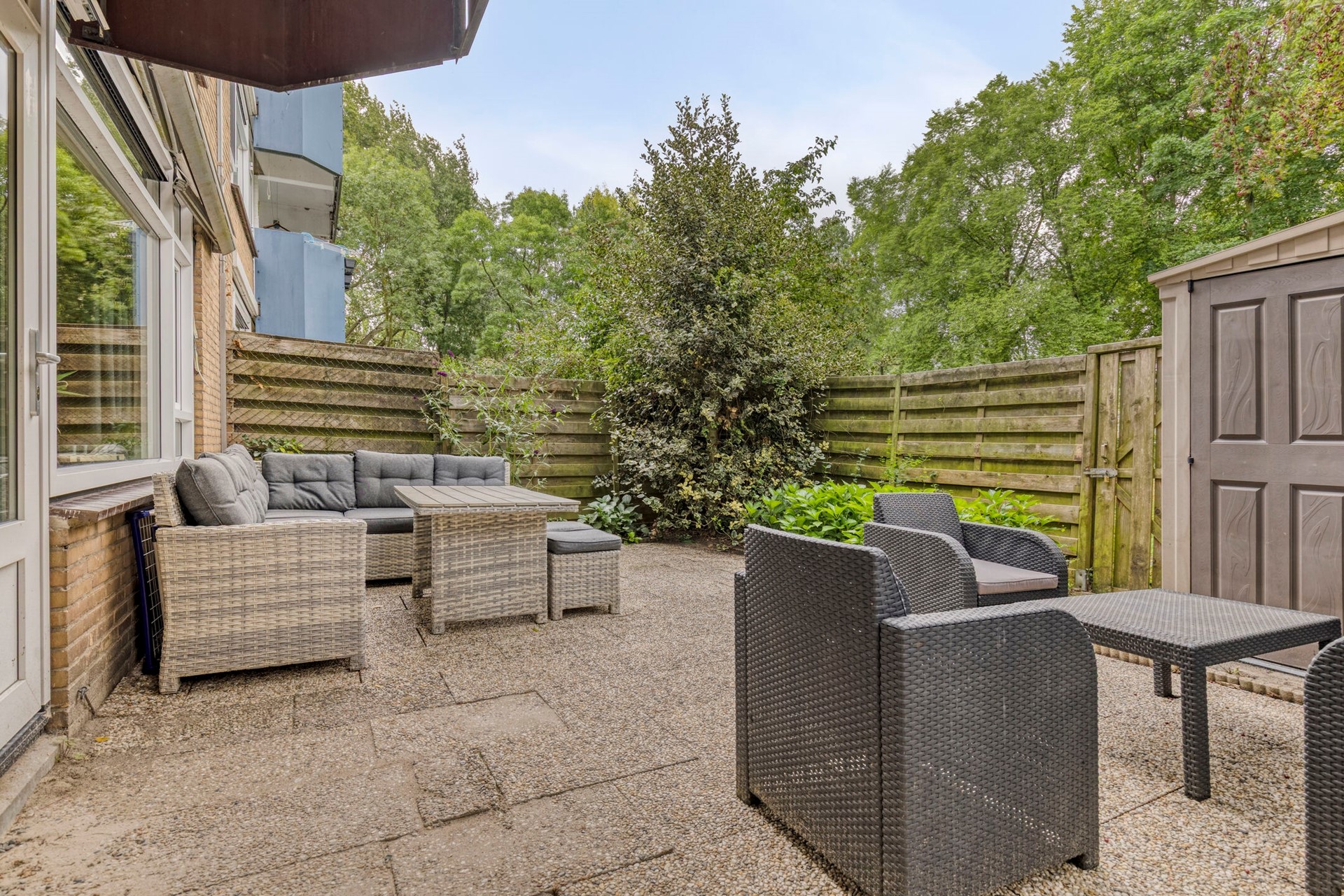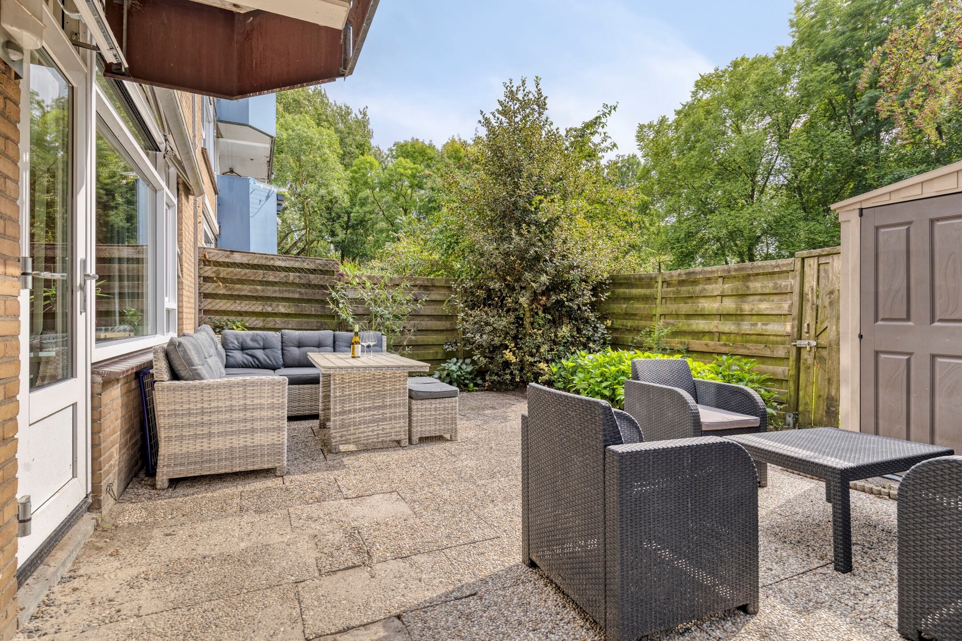 De zonnige tuin is liefst 50 m2 groot en ligt op het zuiden. De tuin is meer dan groot genoeg voor een ruime lounge-set waar je heerlijke zomeravonden kunt hebben met een glaasje wijn of een barbecue. Er is zelfs een elektrisch zonnescherm aanwezig!