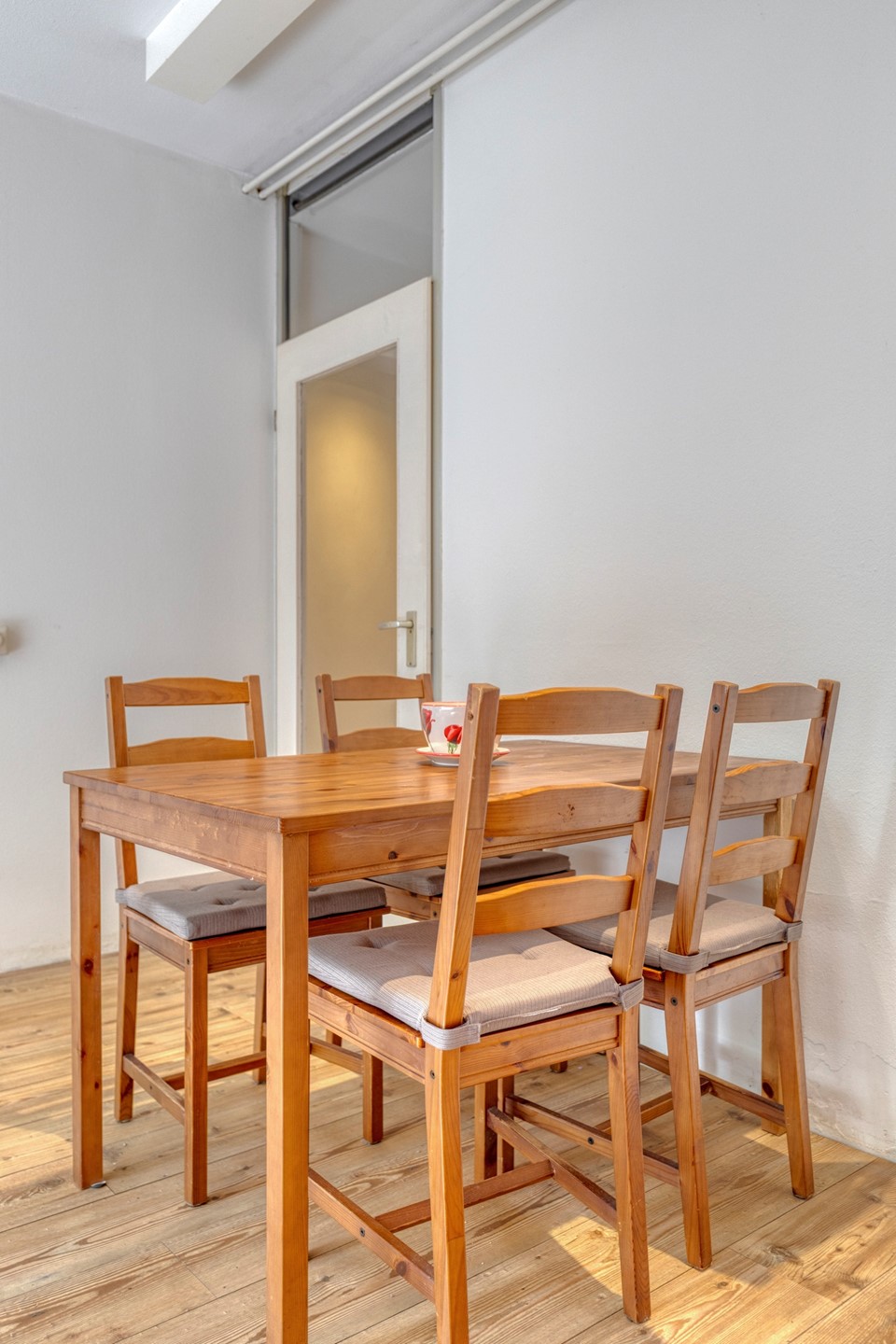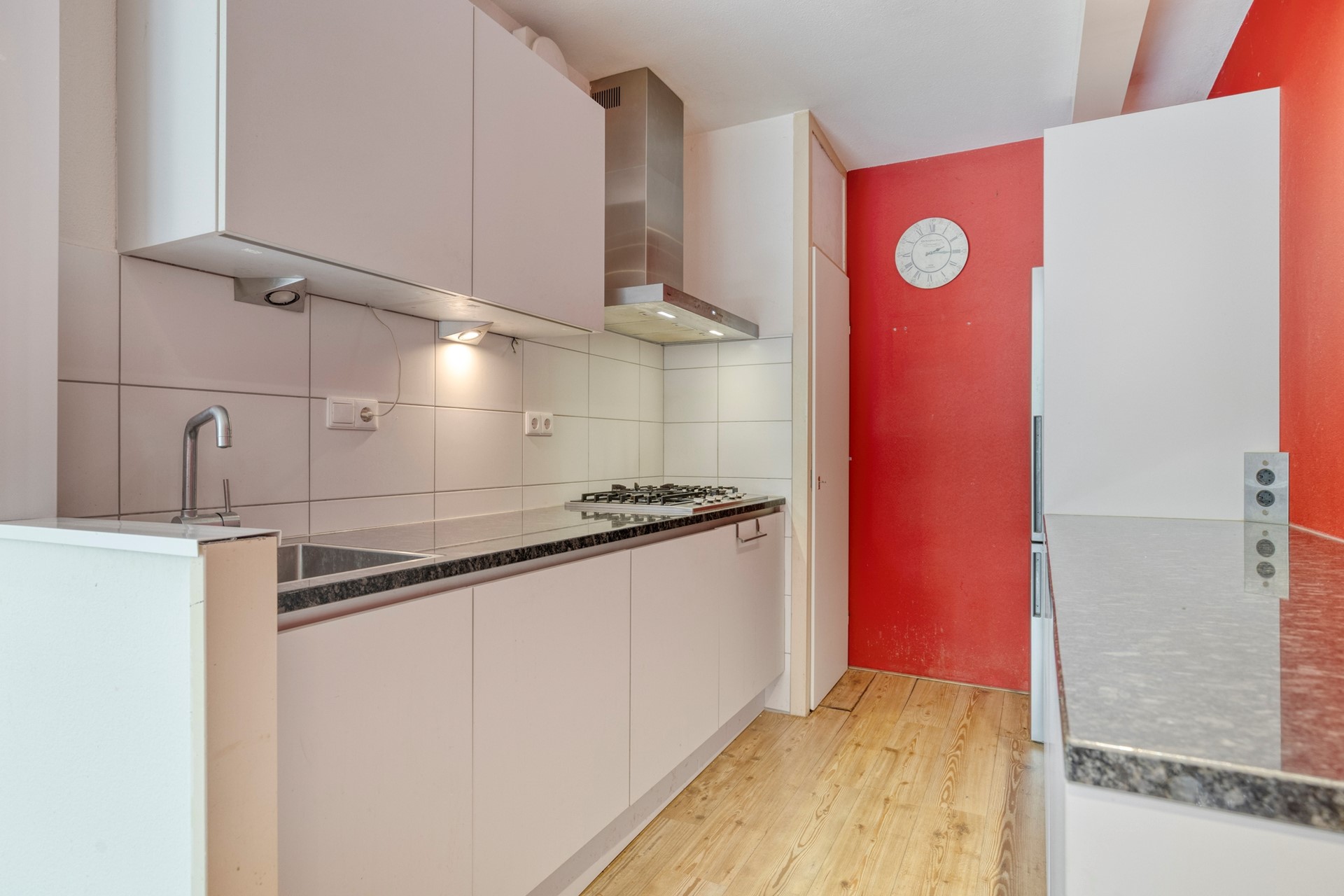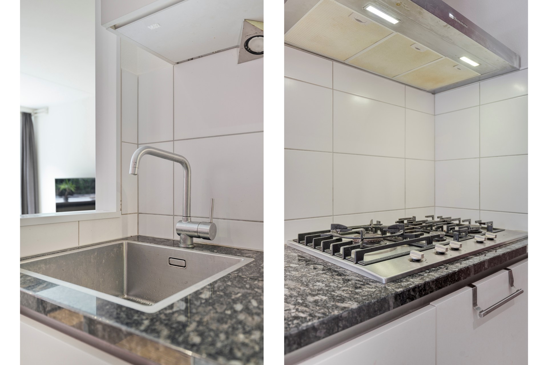 De ruime woonkamer is voorzien van grote raampartijen en een deur die toegang geeft tot de heerlijke achtertuin. Er is hier voldoende ruimte voor een grote hoekbank en een eettafel voor 4 personen. De hoogwaardige keuken is slim in de diepte geplaatst en biedt voldoende opbergruimtes met een grote apothekerskast en diepe lades. De granieten tafelbladen bieden veel werkruimte om heerlijke maaltijden te bereiden. De keuken is onder andere voorzien van een vaatwasser en een groot 5-pits gasstel. Achter de keuken is nog een provisiekast geplaatst.