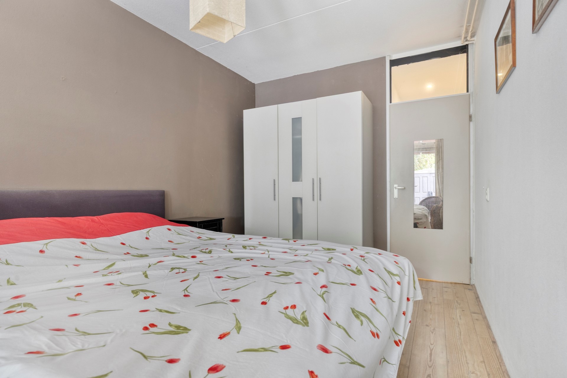 De slaapkamer bevindt zich aan de achterzijde met uitzicht op de prachtige tuin die je ook vanuit deze ruimte kunt bereiken. Er is hier voldoende kastruimte en je kunt vrij om het tweepersoonsbed heen bewegen.