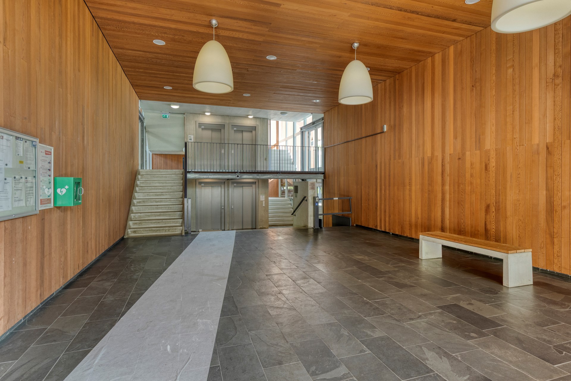 De woning bevindt zich op de vierde verdieping van het gebouw De Zilverreiger, gelegen in een rustige en zeer groene omgeving. Via de ruime en verzorgde entree met bellentableau en brievenbussen bereikt u het appartement via een van de twee liften of de trap.