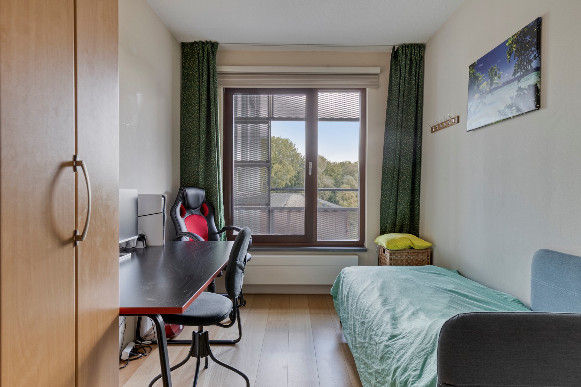 Het appartement heeft maar liefst 4 ruime slaapkamers. Aan de voorzijde treft u de master bedroom van ca 15,5 m2. Het is voorzien van dezelfde prachtige glazen gevel van vloer tot plafond wat de ruimte een loft gevoel geeft. Naast de keuken zit nog een ruimte die nu fungeert als kantoor. De tweede (slaap)kamer van ca 14m2 kan uiteraard naar ieders wens worden ingericht en functioneert eveneens perfect als riante werkkamer of zelfs fitnessruimte. Aan de entree zijde bevinden zich nog twee slaapkamers van respectievelijk ca 18,5m2 en 11m2