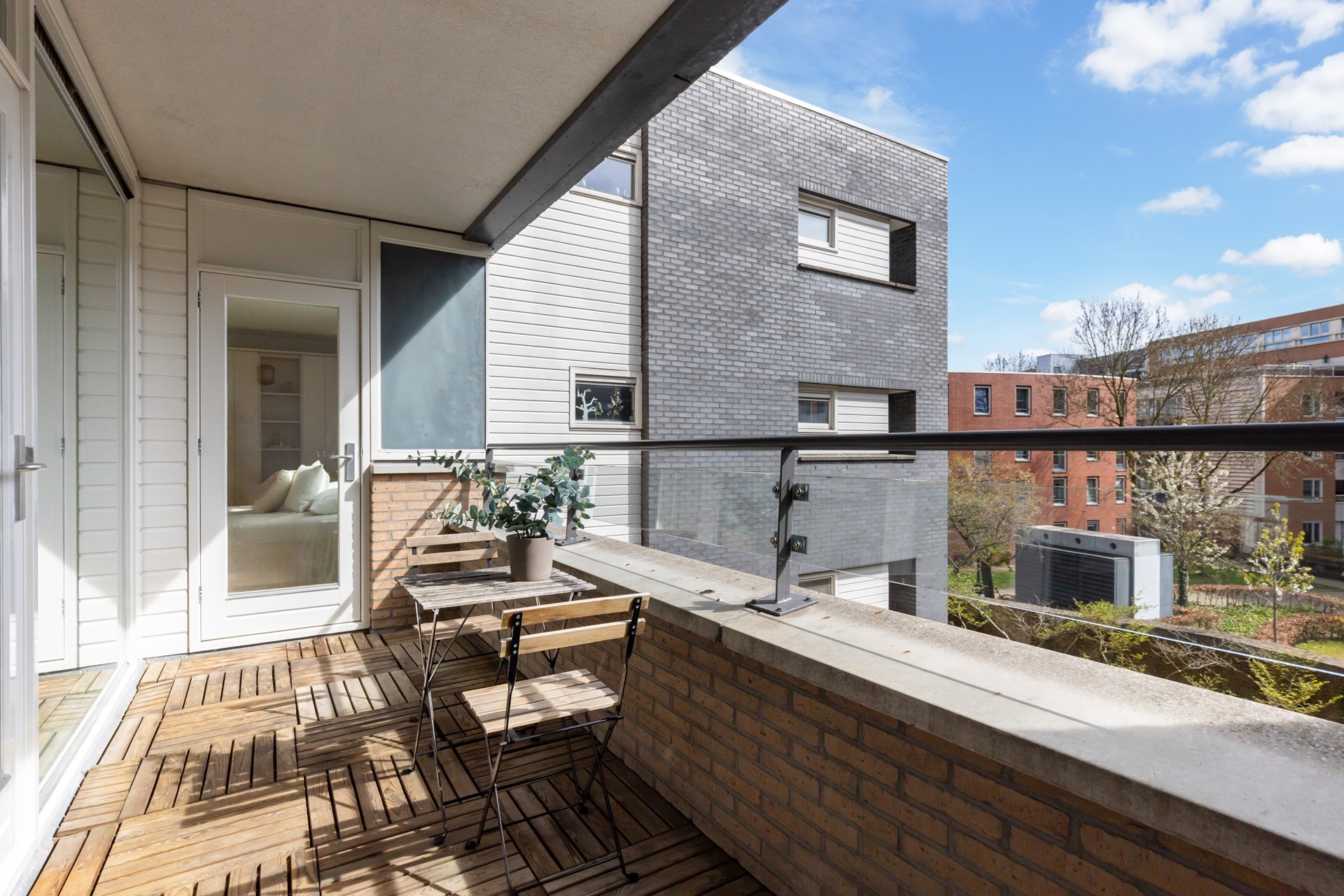 - Zonnig balkon aan de achterkant uitkijkend op het groen