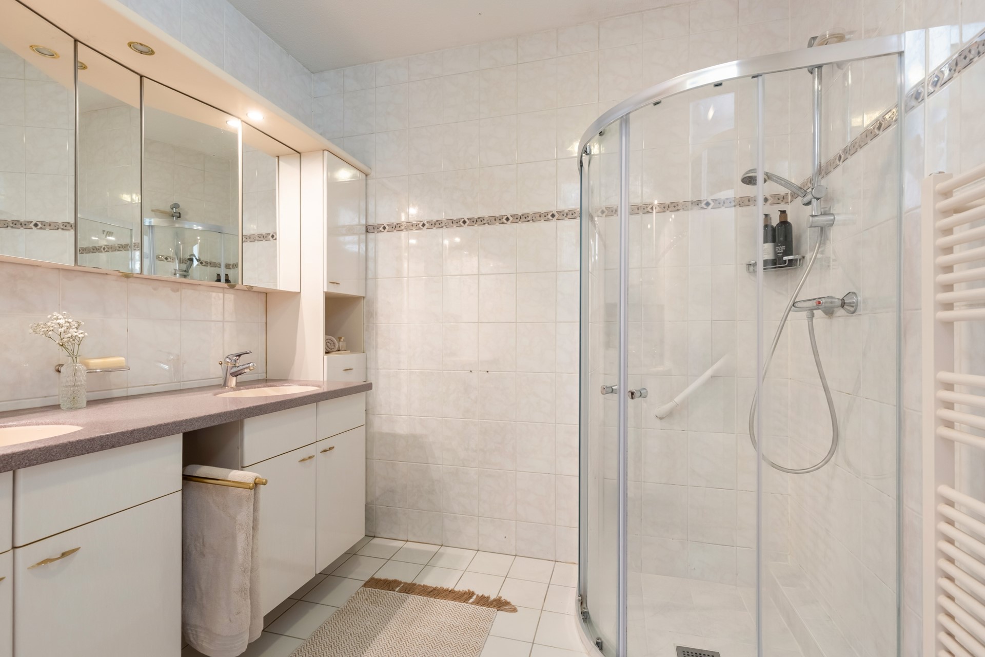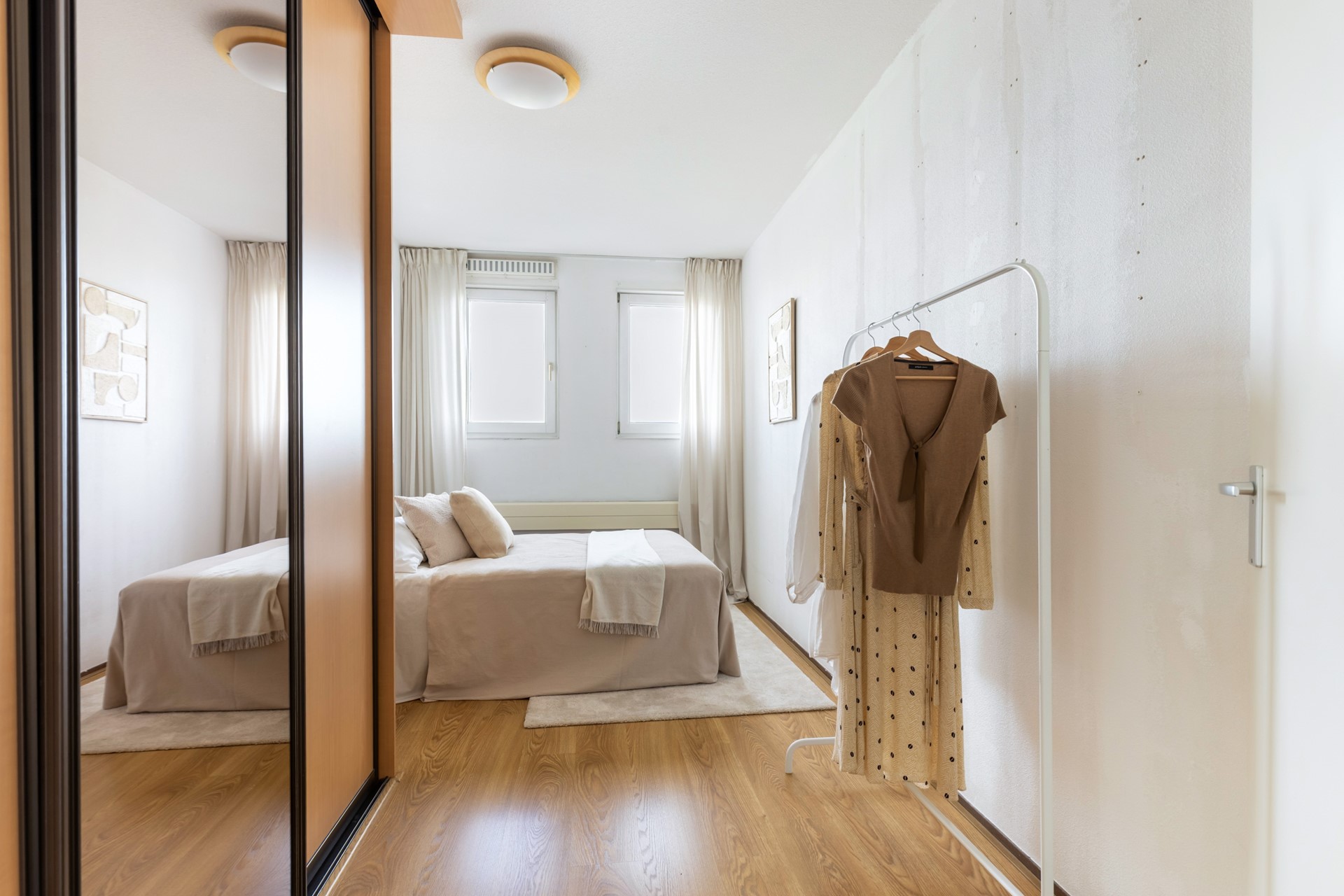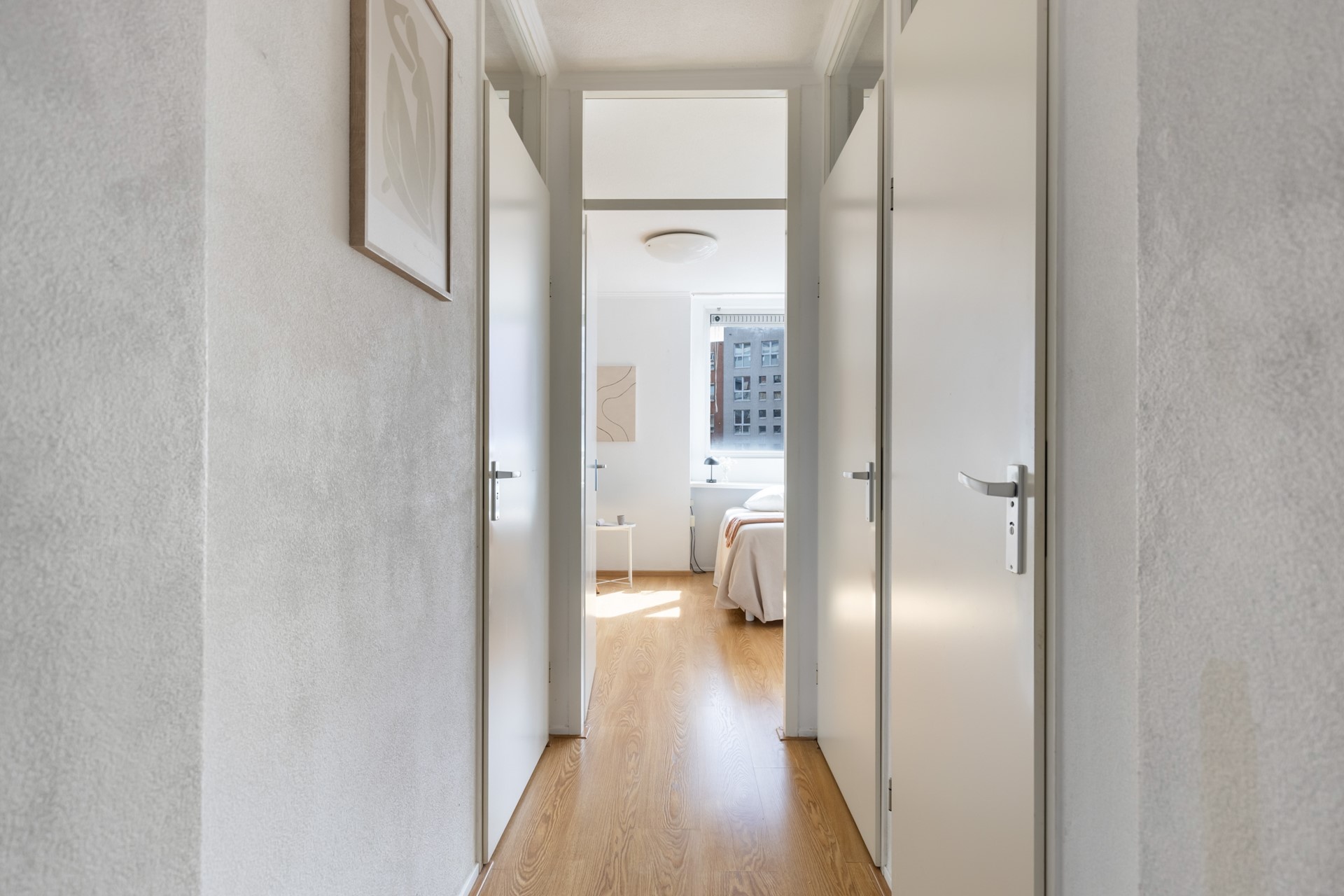 Entree met videofooninstallatie en toegang naar alle slaapkamers en de badkamer. De masterbedroom bevindt zich aan de achterzijde en biedt ruimte aan een tweepersoonsbed en twee riante garderobekasten. Deze slaapkamer geeft ook toegang tot het balkon. De badkamer is voorzien van een douchegelegenheid en een wastafel met meubel. Aan de overkant van de badkamer bevindt zich de technische ruimte waar de aansluiting voor de wasmachine en droger zich bevinden, evenals de mechanische ventilatie. De WC is apart.