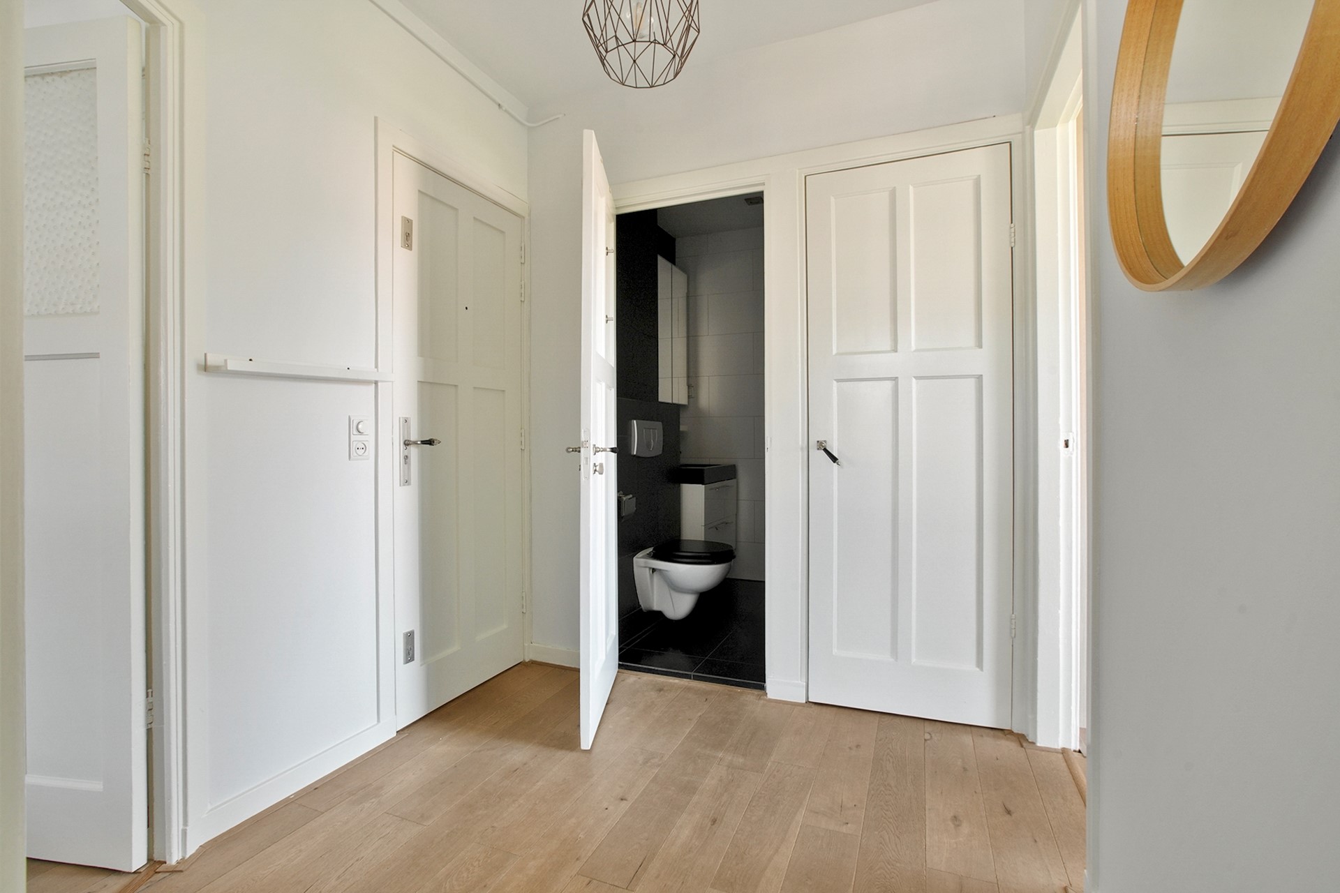 The entire floor is finished with a beautiful wooden laminated parquet floor, creating a warm and tranquil ambiance.