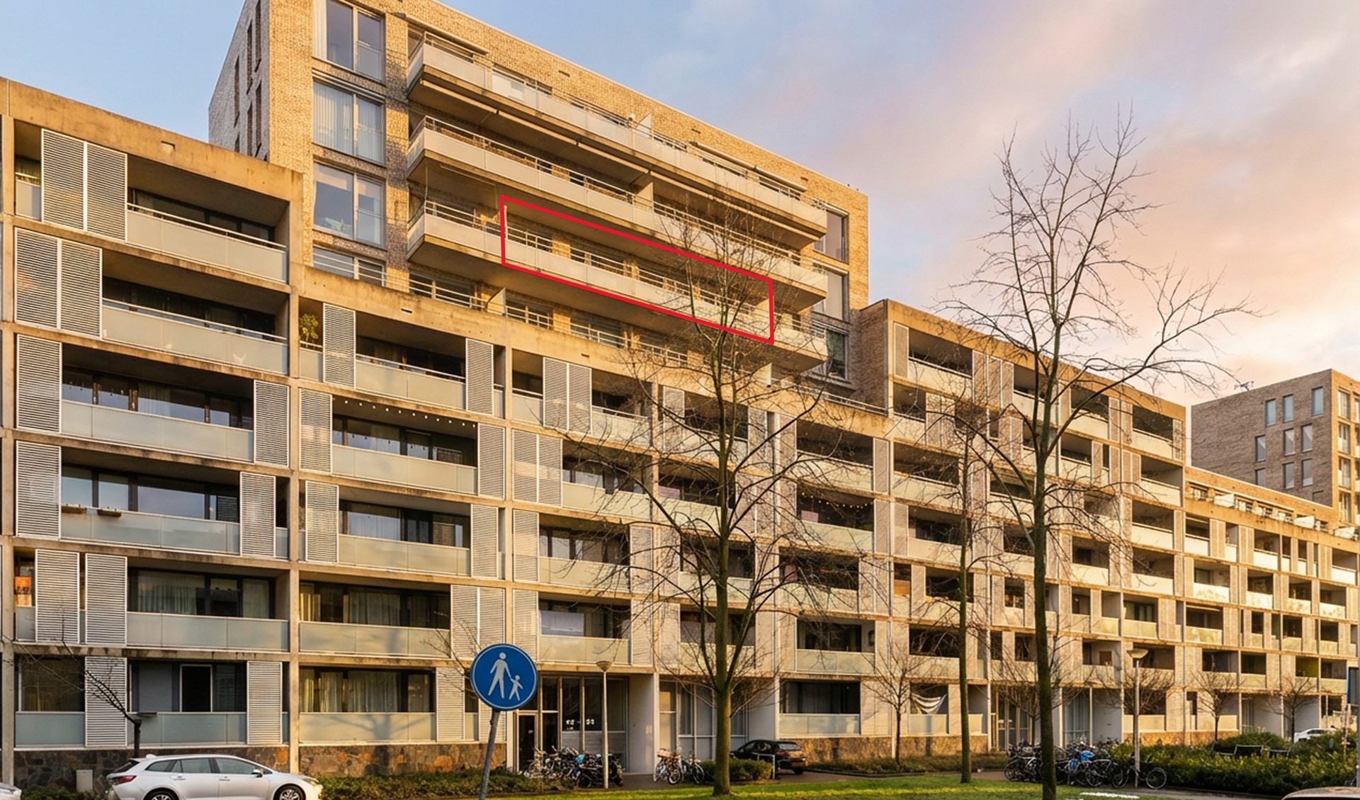 Via de gezamenlijke entree bereik je met de lift de vijfde verdieping. De berging en parkeerplaats bevinden zich op de begane grond.