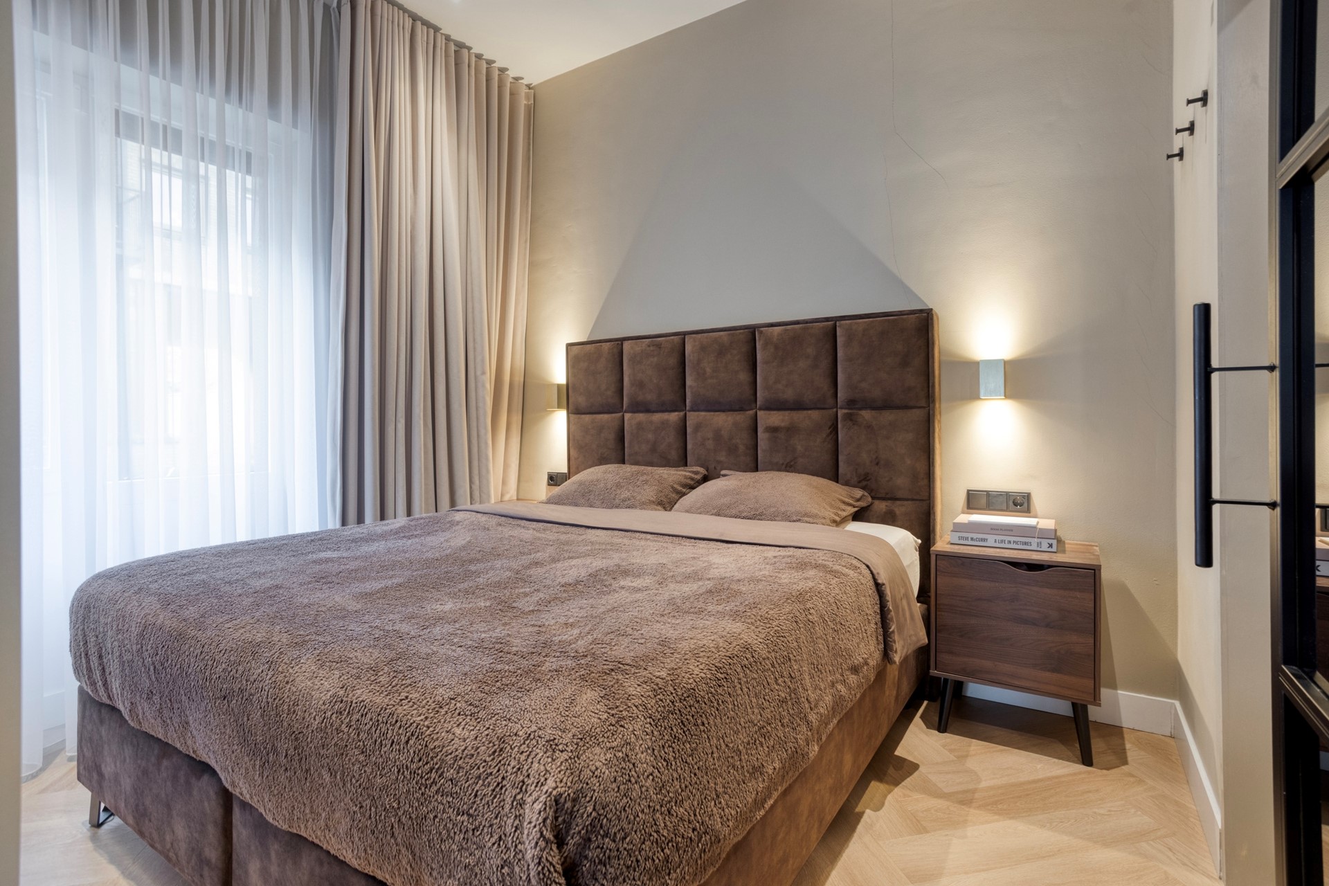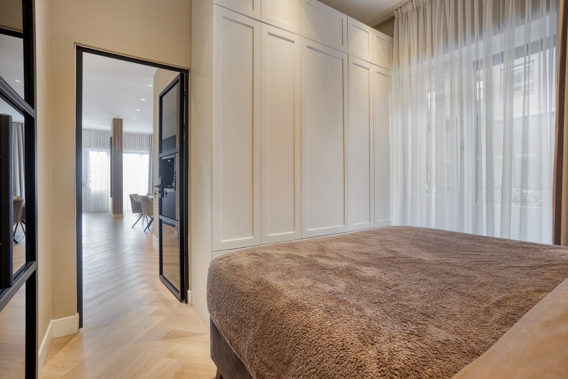 De hoofdslaapkamer grenst aan de badkamer met inloopdouche en wastafelmeubel. De tweede kamer is ideaal als werk-, logeer- of kinderkamer. Beide kamers zijn voorzien van vloerverwarming en hebben een rustige afwerking.