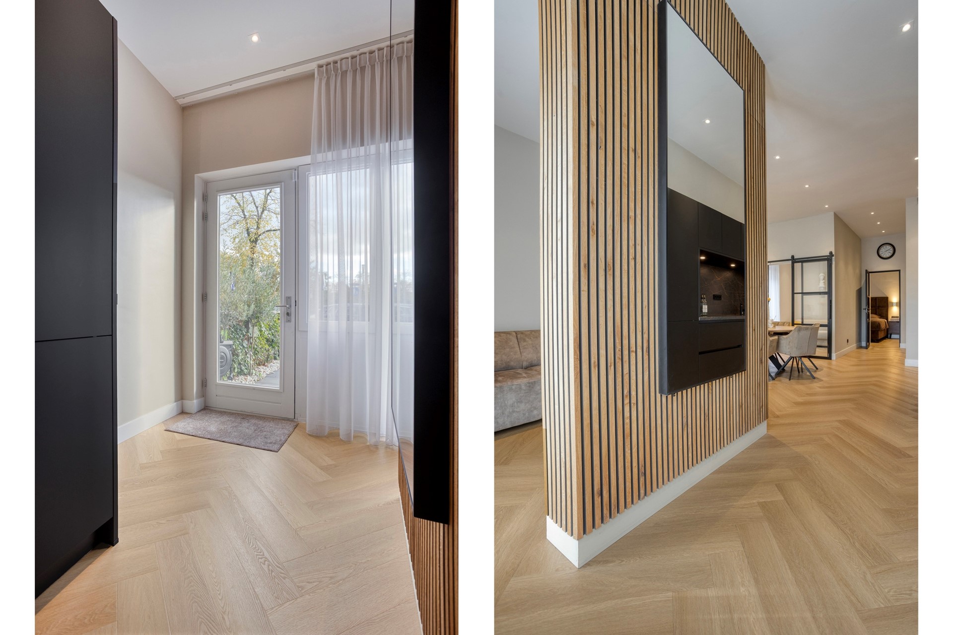 - PVC-visgraatvloer met vloerverwarming (onderhoudsarm en drempelloos gelegd)