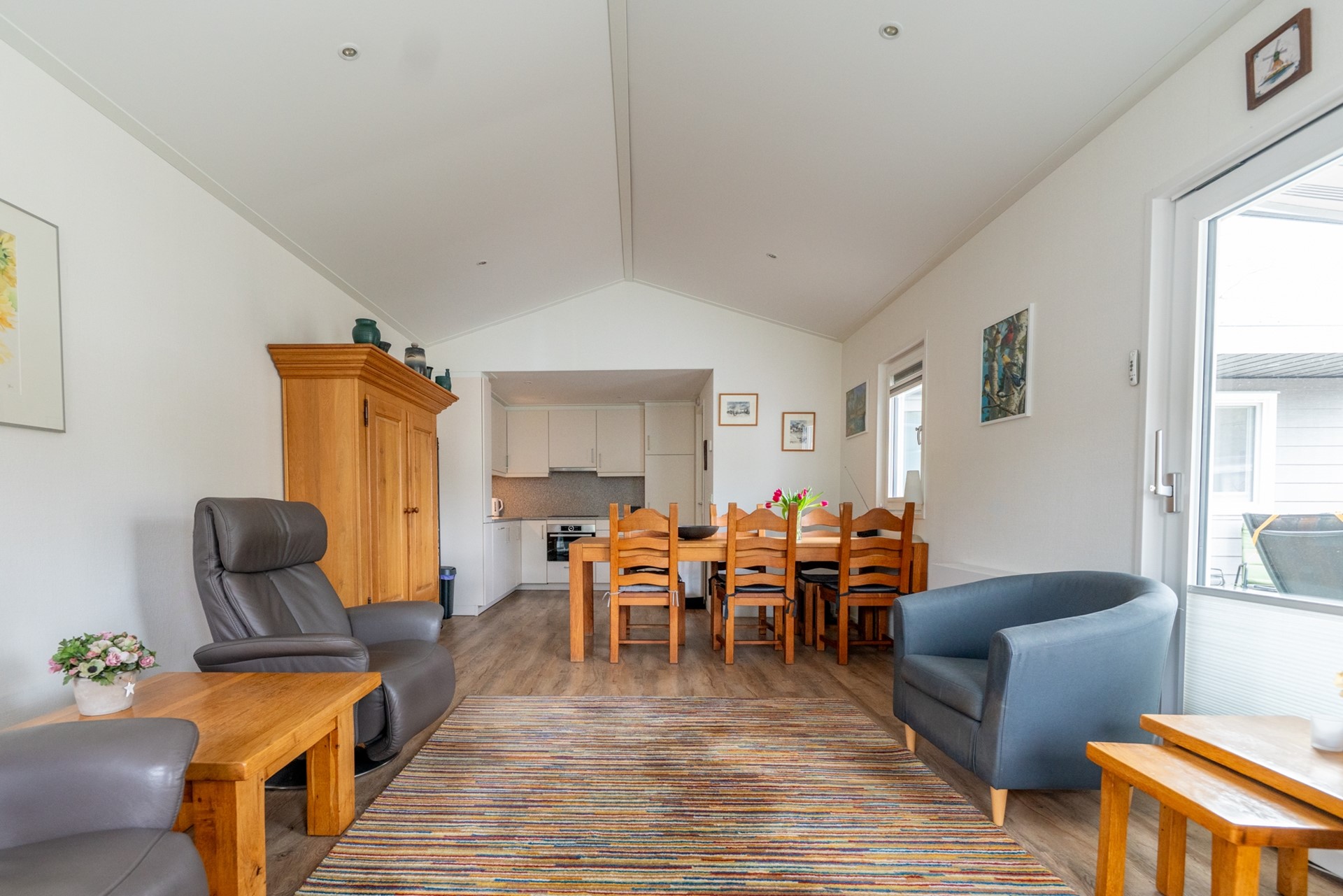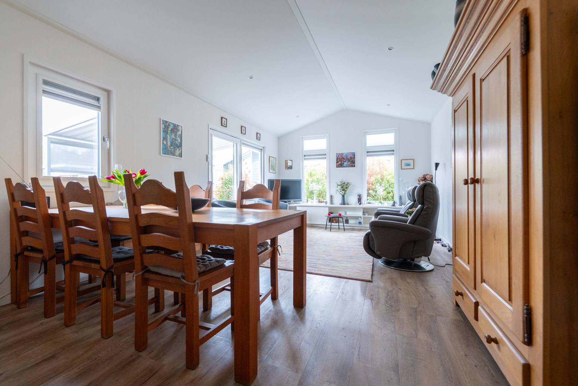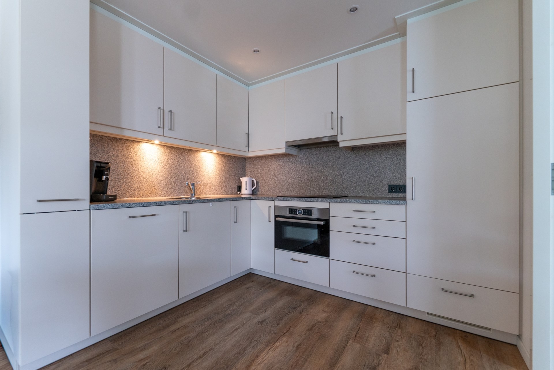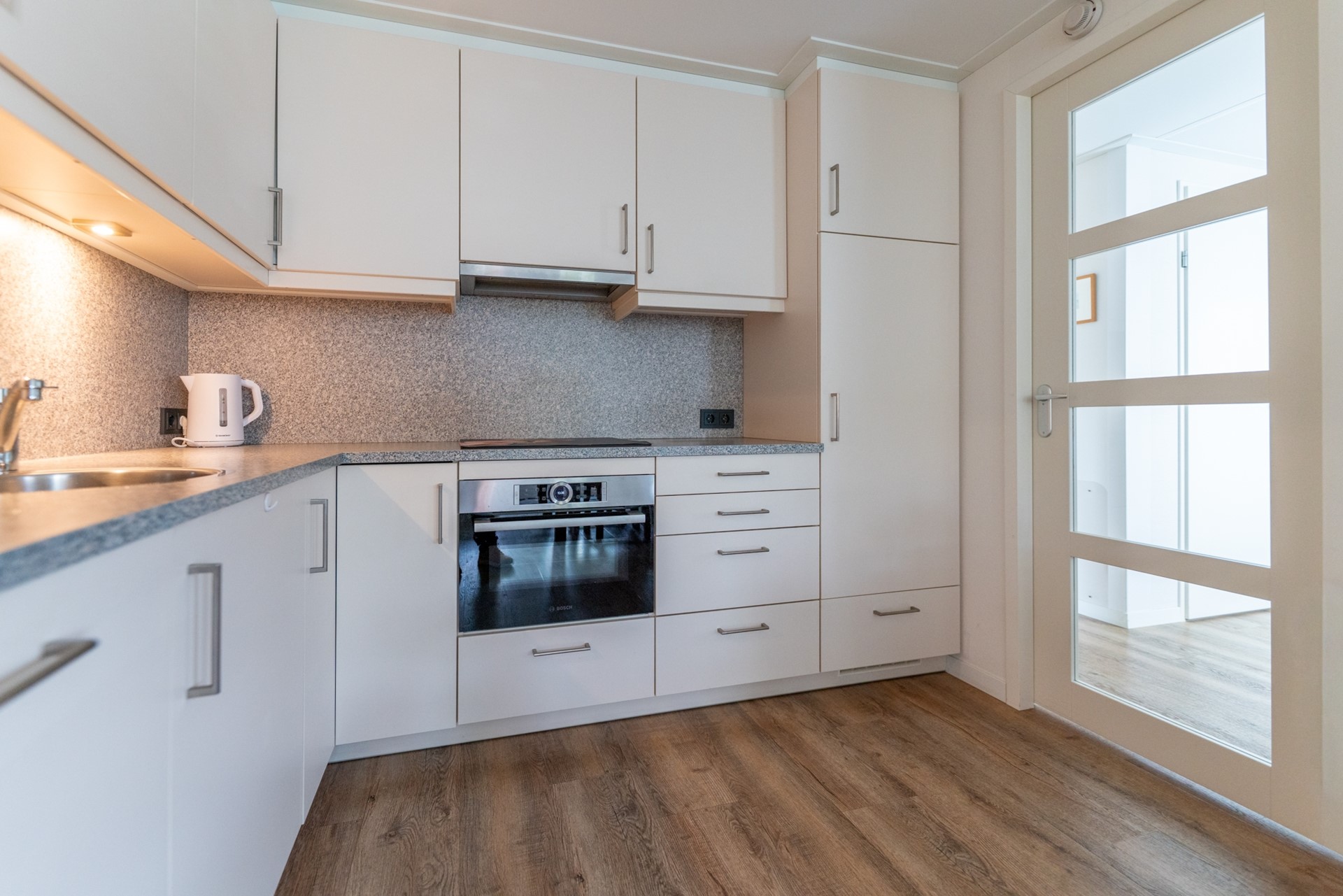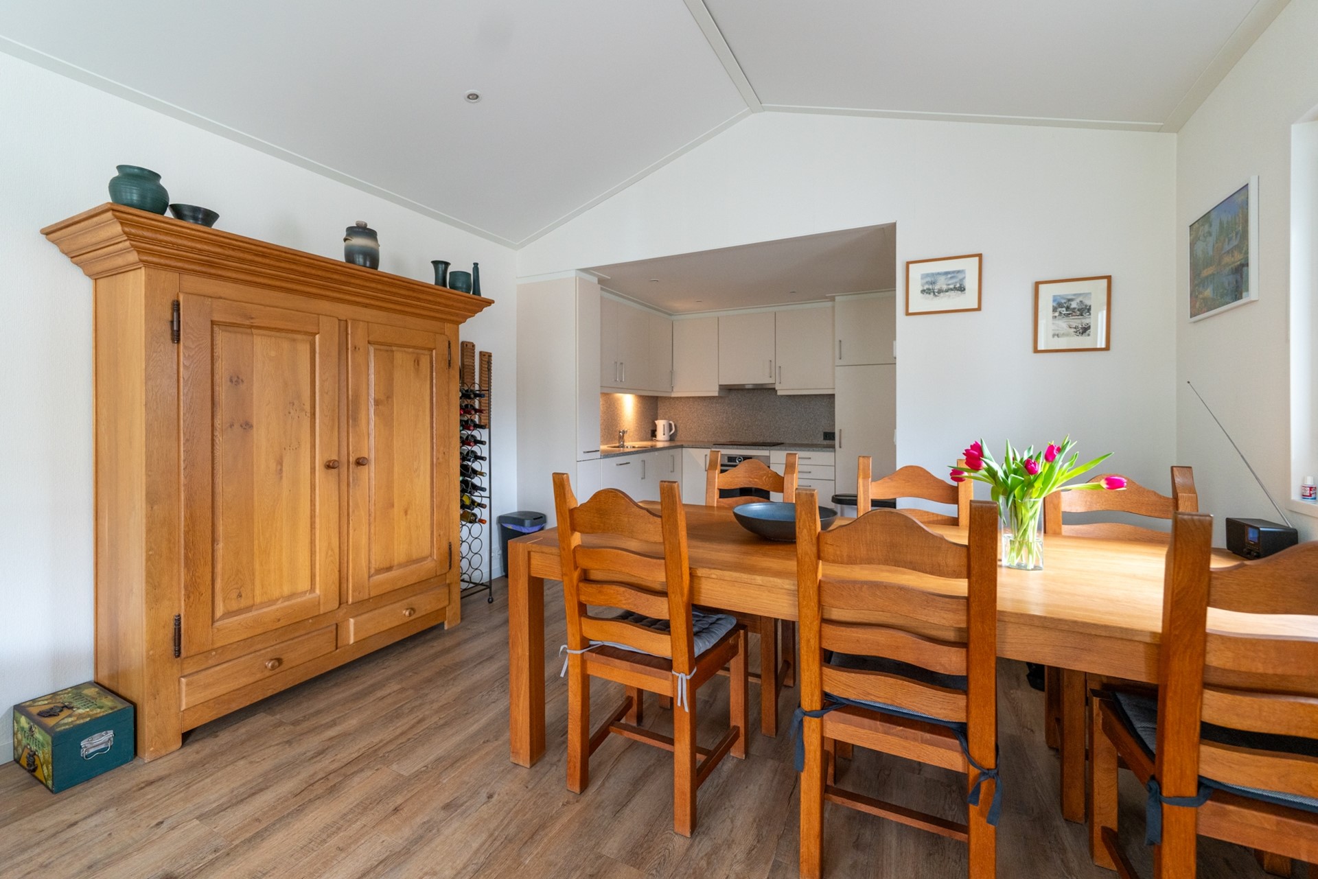 De woonkamer is aangenaam licht dankzij grote raampartijen en staat in open verbinding met de keuken. Dit zorgt voor een ruimtelijk geheel dat ideaal is voor zowel dagelijks gebruik als ontspannen momenten.