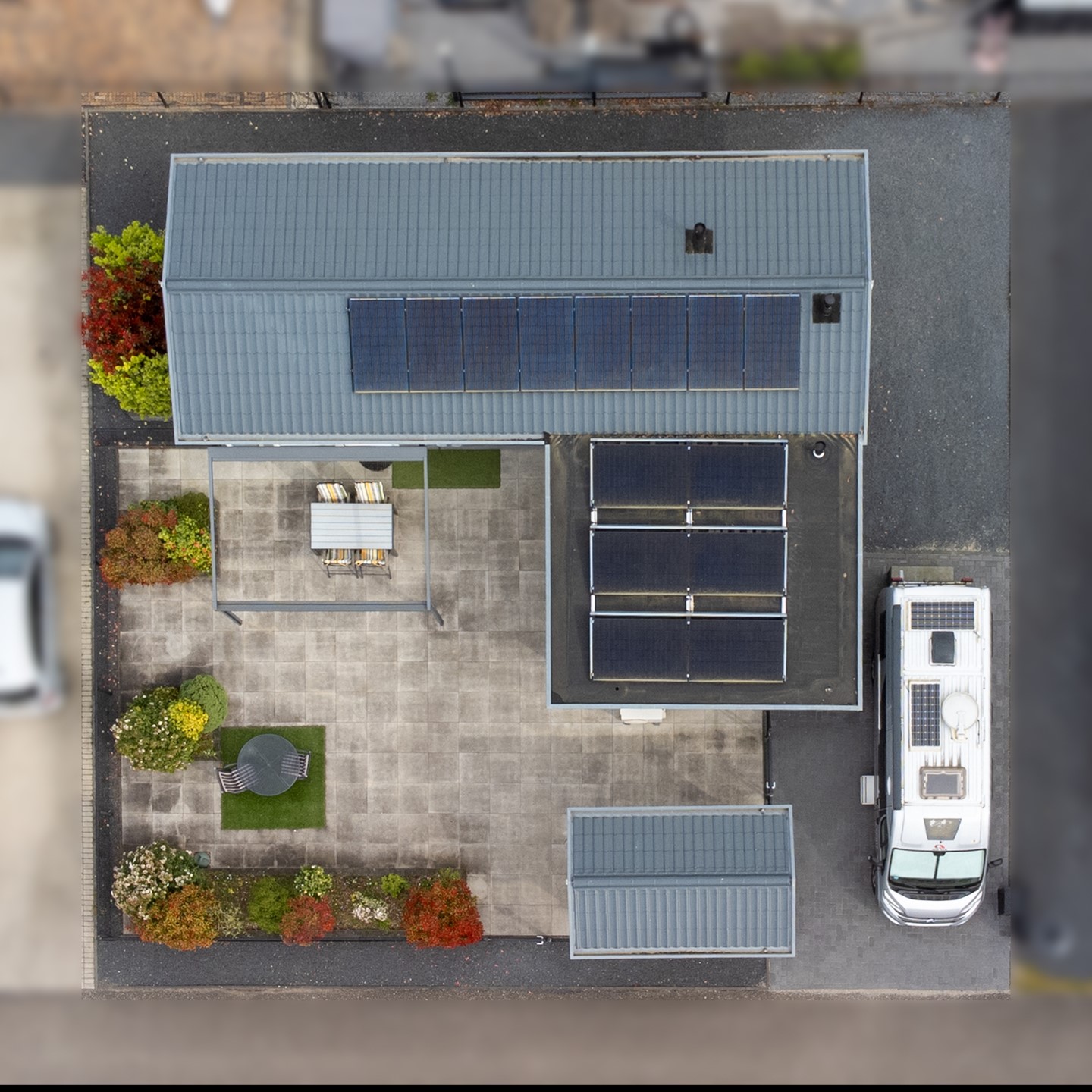 De woning is uitgerust met 14 zonnepanelen, wat bijdraagt aan lagere energiekosten en een duurzamer wooncomfort.