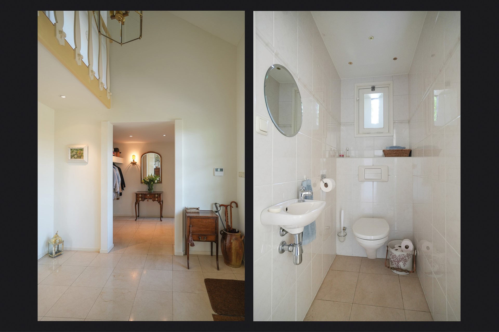 Je betreedt de woning via de ruime entree, een hoge, lichte ruimte . Direct bereikbaar vanuit de entree is de garderobe, een aparte ruimte met hang- en legmogelijkheden. Het separaat toilet bevindt zich eveneens op dit niveau.