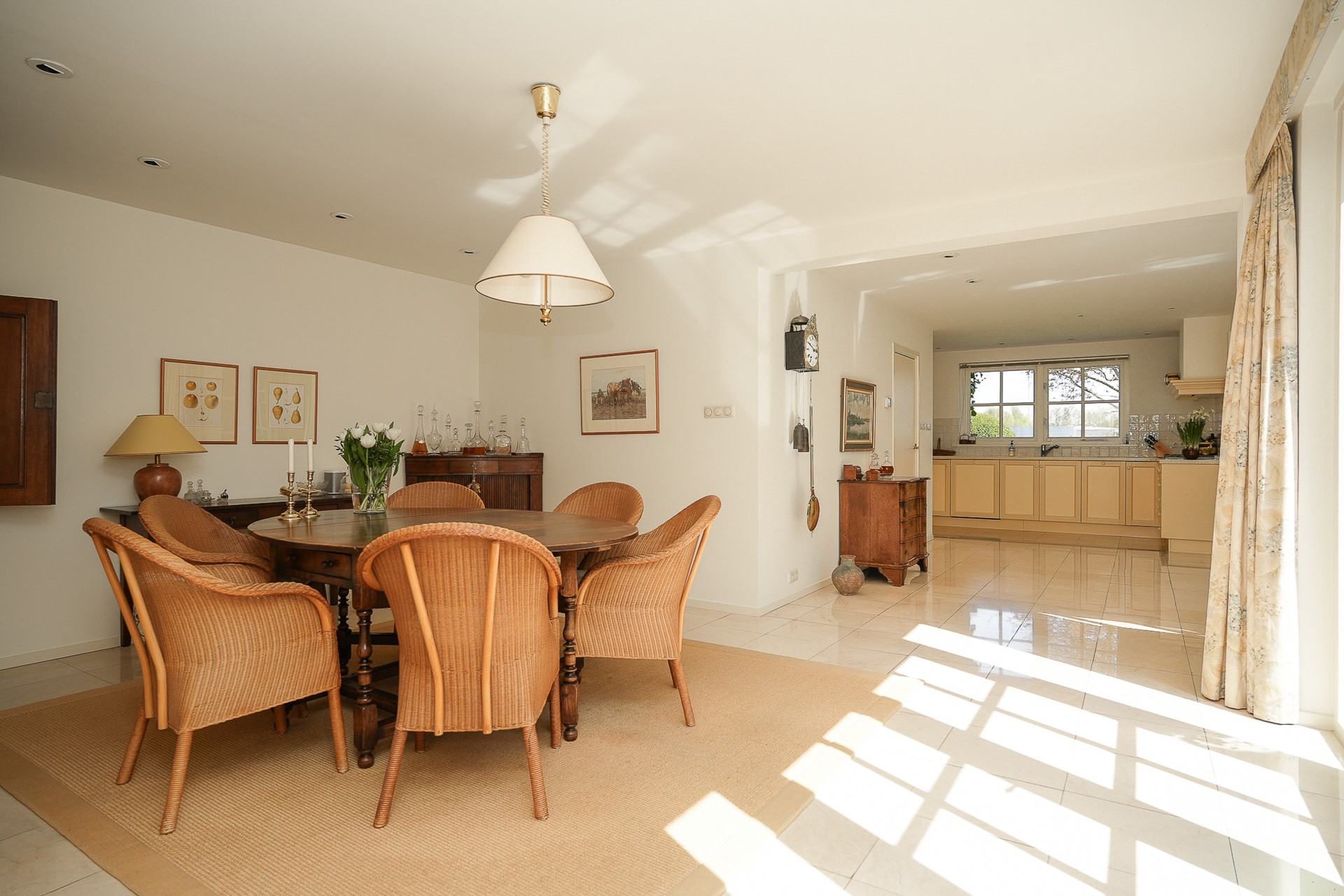 De eethoek heeft vloerverwarming en openslaande deuren naar het terras aan de achterzijde. Royaal genoeg voor een grote eettafel, met een eigen sfeer ten opzichte van de woonkamer.
