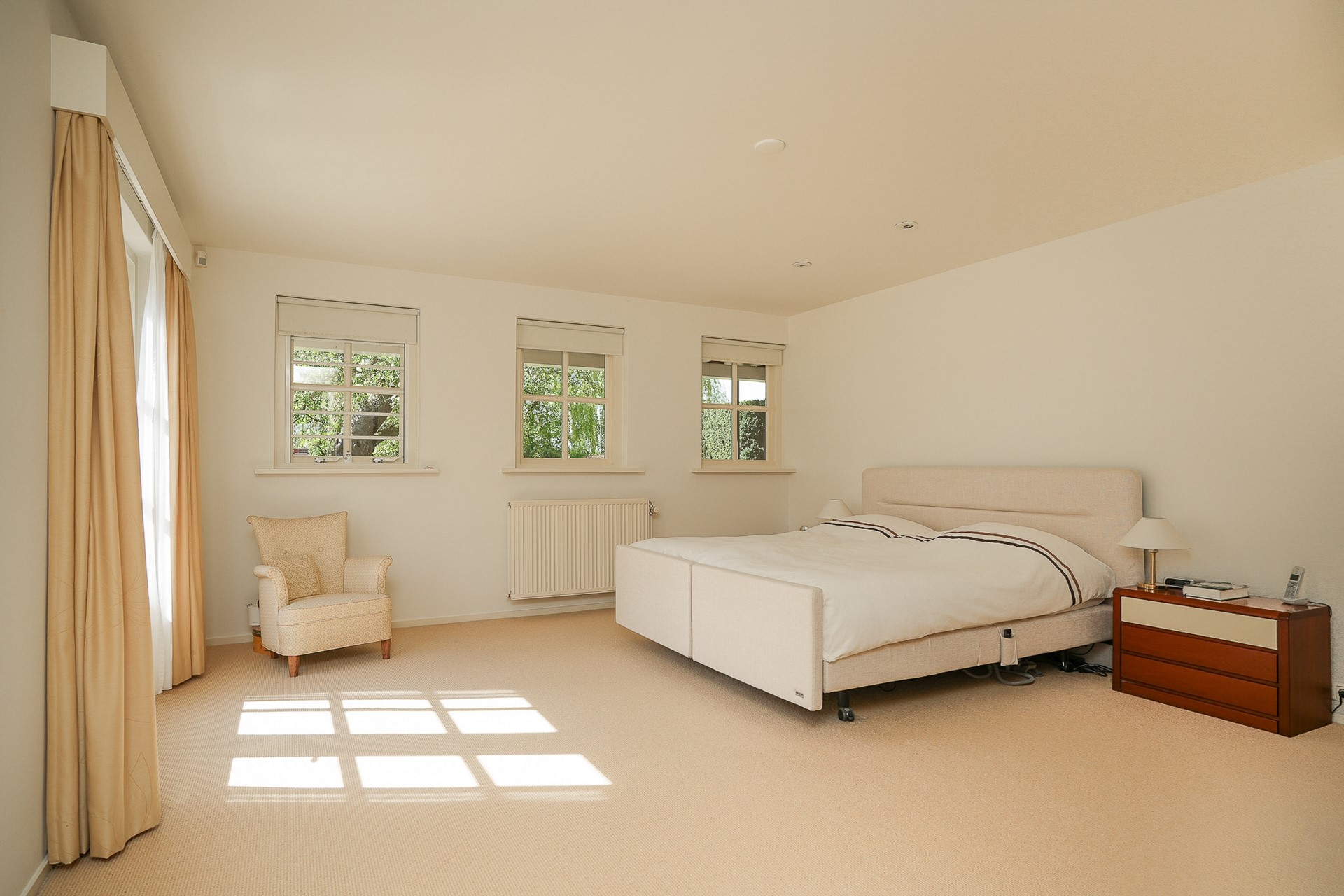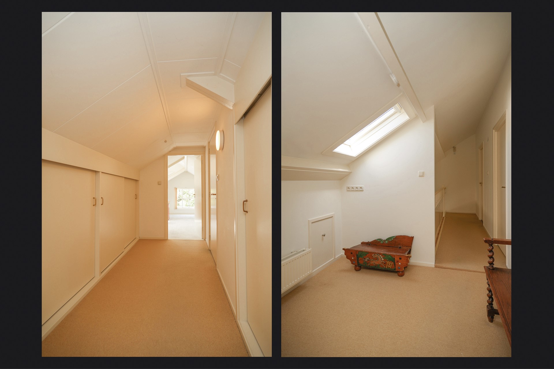 Via de representatieve trap in de entree bereik je de eerste verdieping. Hier zijn drie ruime, lichte slaapkamers bereikbaar. Op de overloop vind je aan beide kanten schuifwanden met veel bergruimte.
