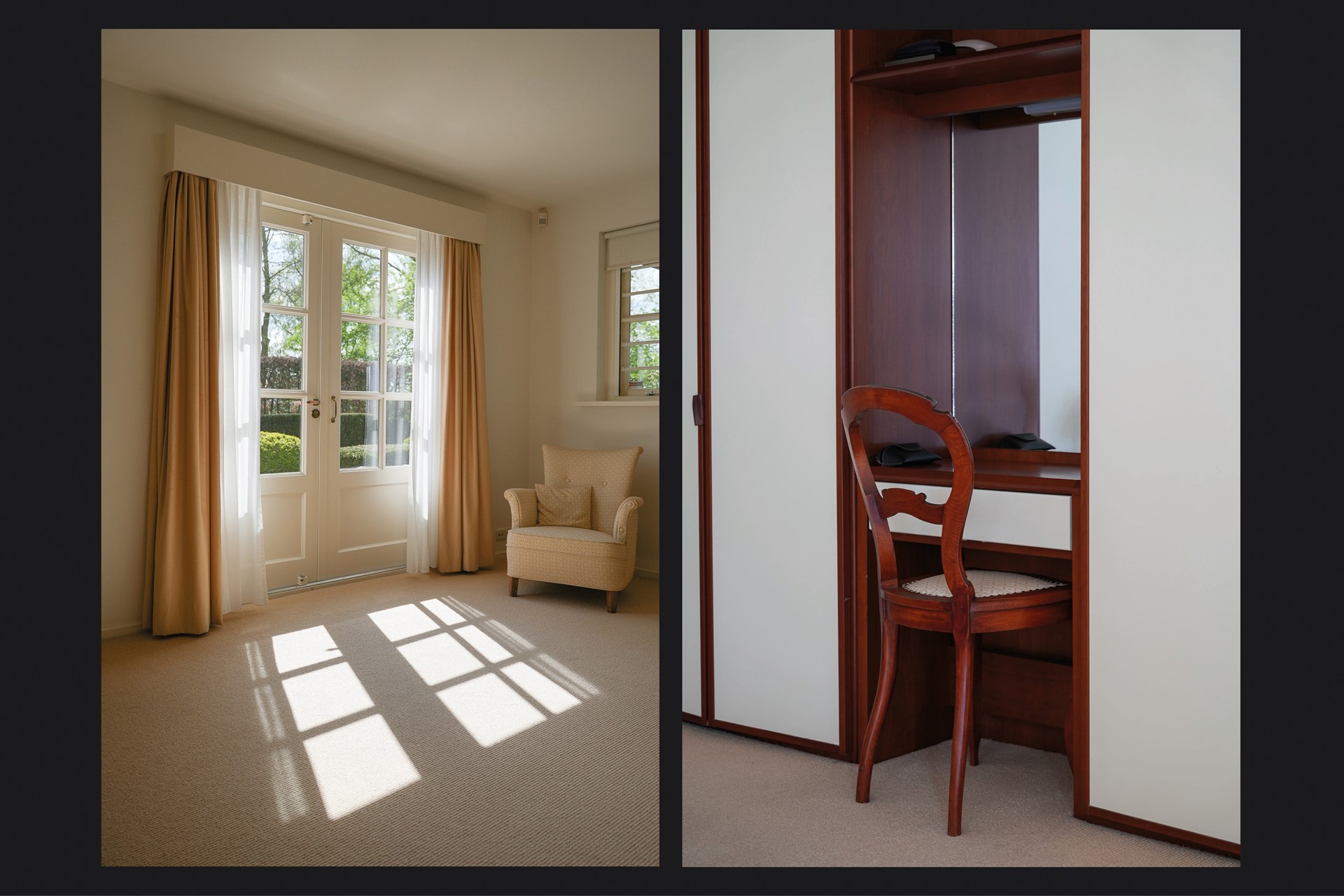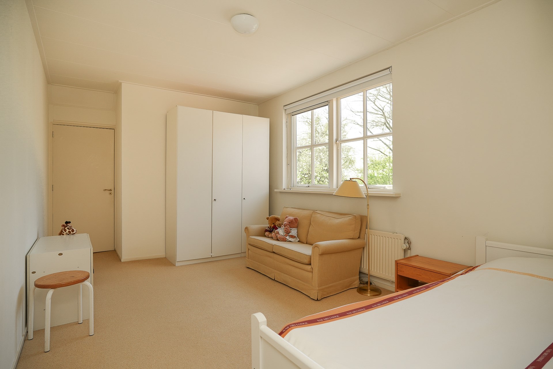 De eerste slaapkamer bevindt zich aan de voorzijde en heeft een prachtig uitzicht over de Wiel. Een perfecte kinder- of tienerkamer. Maar ook in de huidige vorm, als werkkamer een fijne ruimte.